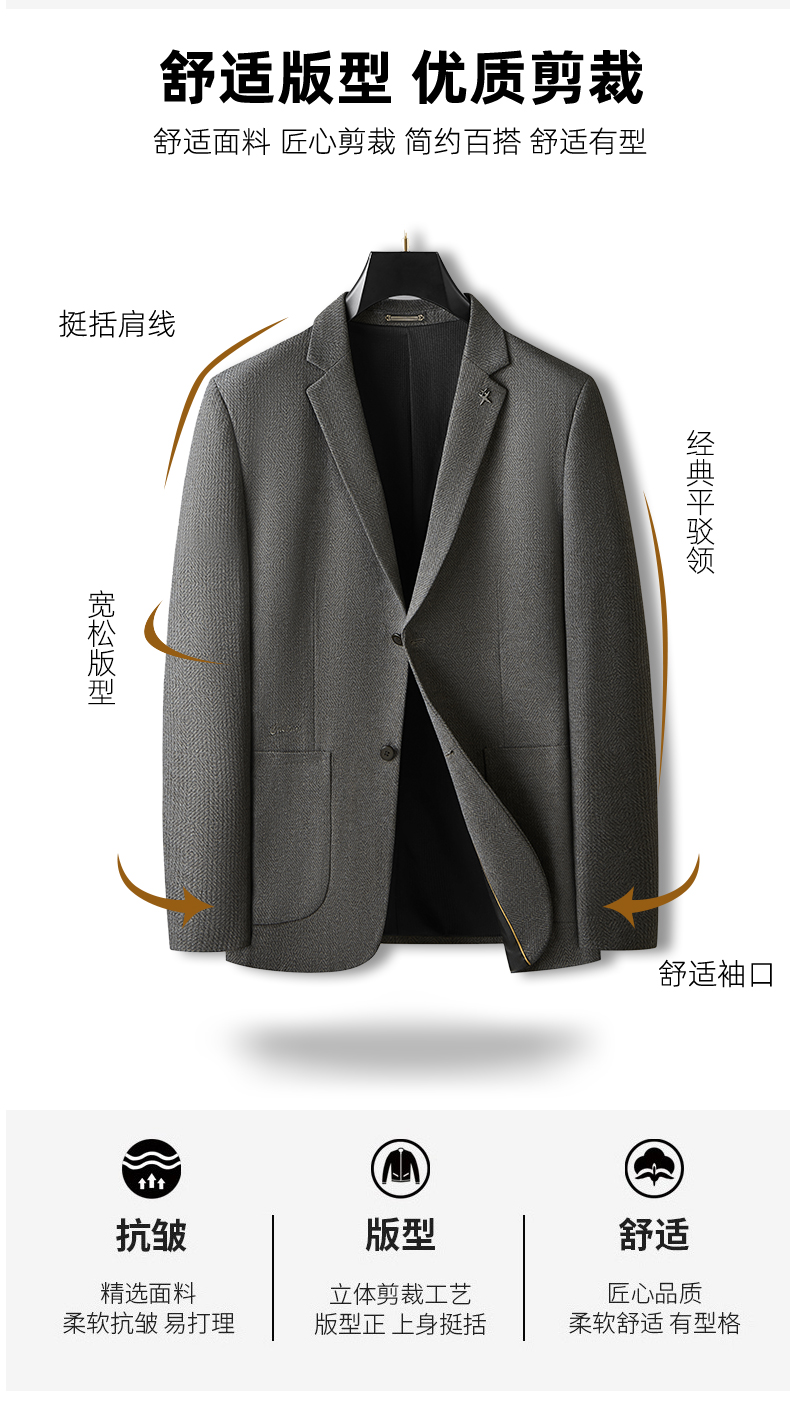 【新款DDA】大依优型品质西服外套商务夹克男宽松加肥加大码上衣胖子正装休闲 商品图0