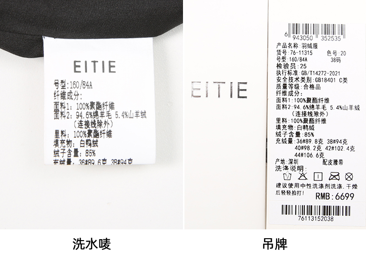 EITIE爱特爱冬季新款时尚拼接保暖通勤显瘦羽绒服外套7611315