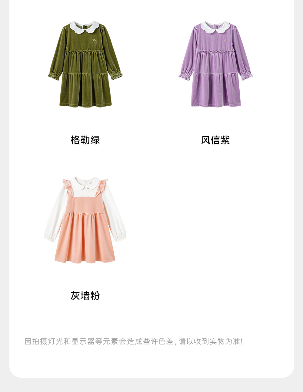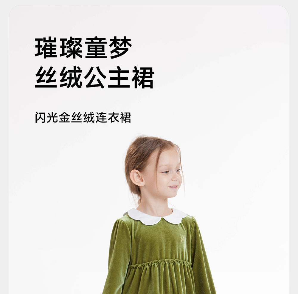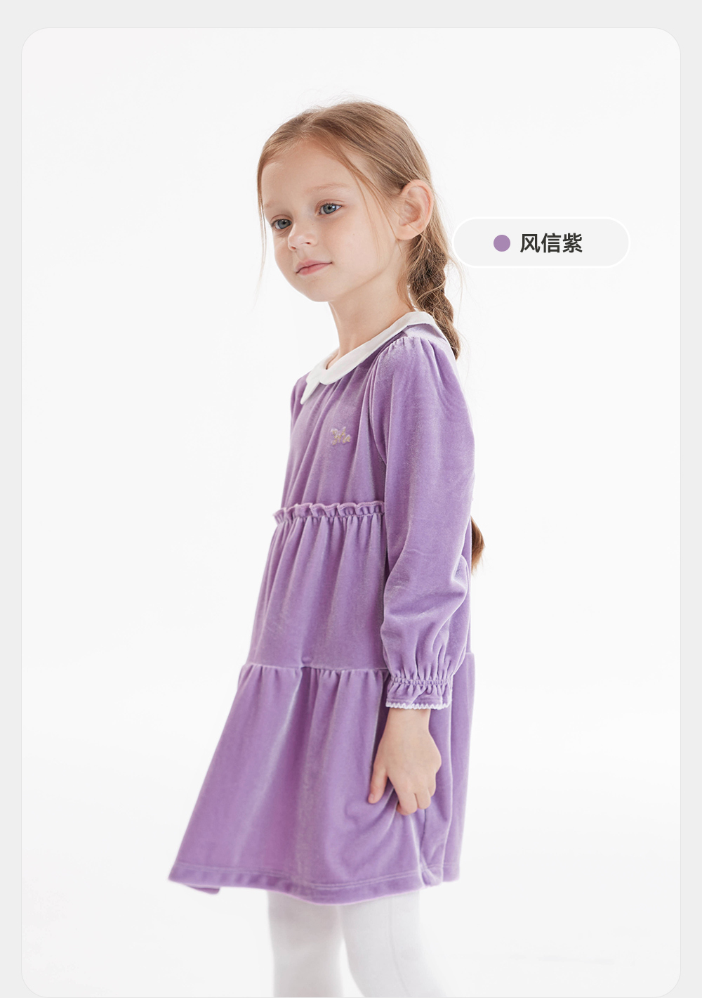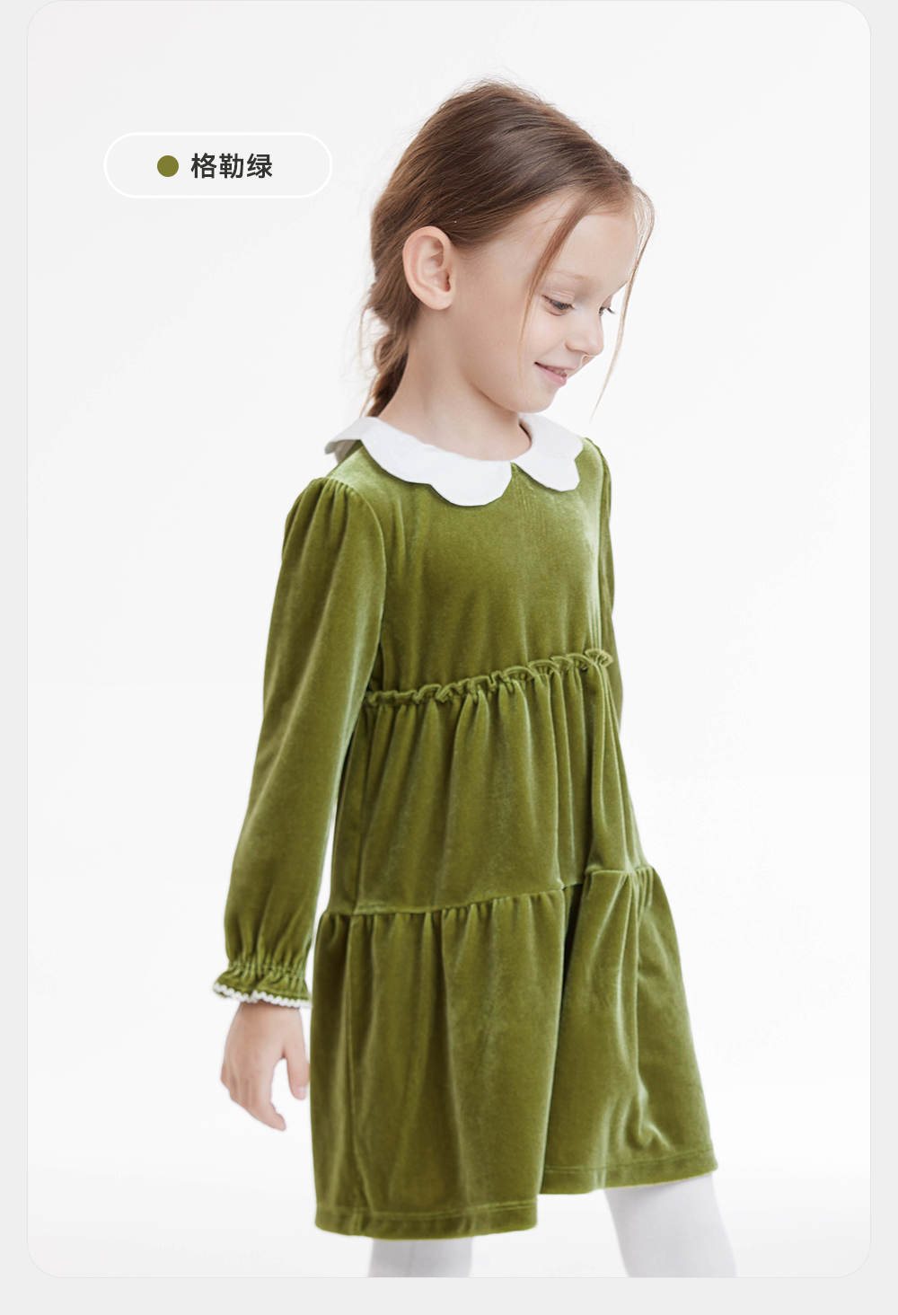 【新会员5折内购】英氏女童连衣裙秋冬装女孩裙子中大童金丝绒连衣裙长袖裙子