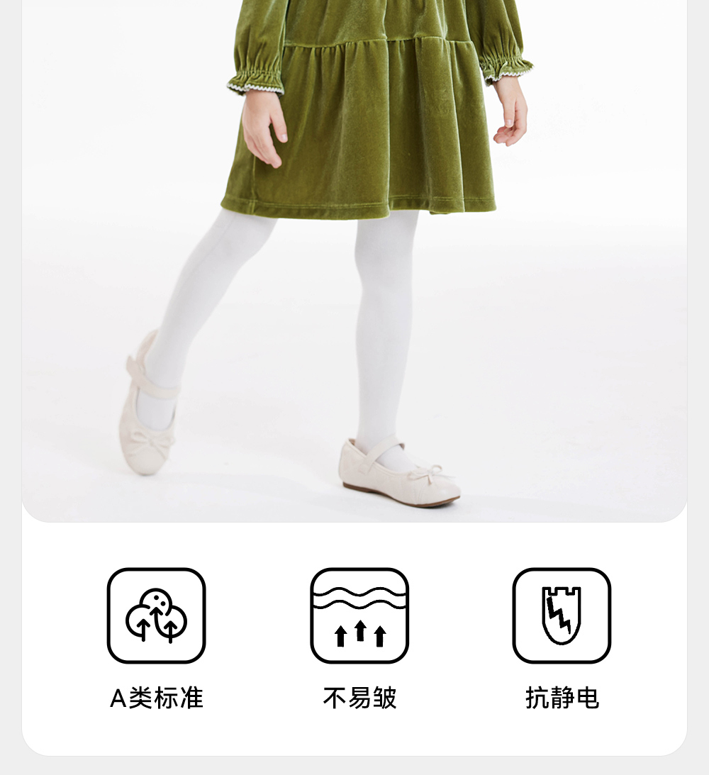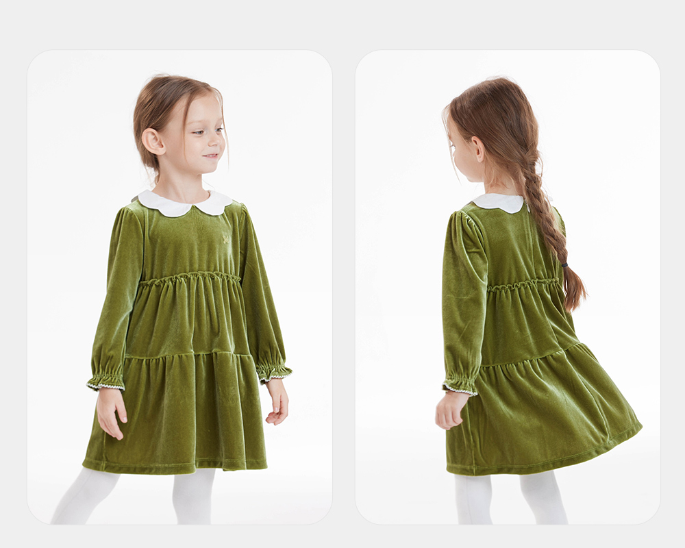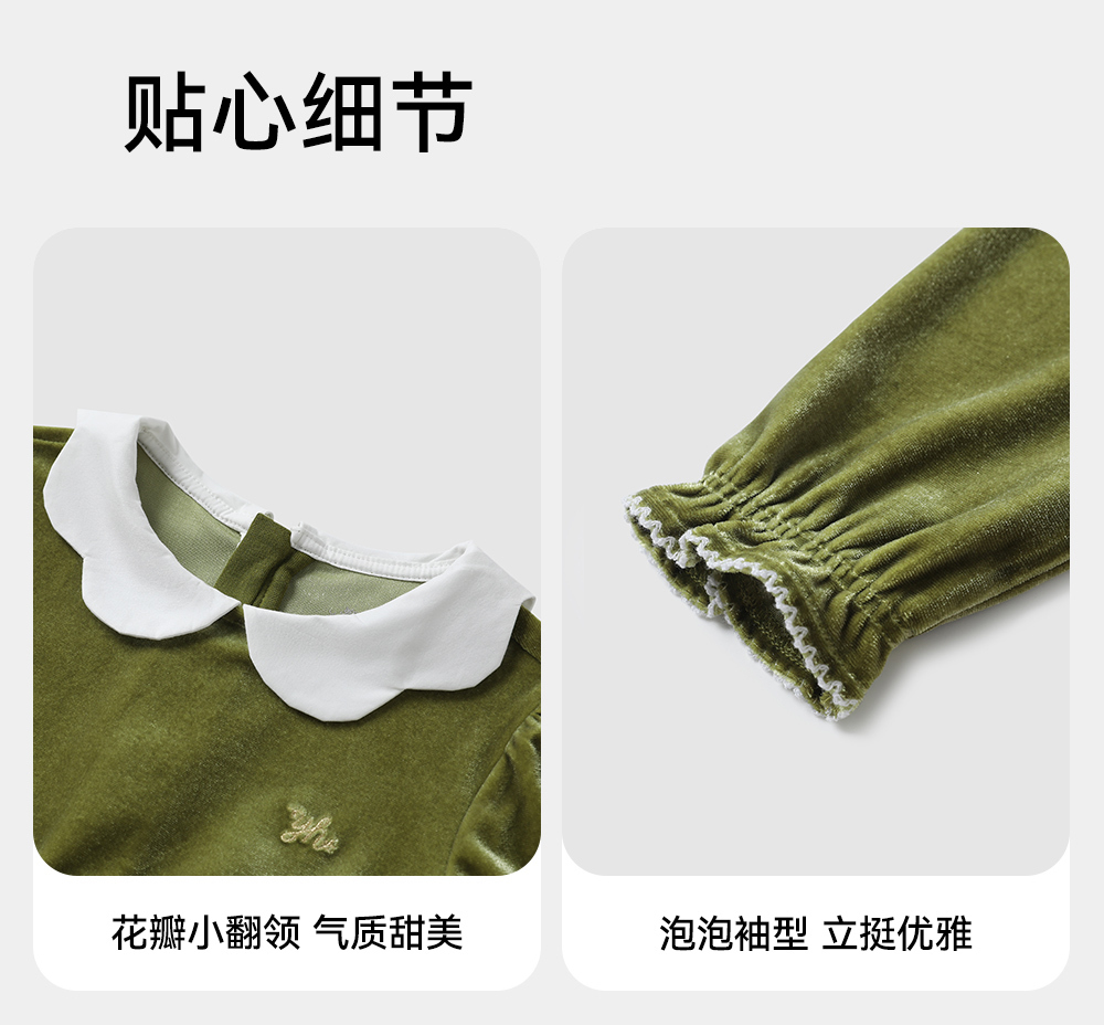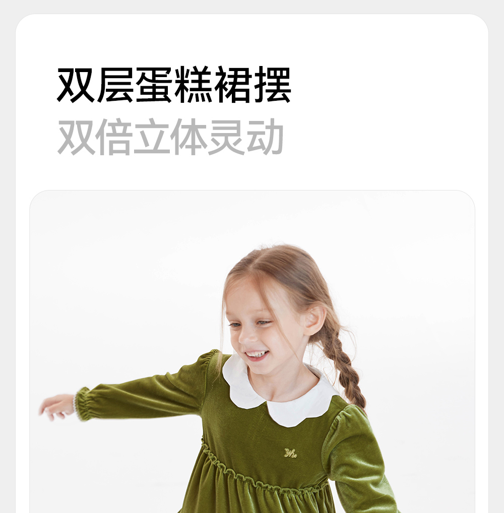 【新会员5折内购】英氏女童连衣裙秋冬装女孩裙子中大童金丝绒连衣裙长袖裙子