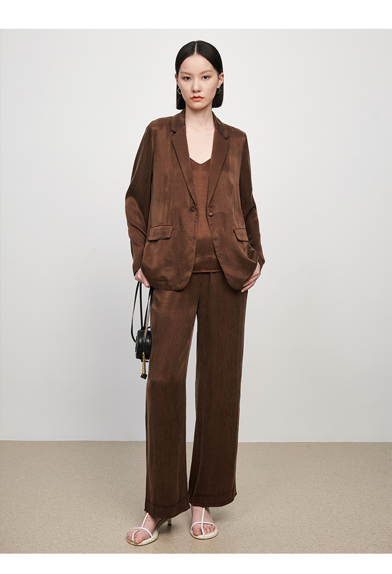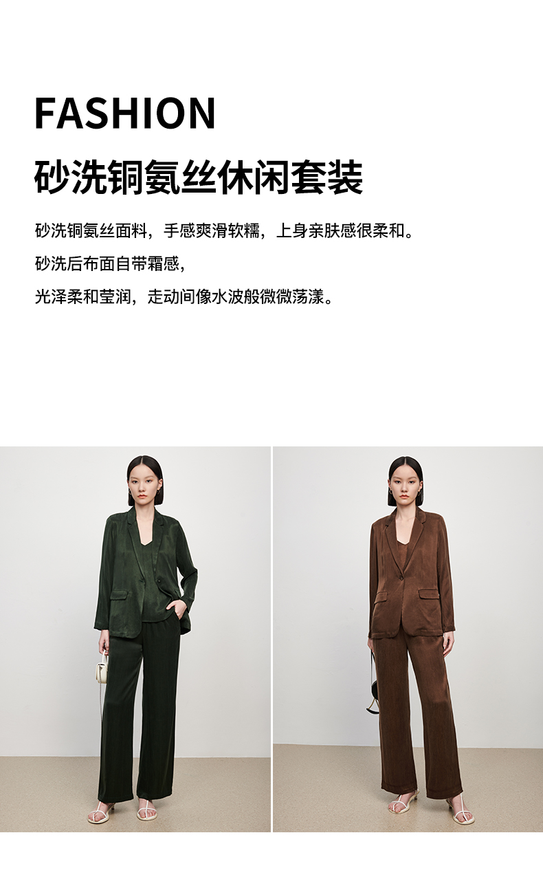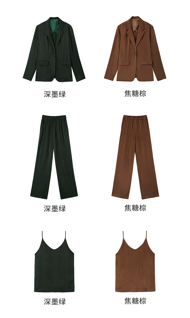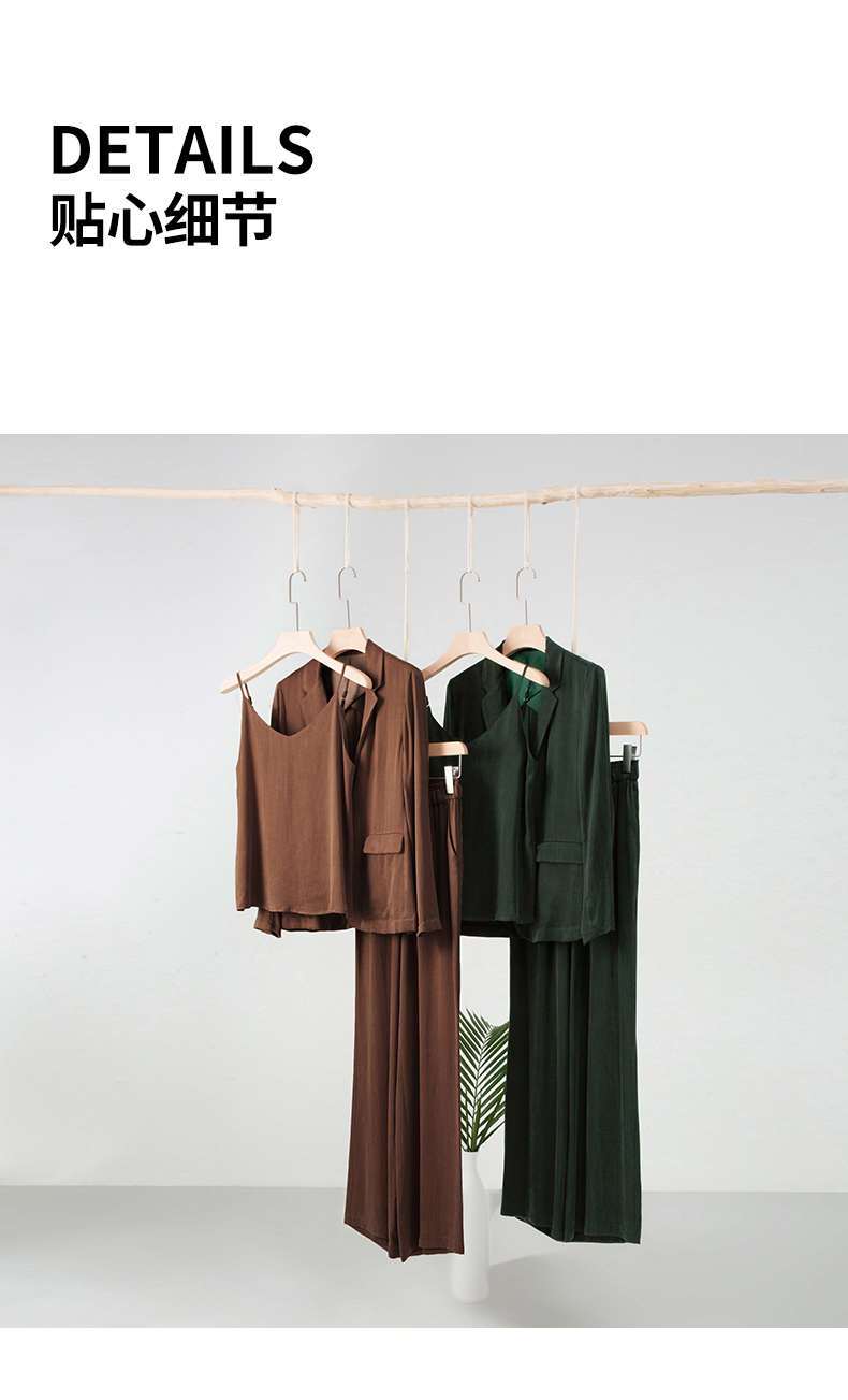 新款铜氨丝休闲西装外套女薄款套装垂感吊带裤子高端三件套