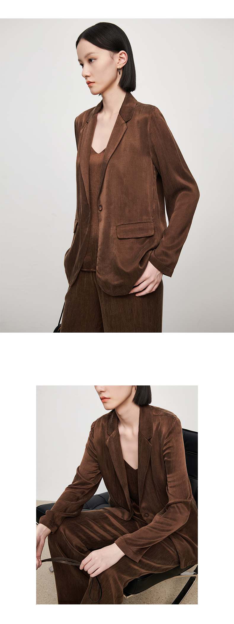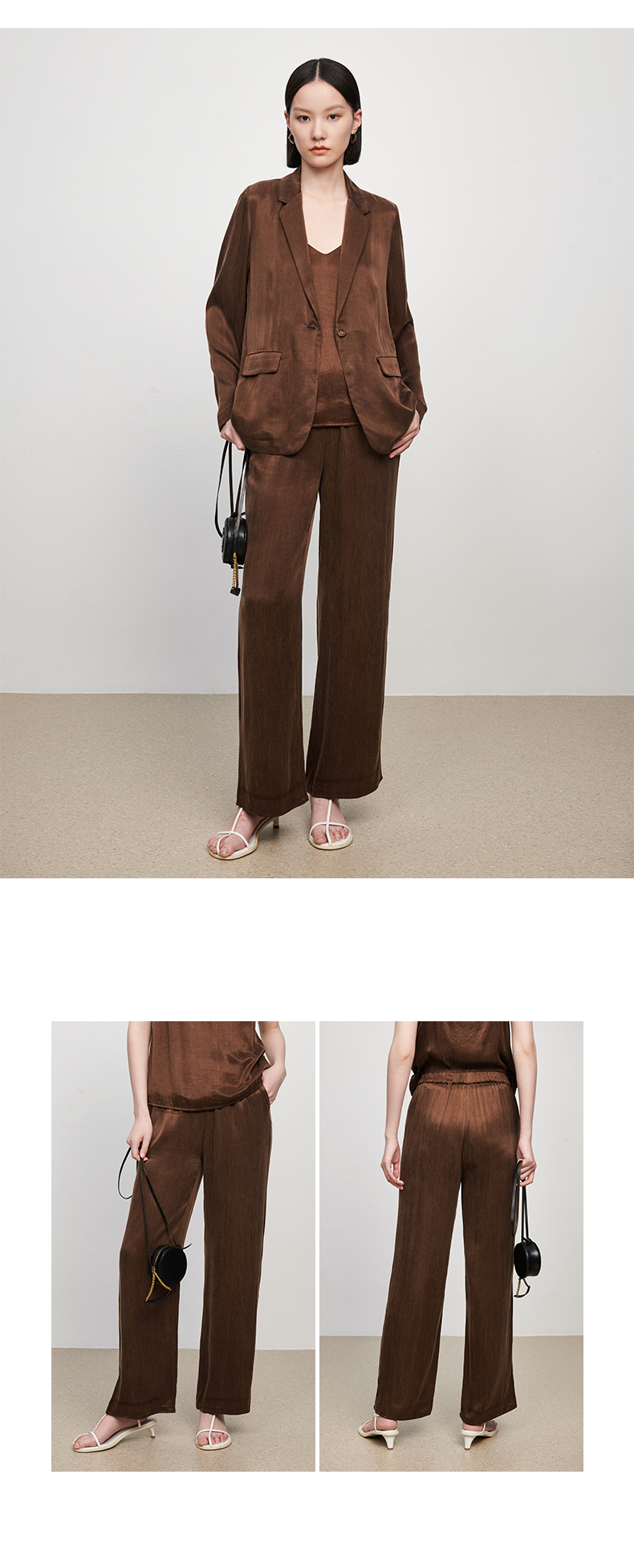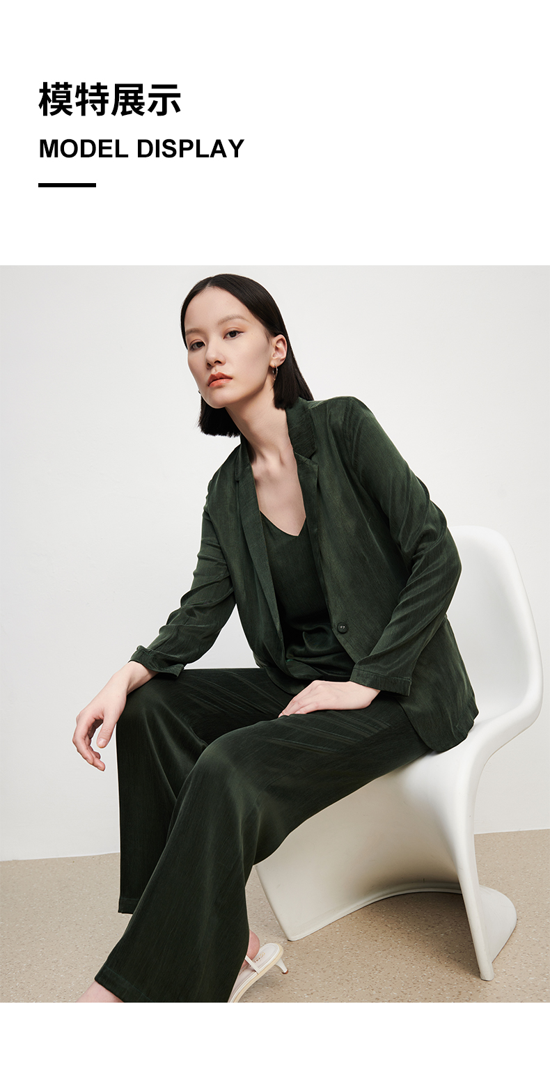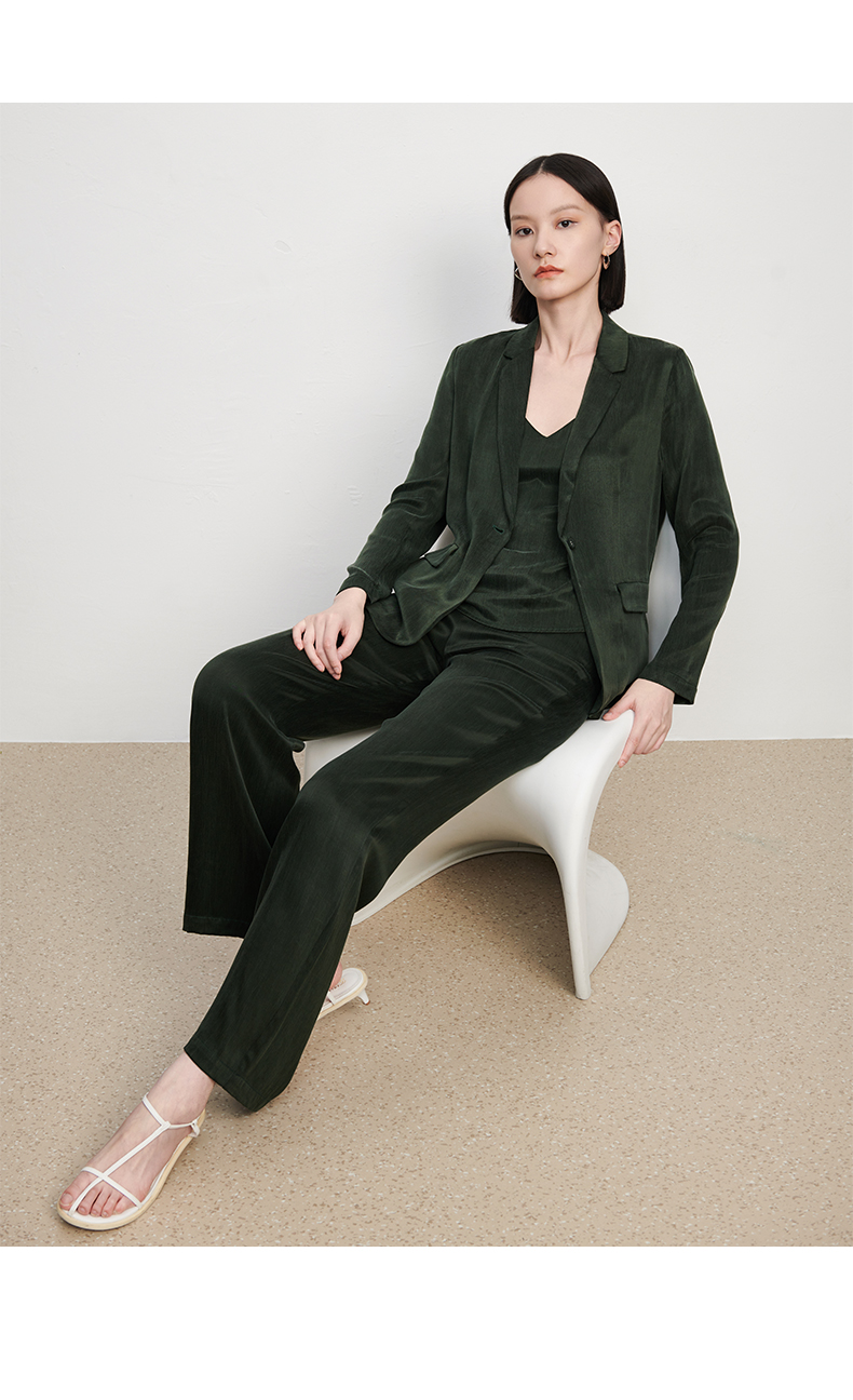 新款铜氨丝休闲西装外套女薄款套装垂感吊带裤子高端三件套