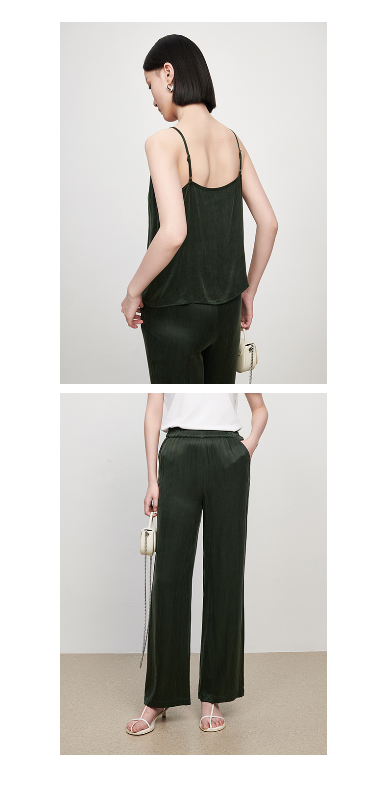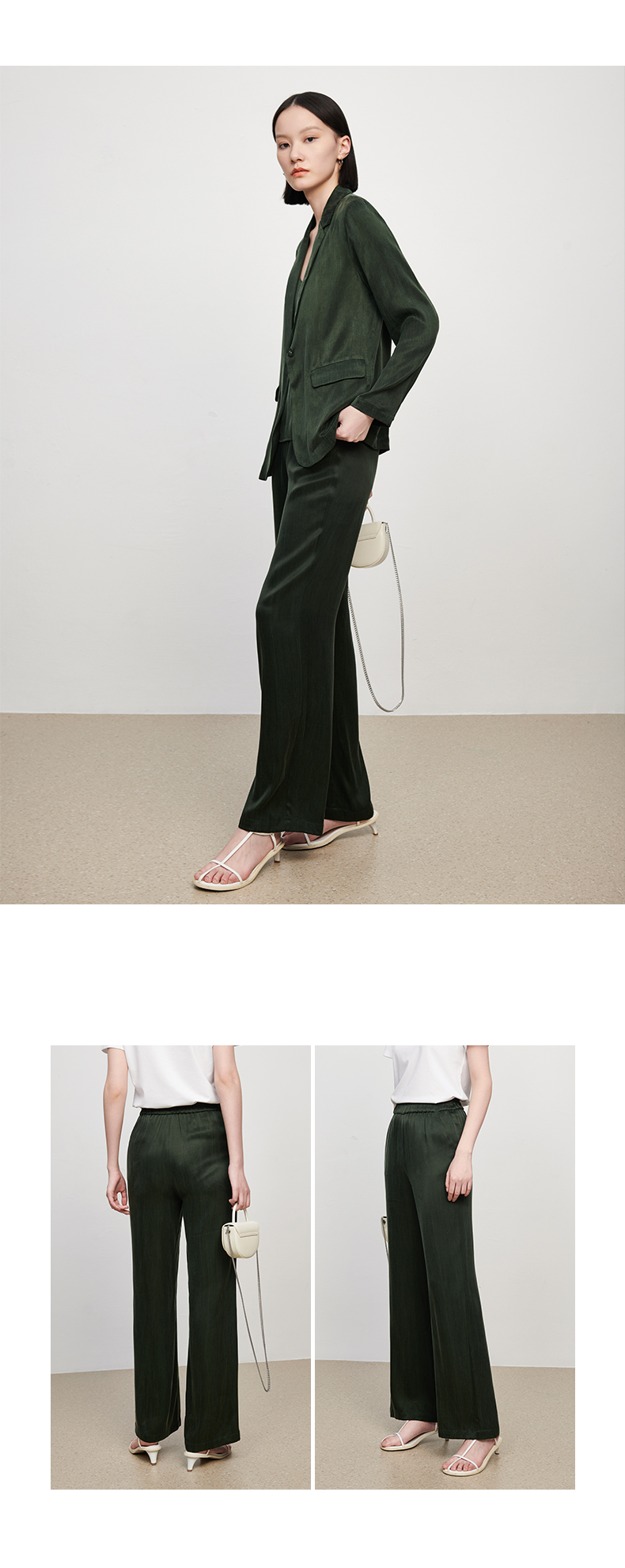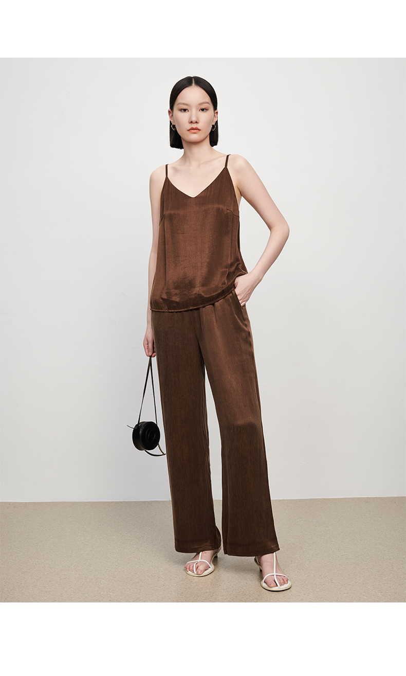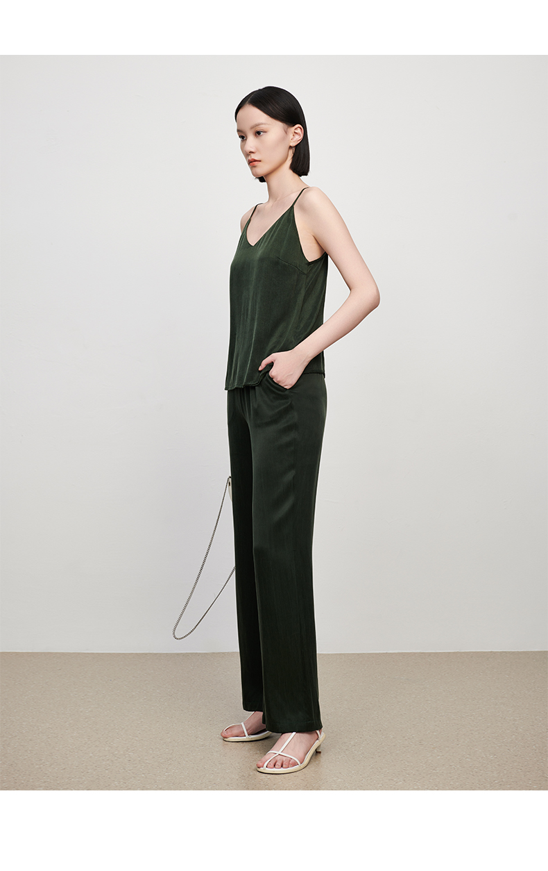 新款铜氨丝休闲西装外套女薄款套装垂感吊带裤子高端三件套