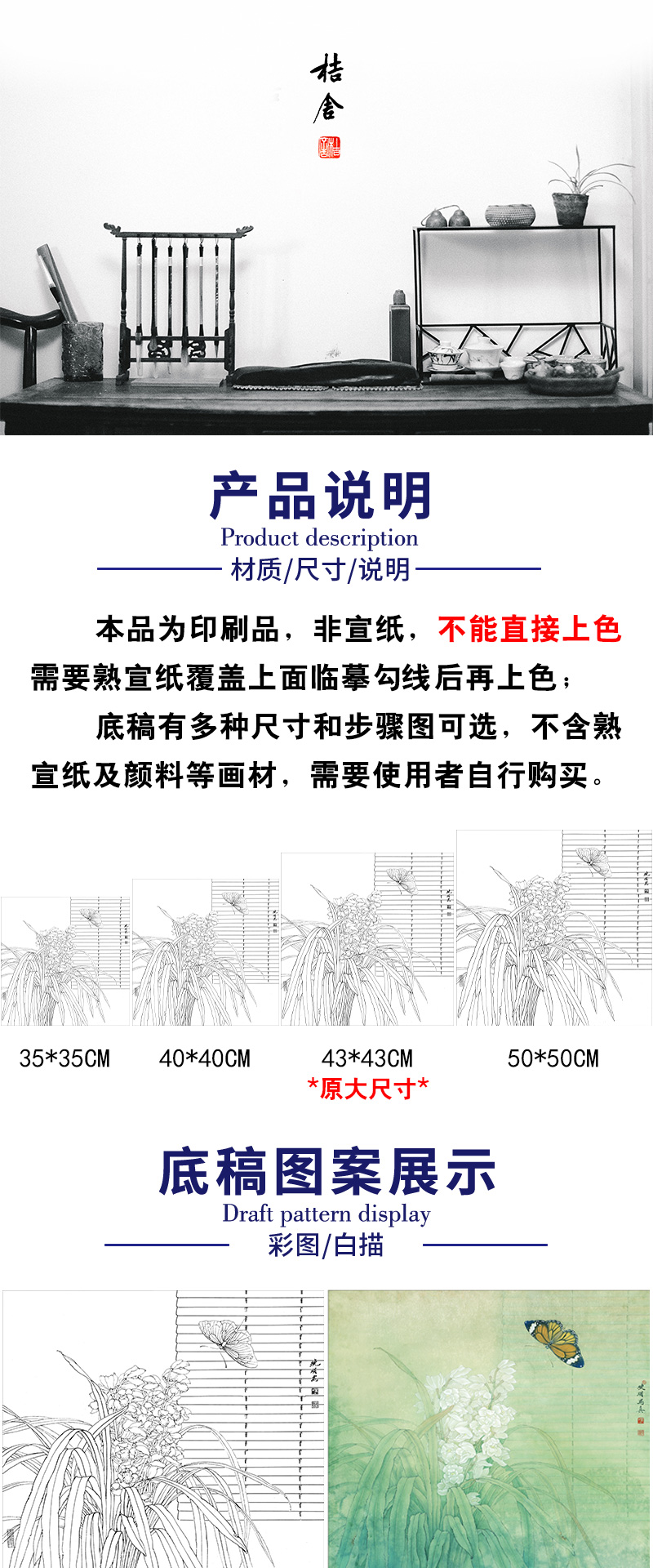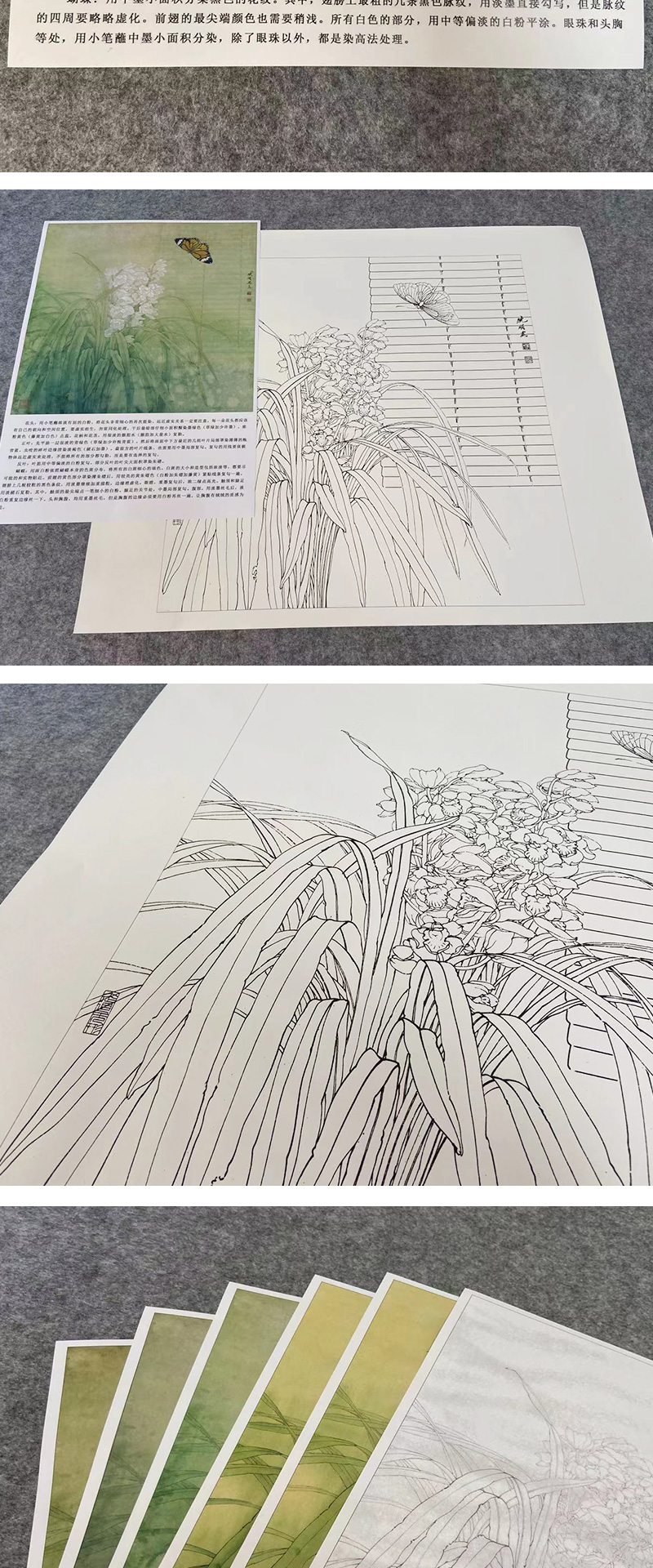 【有步骤、大彩图】李晓明工笔画白描底稿小品《兰花虎斑蝶》KG12