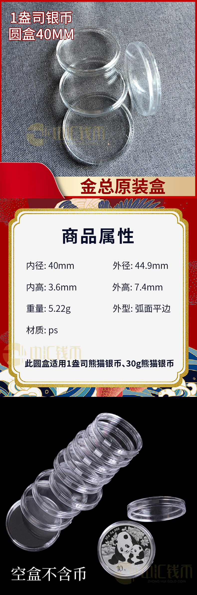 纪念币收藏空壳 熊猫银币保护壳 金总原装亚克力高清塑壳