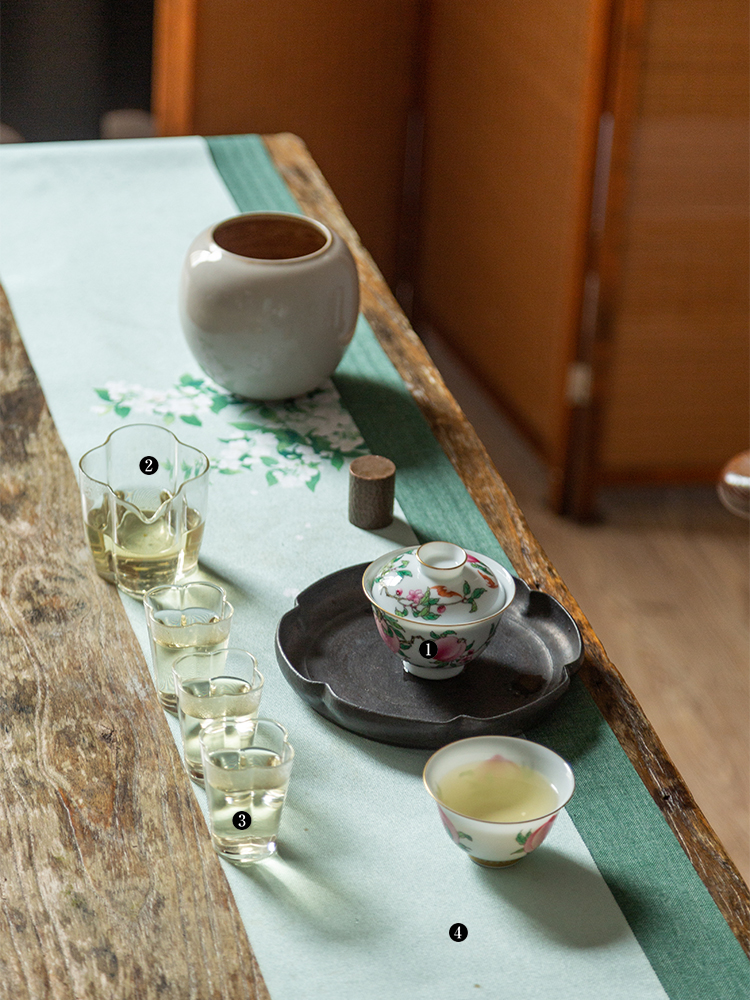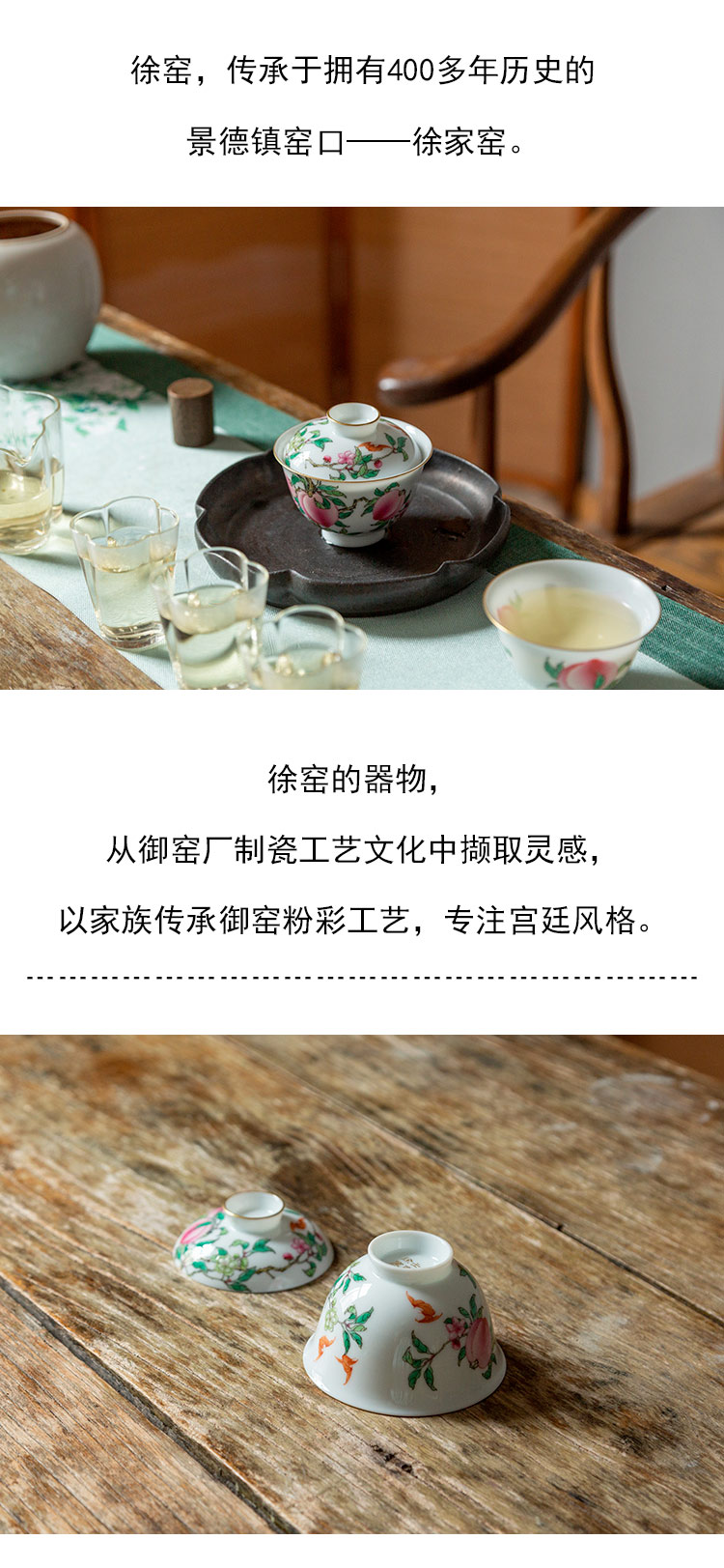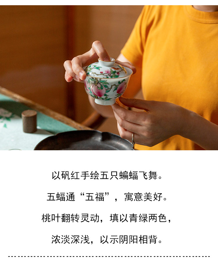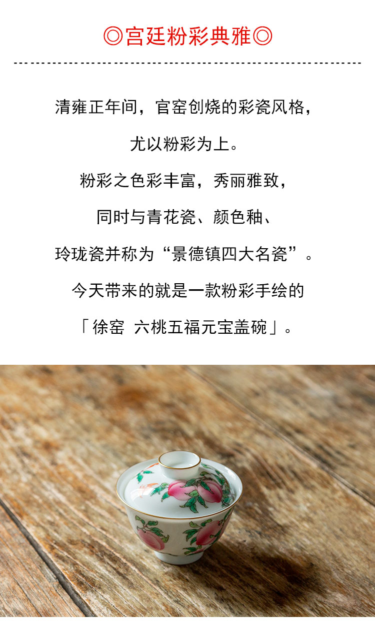 茶香记 徐窑 六桃五福元宝盖碗 宫廷粉彩 寓意美好 称手实用