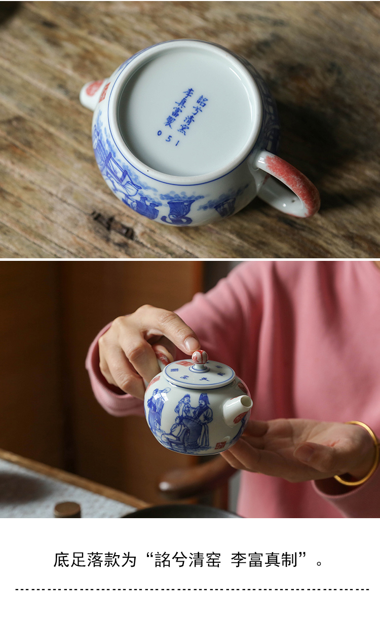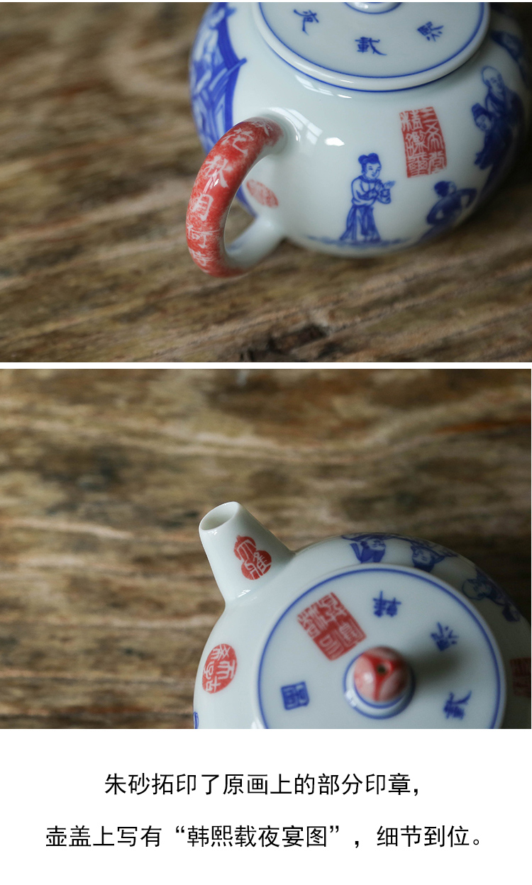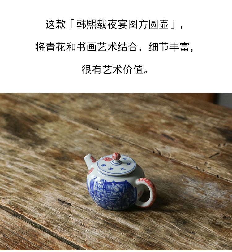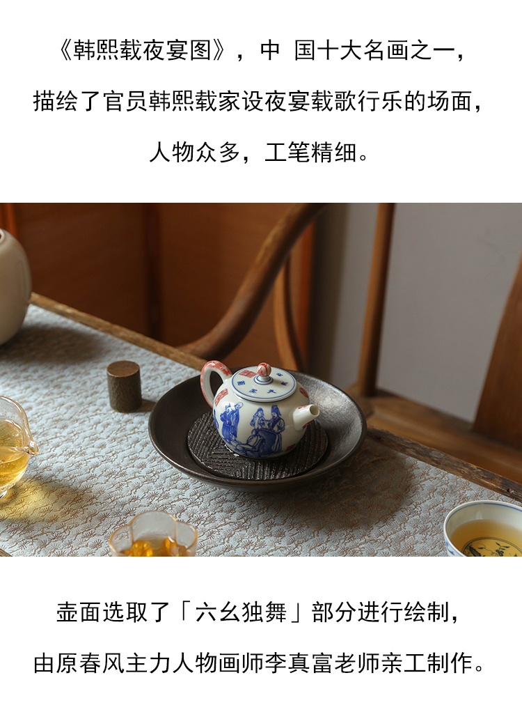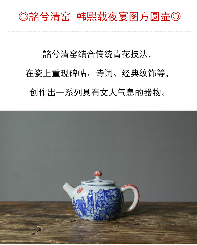 茶香记 詺兮清窑韩熙载夜宴图方圆壶160ml李真富绘制青花手绘茶壶