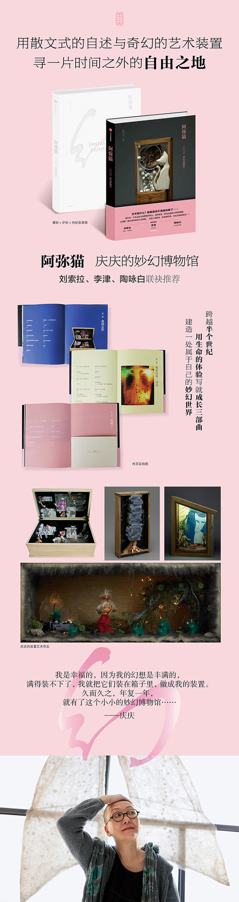 本书是女性艺术家陈庆庆的散文集和装置作品集,分成“我的它们”“欢乐只有一点点”“花谢了”三部曲,既是一位艺术家的创作感悟,又更多是一个50年代生人的成长体验。散文式的自述与奇幻的装置艺术结合在一起,形成的冲击力让每一个读者都能有所触动。