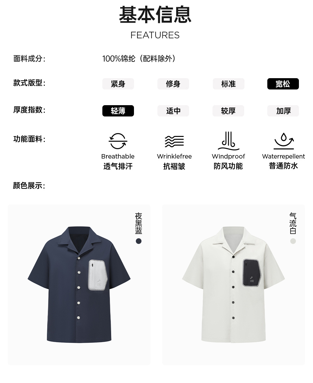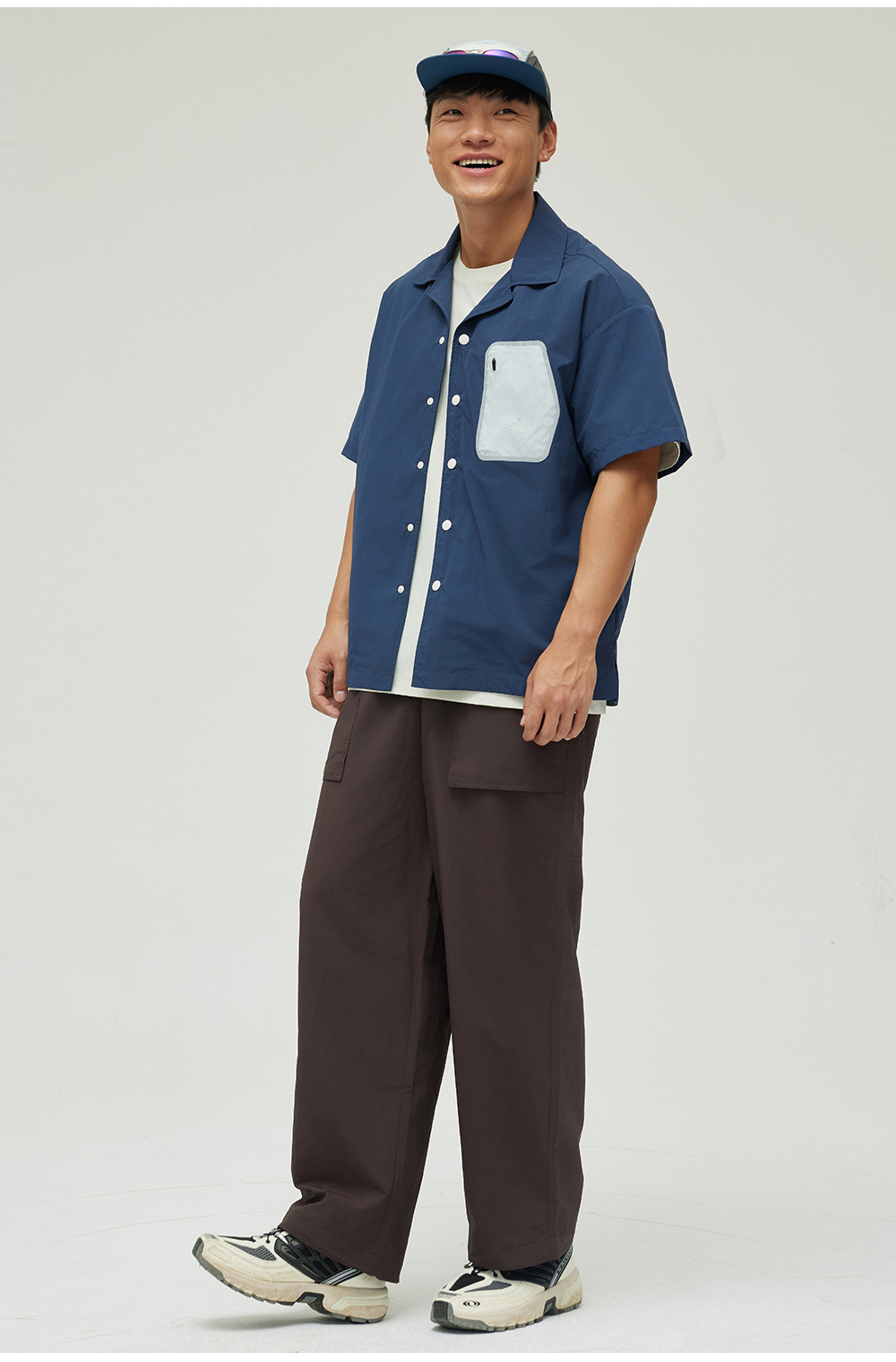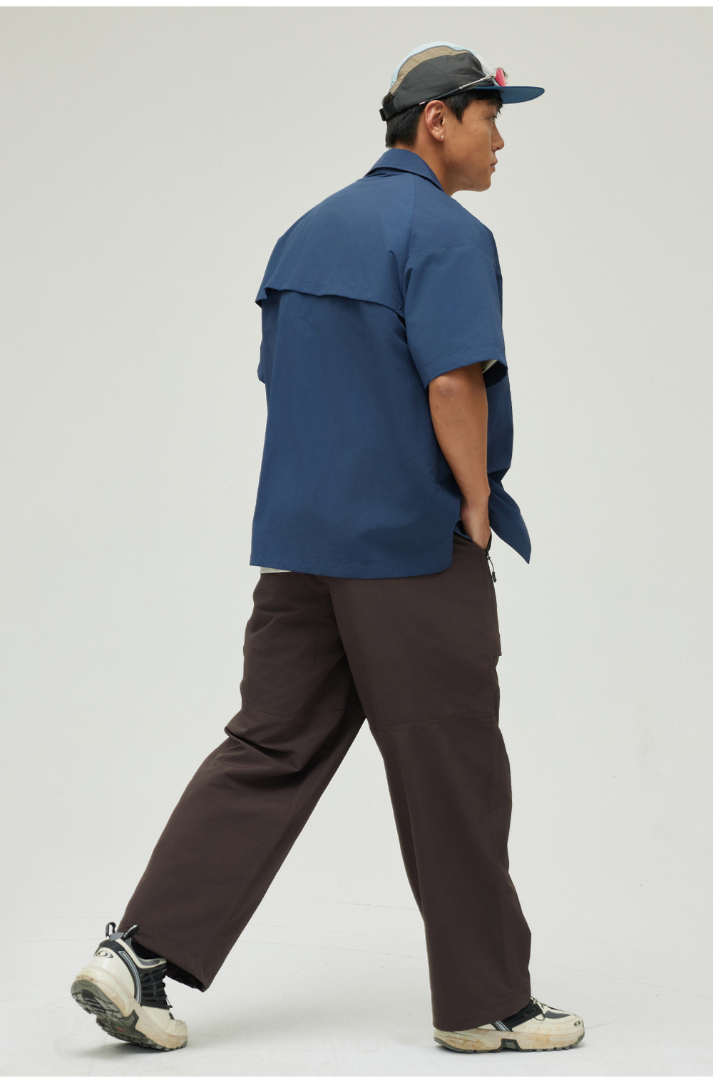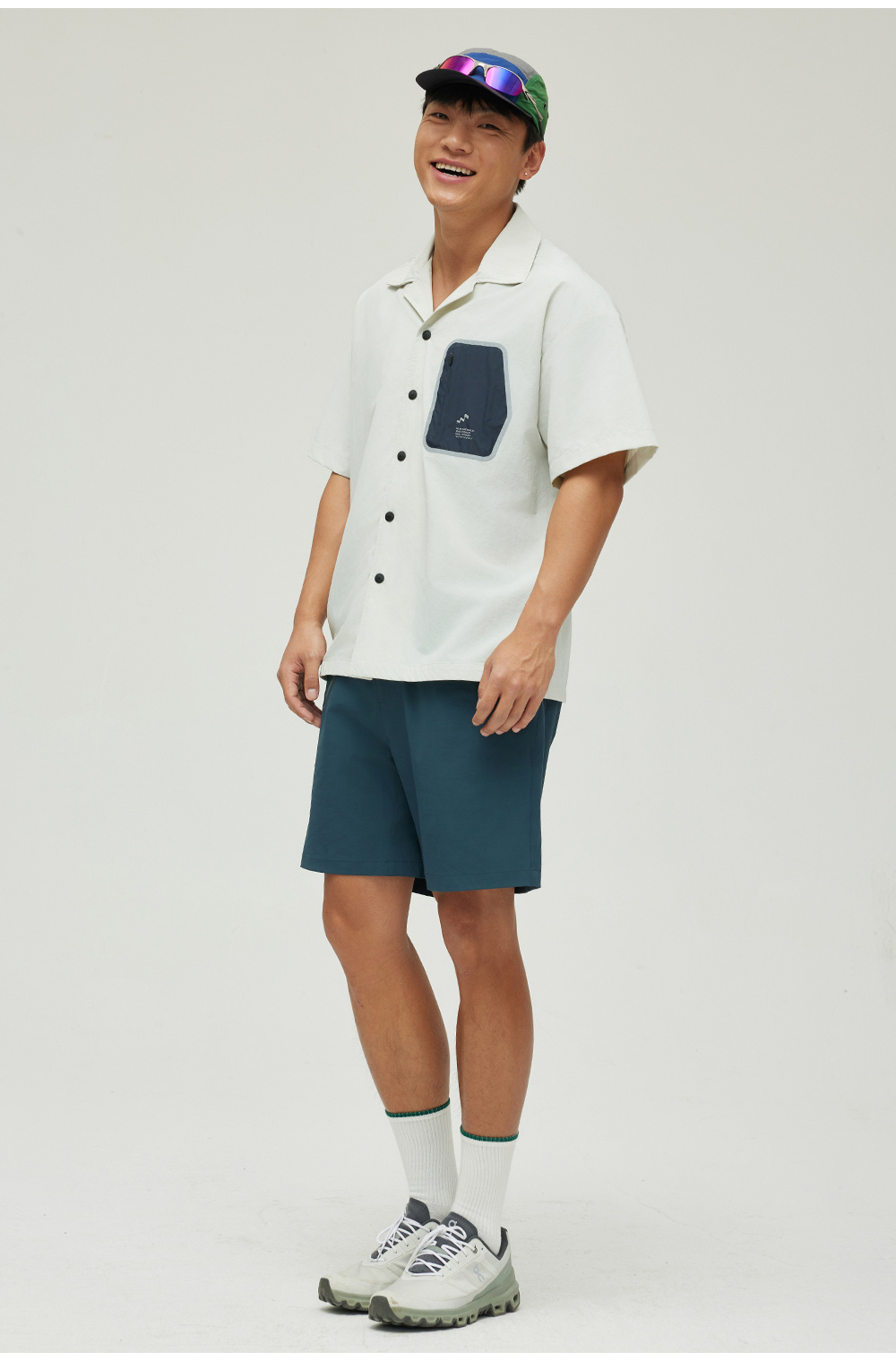 【好货清仓 独特古巴领 前短后长设计】新奇天轻量防泼压胶口袋宽松版短袖衬衫-宽松版,码数偏大