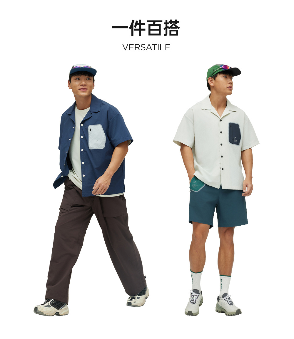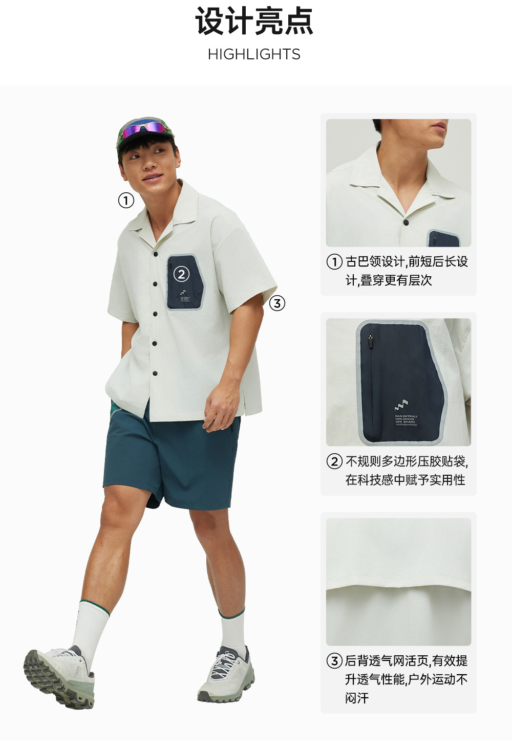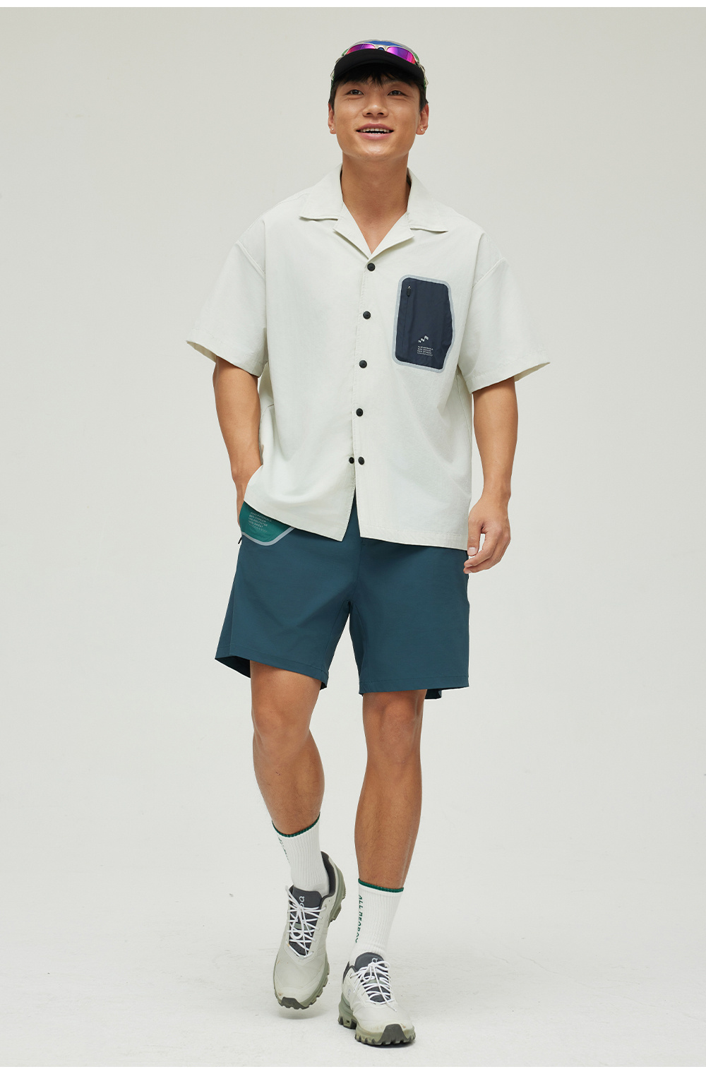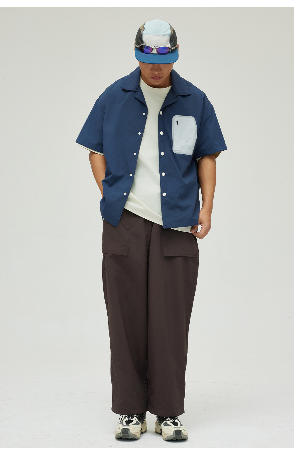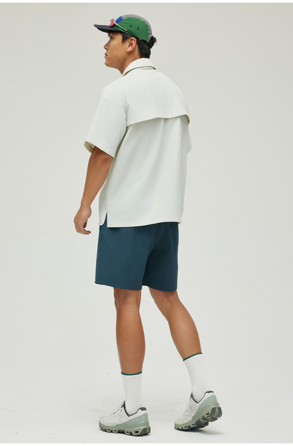 【好货清仓 独特古巴领 前短后长设计】新奇天轻量防泼压胶口袋宽松版短袖衬衫-宽松版,码数偏大