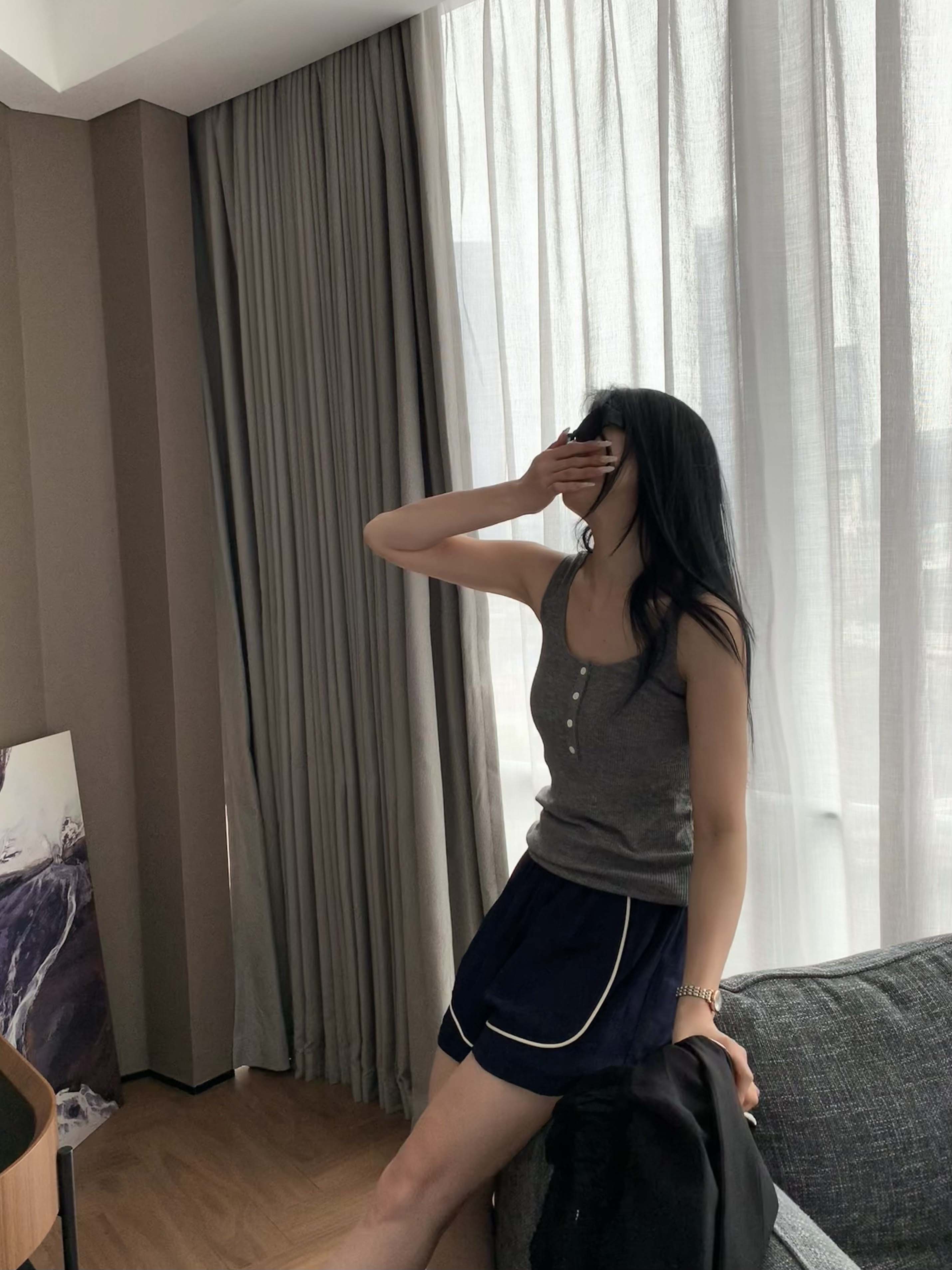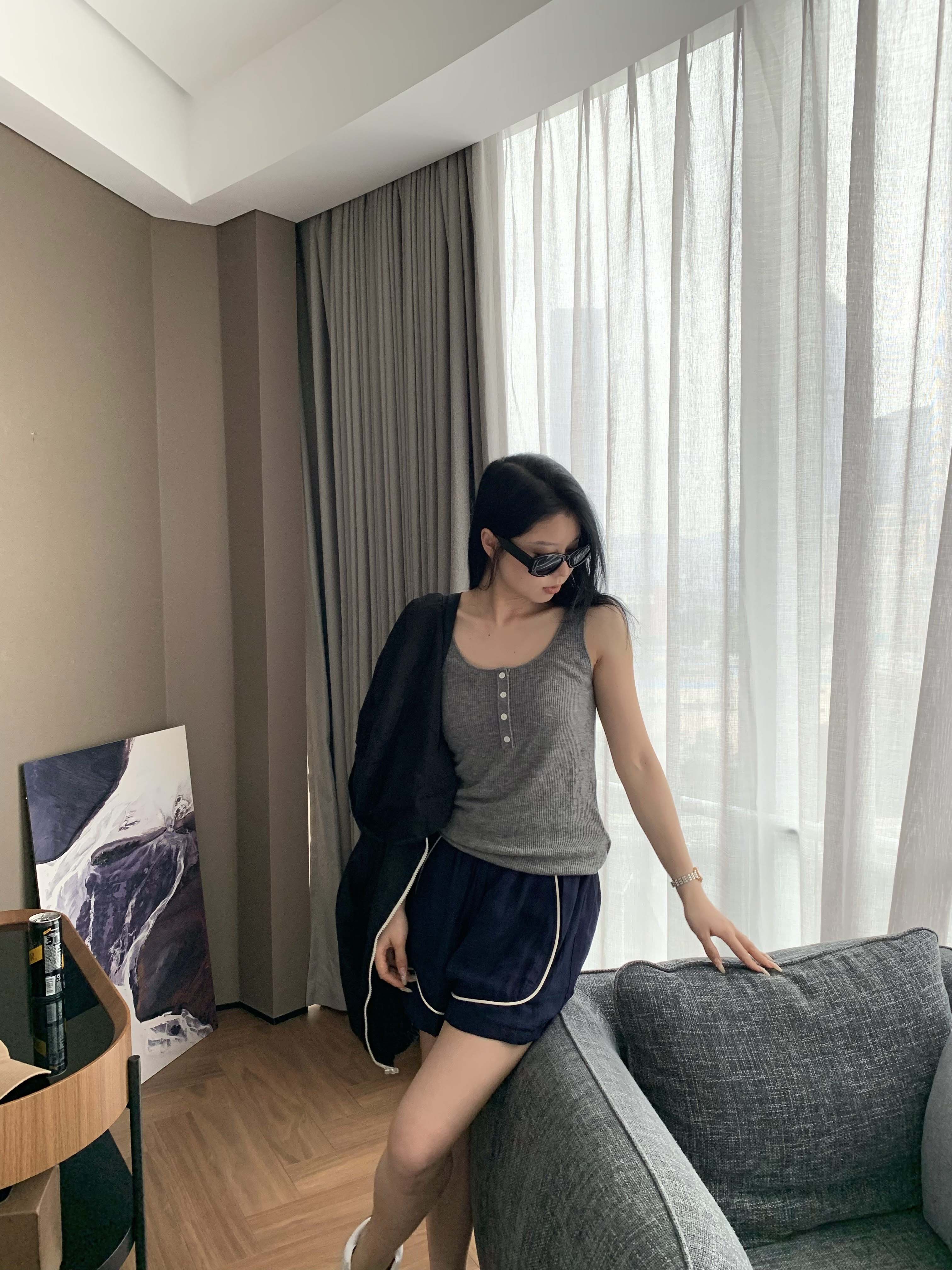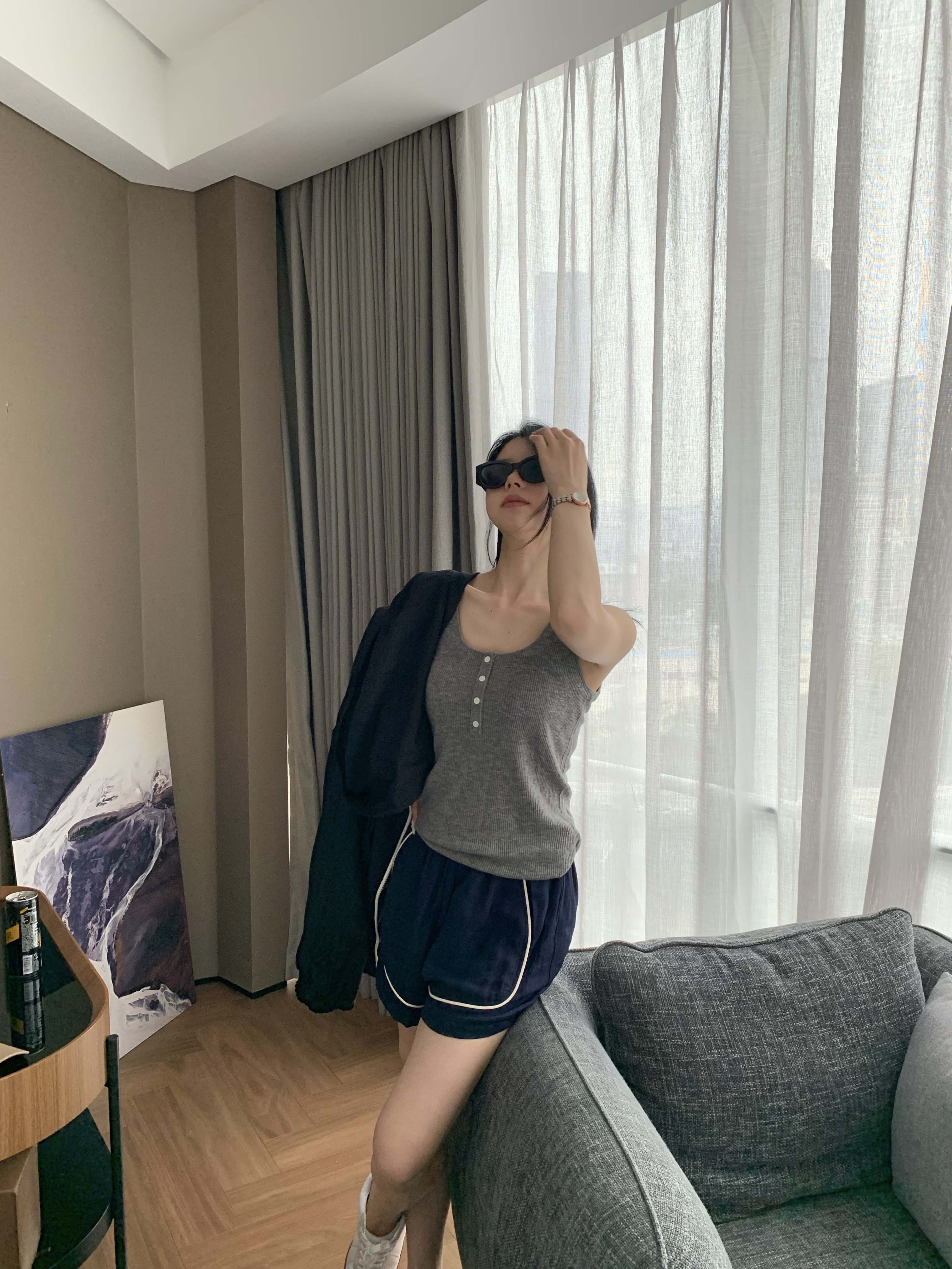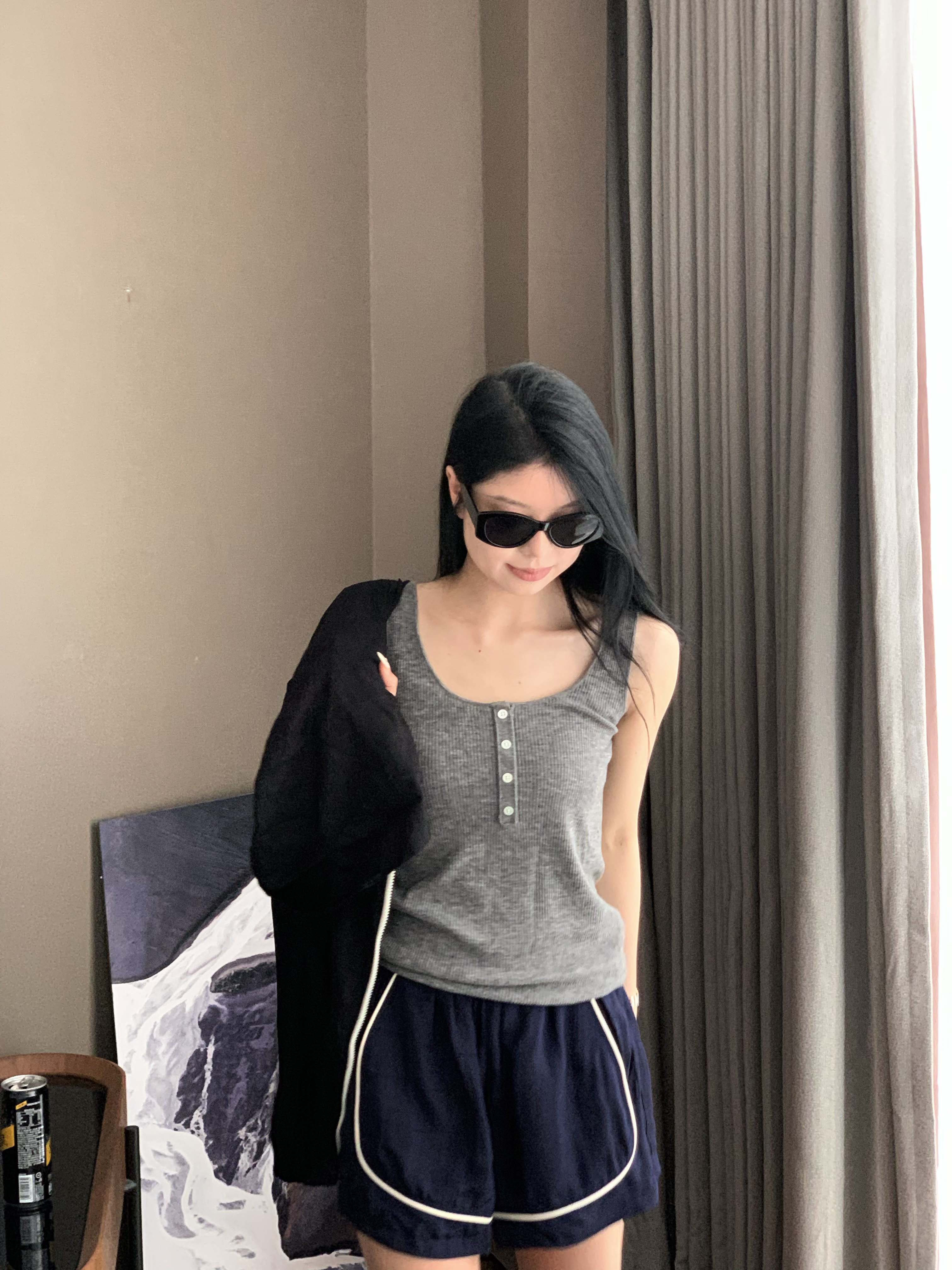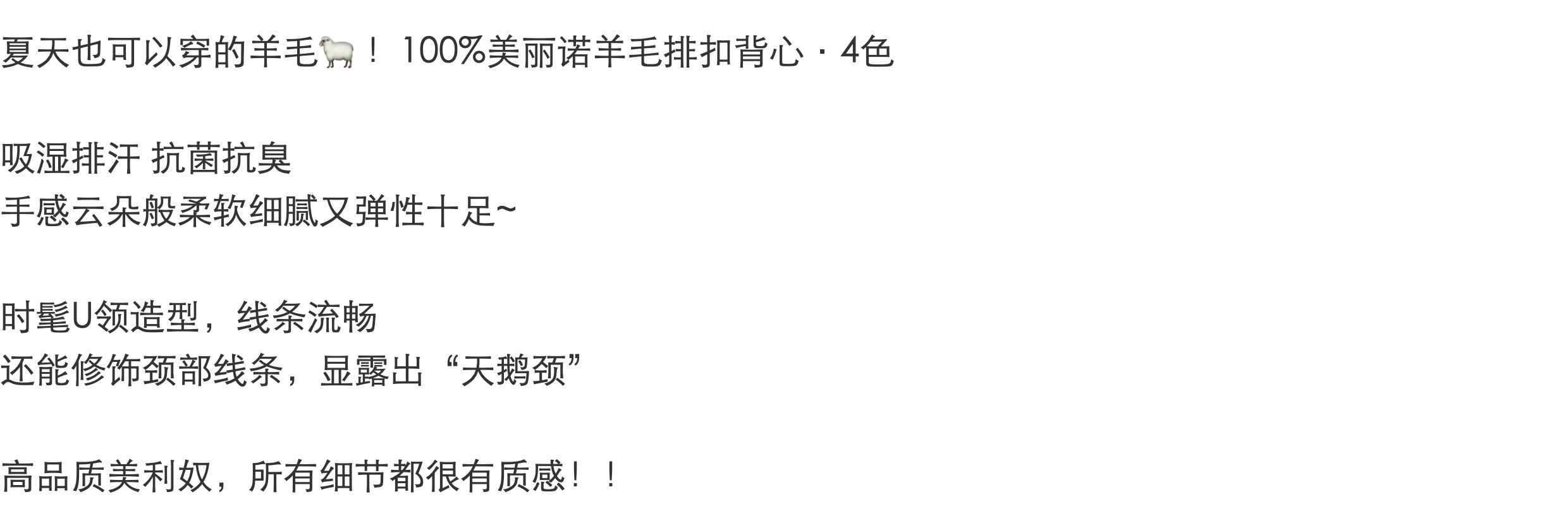 顺丰包邮洛诗琳34327时髦U领美丽诺羊毛排扣打底背心20160