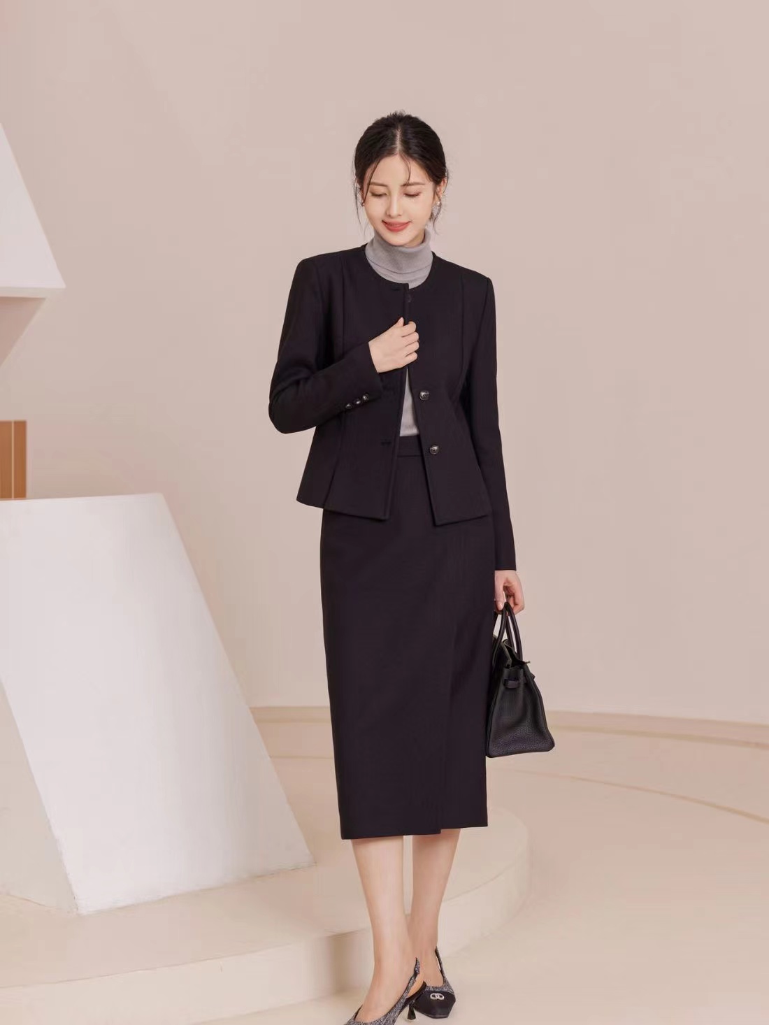 【à perles】高支客供羊毛小香风收腰圆领西装半裙套装【现货】