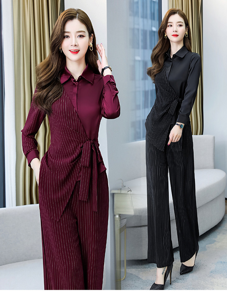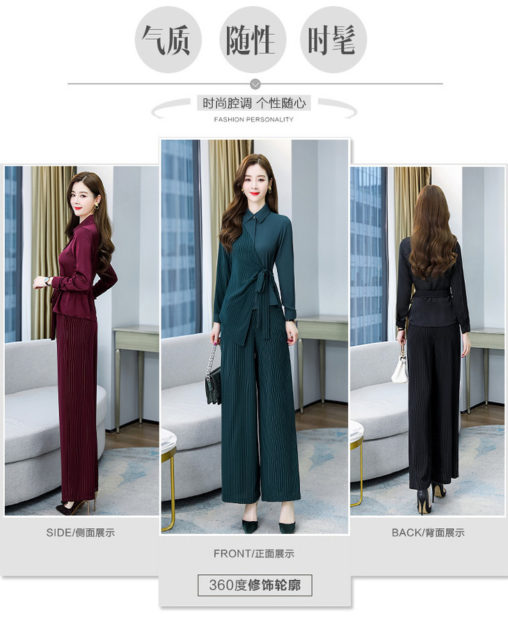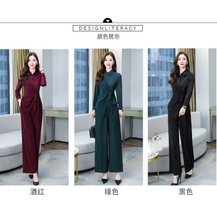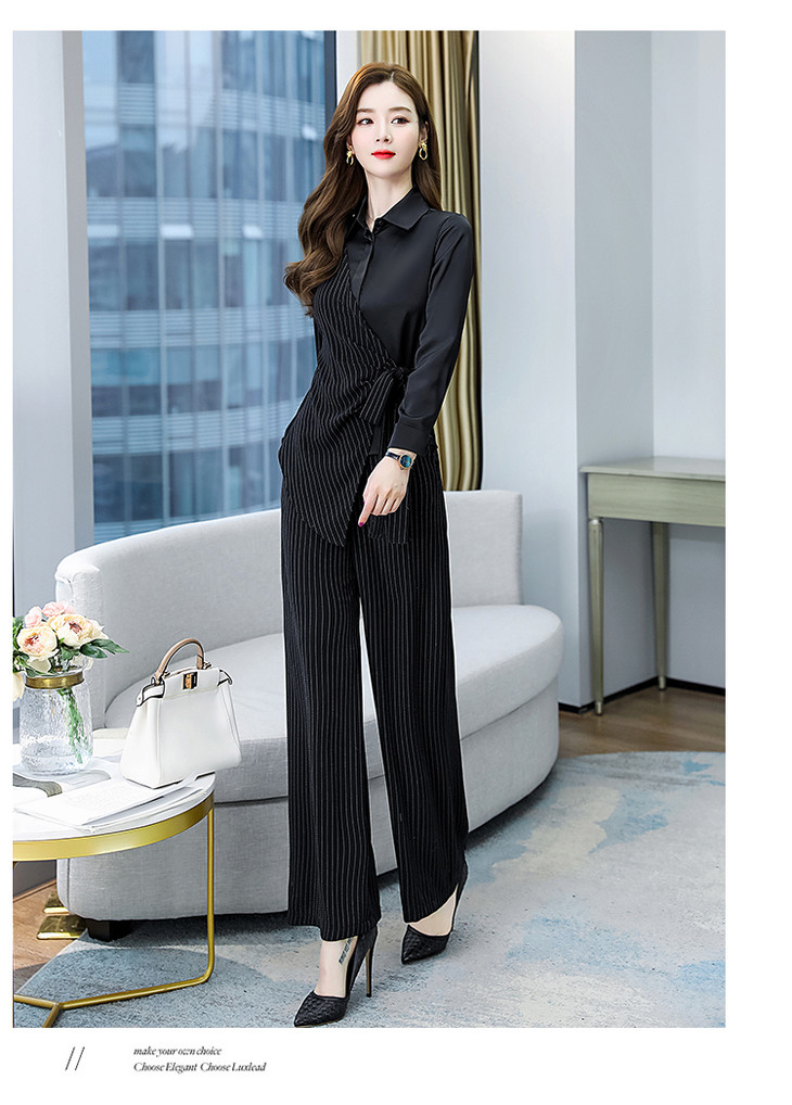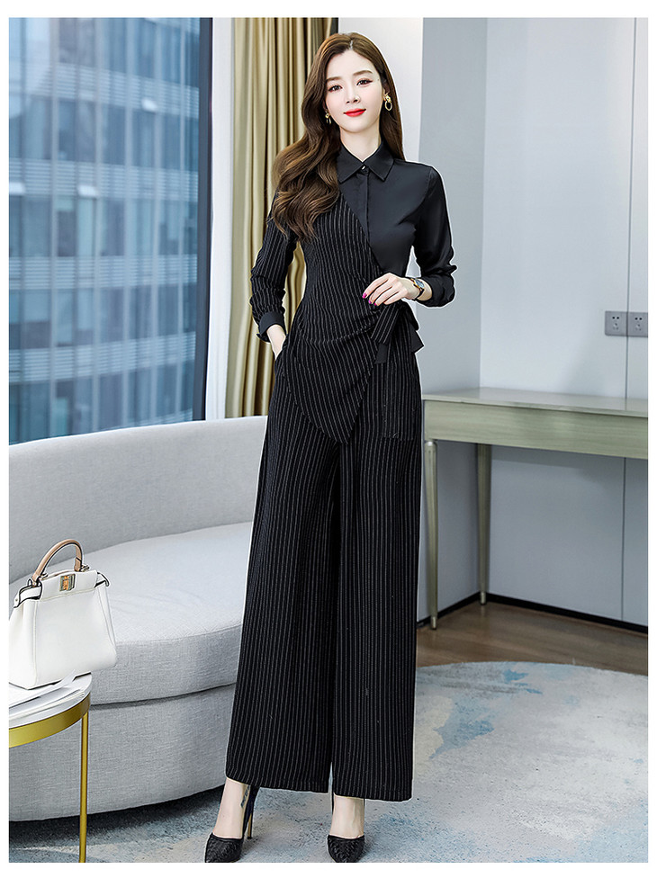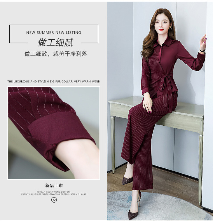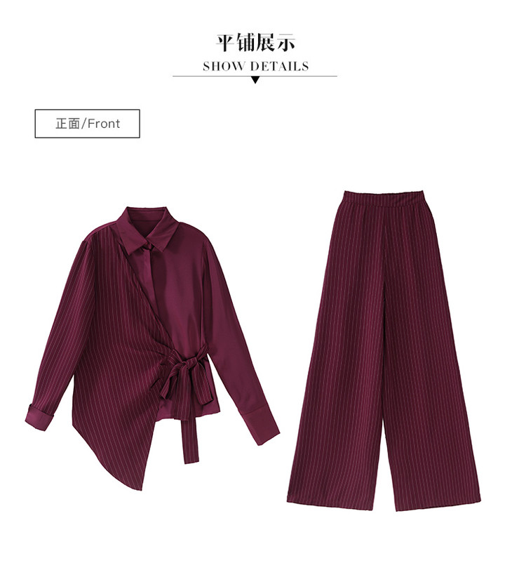 KY-YLFS8752早秋新款时尚洋气显瘦条纹阔腿裤套装