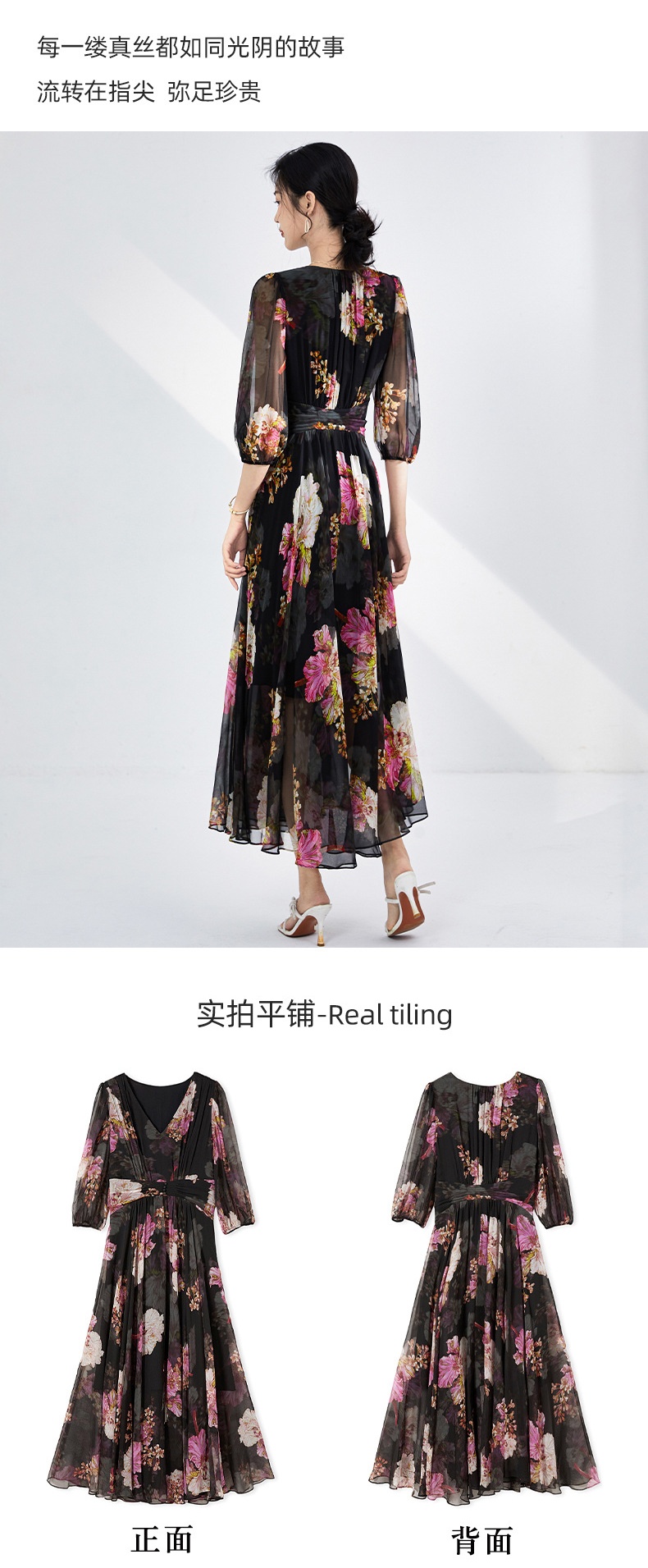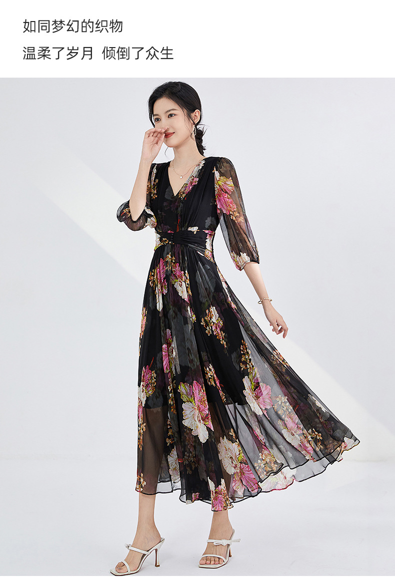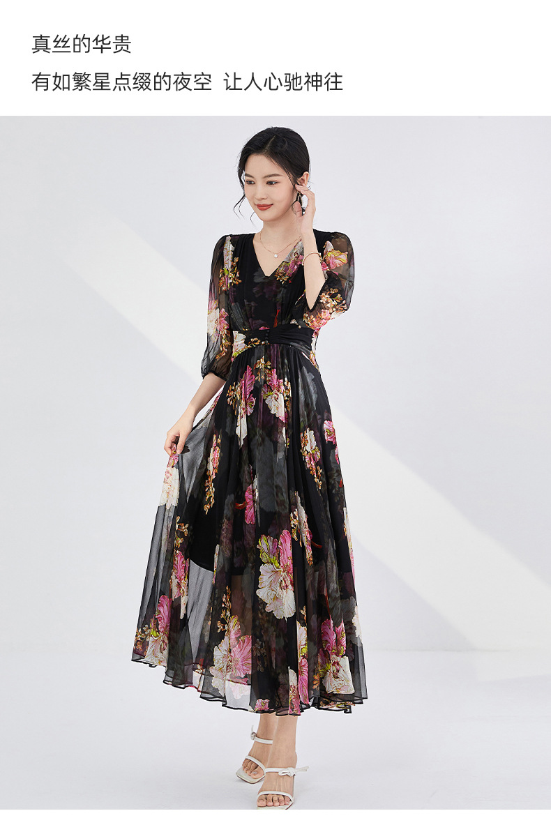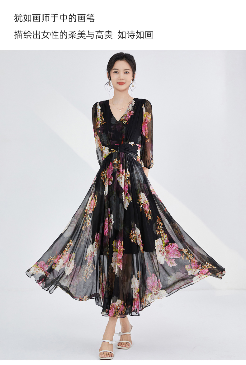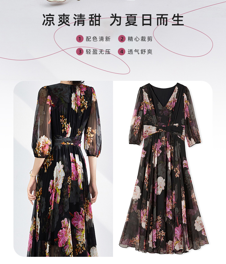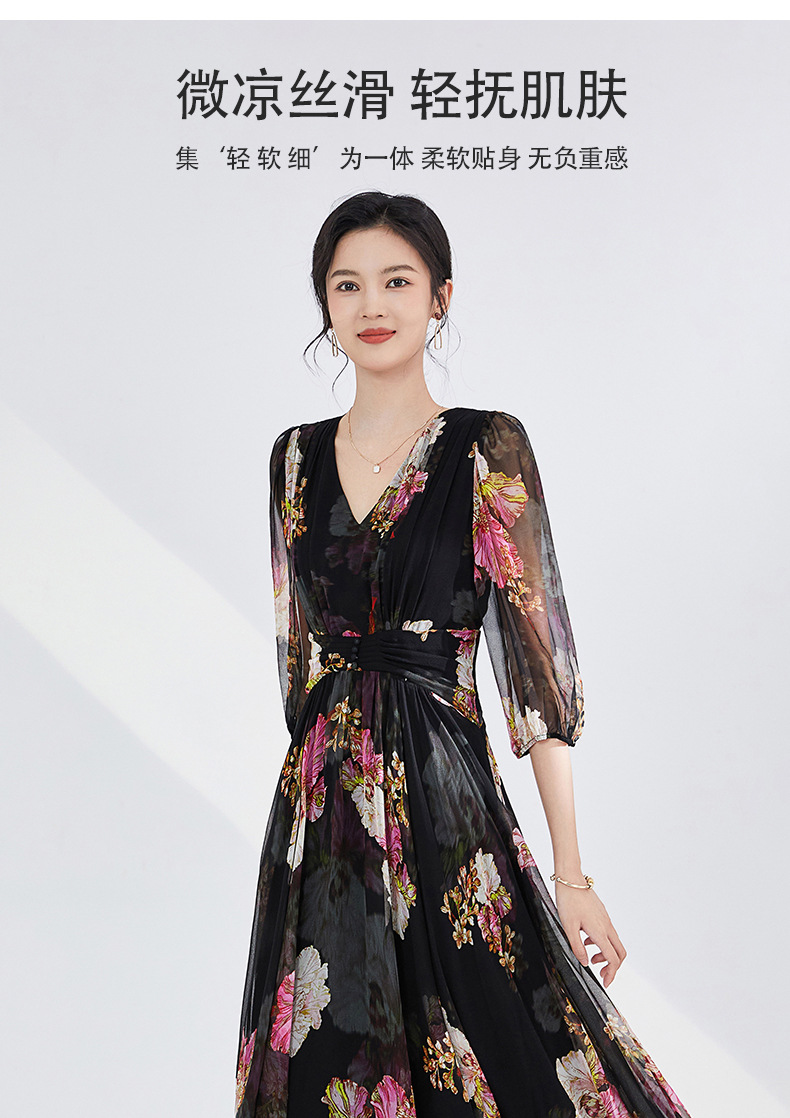 「高货oyg」【铂金会员588/天猫799/差价211】(05324)洛诗琳气质V领真丝印花连衣裙2025夏季气质收腰A字茶歇裙oyg