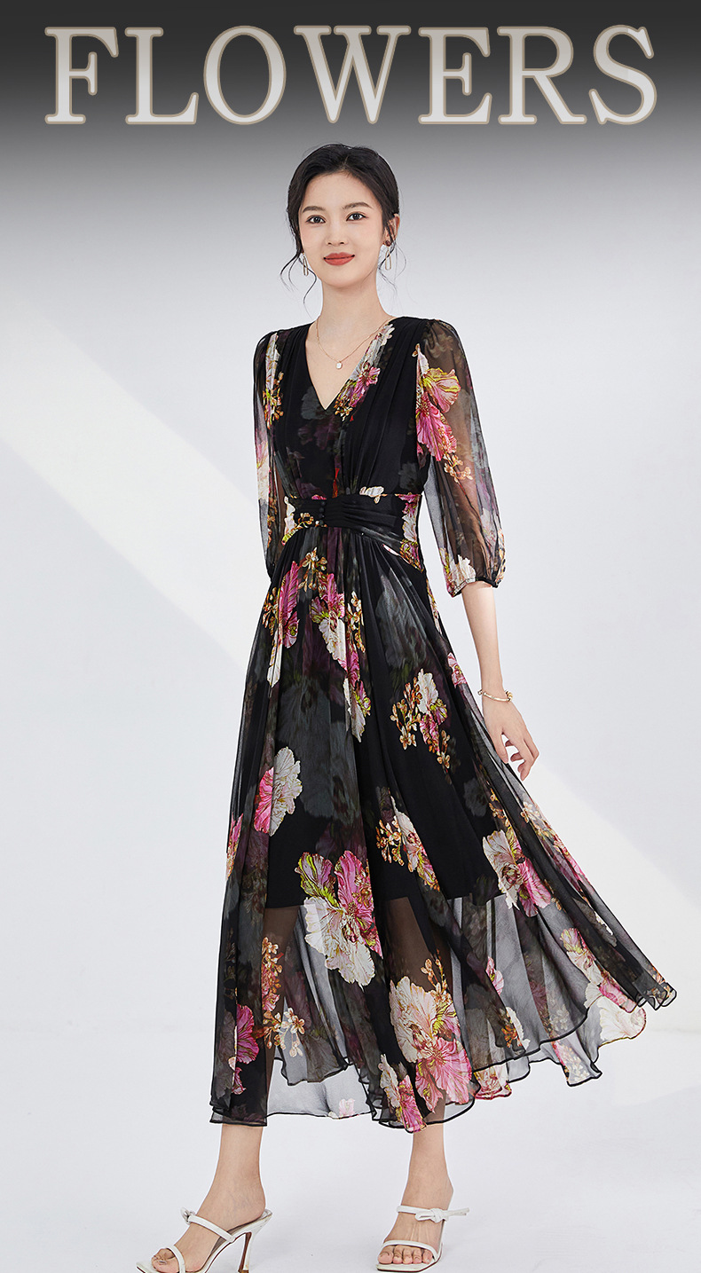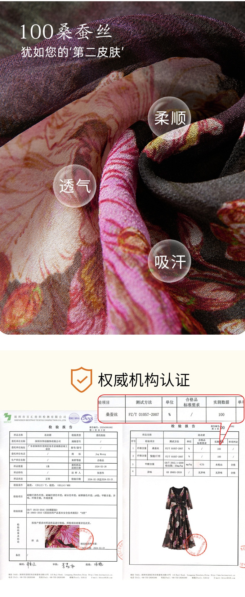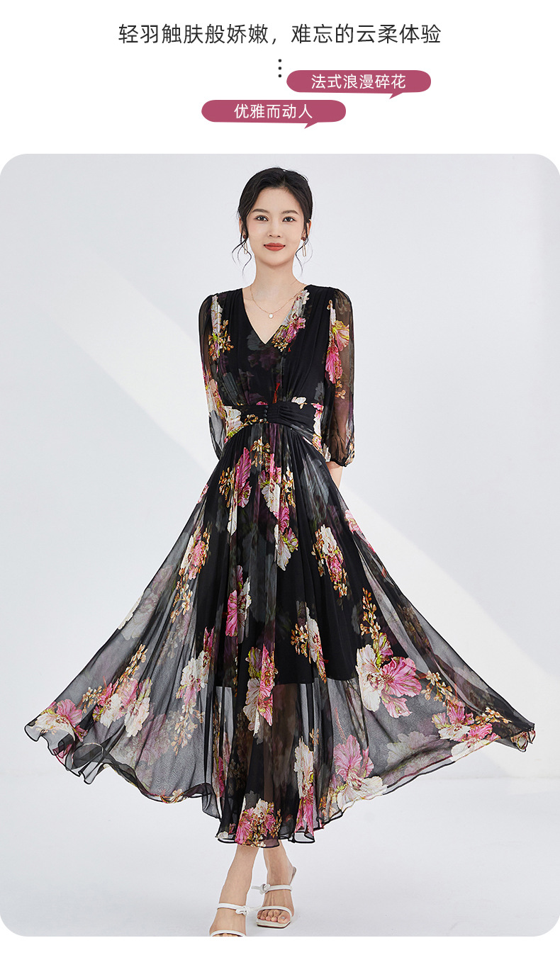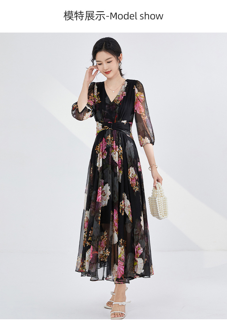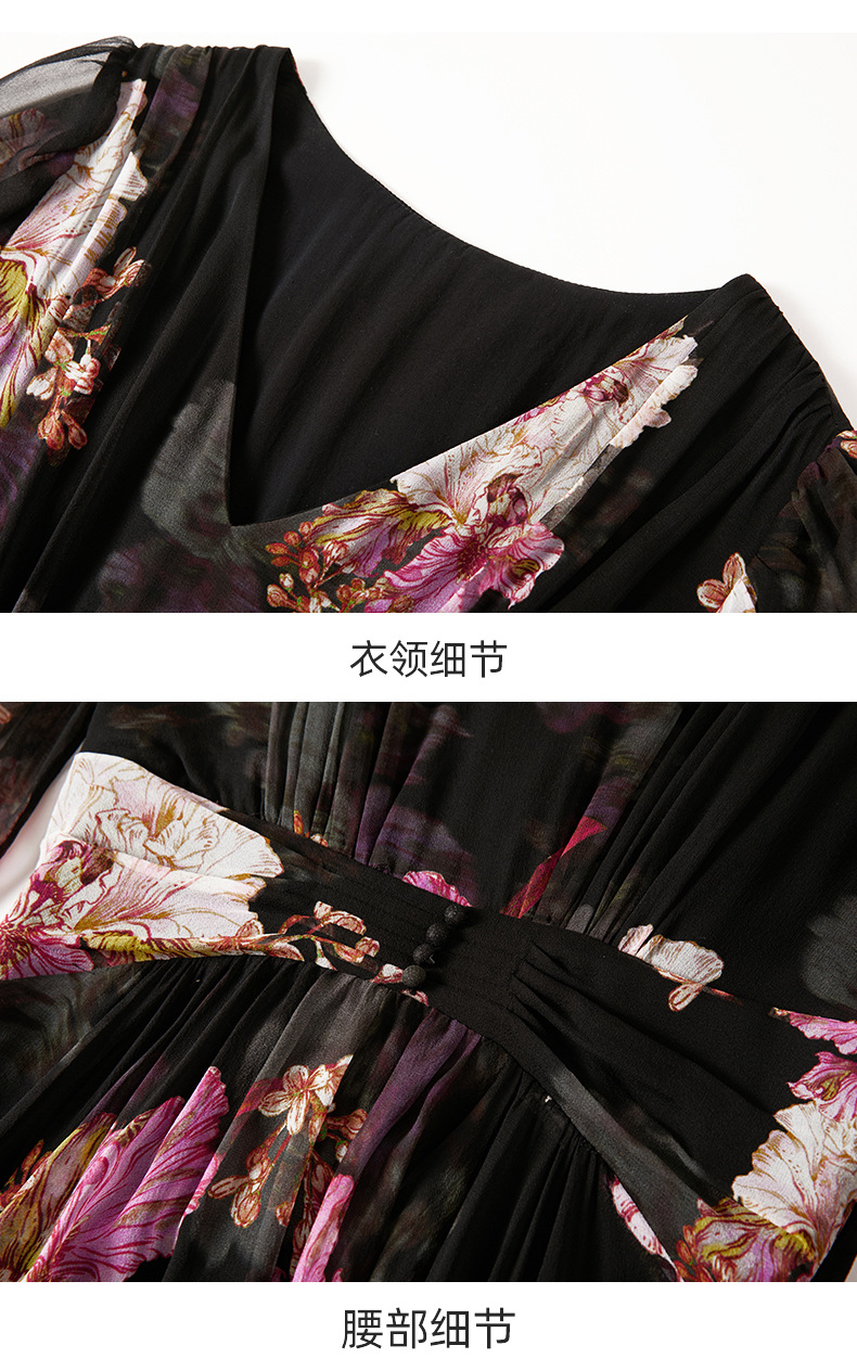 「高货oyg」【铂金会员588/天猫799/差价211】(05324)洛诗琳气质V领真丝印花连衣裙2025夏季气质收腰A字茶歇裙oyg