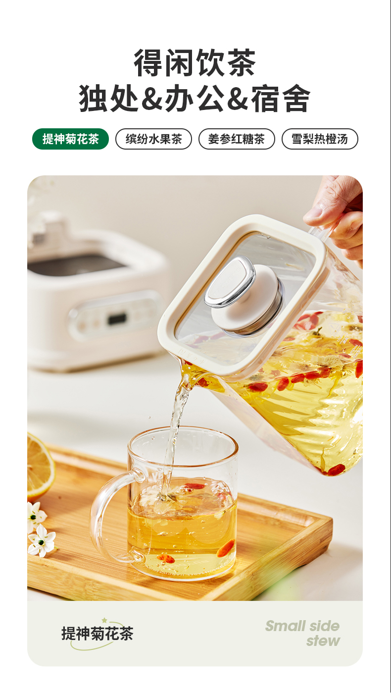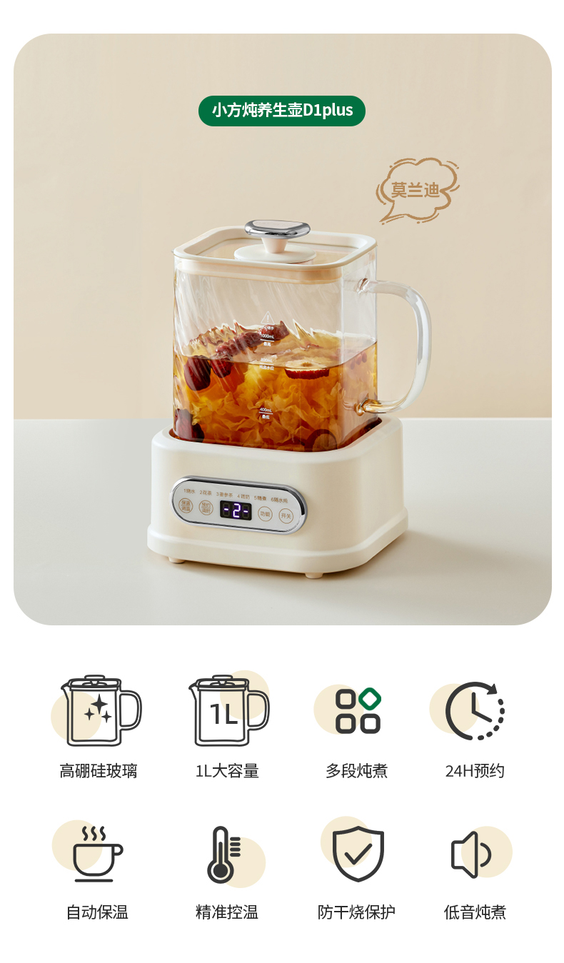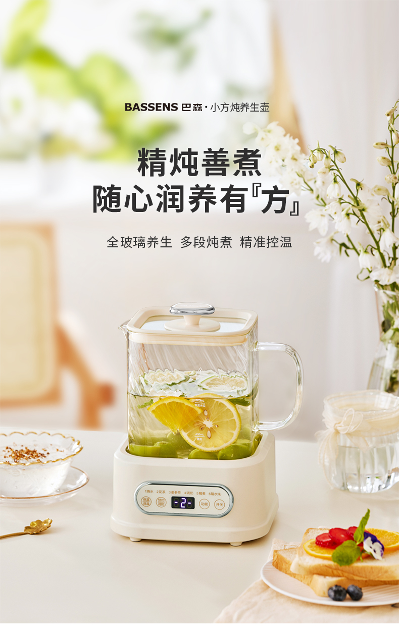 巴森 小方炖 养生壶 1L 低音烹煮 办公/居家不扰他人 精准温控 提杯记忆,中途倒茶无需重新设置