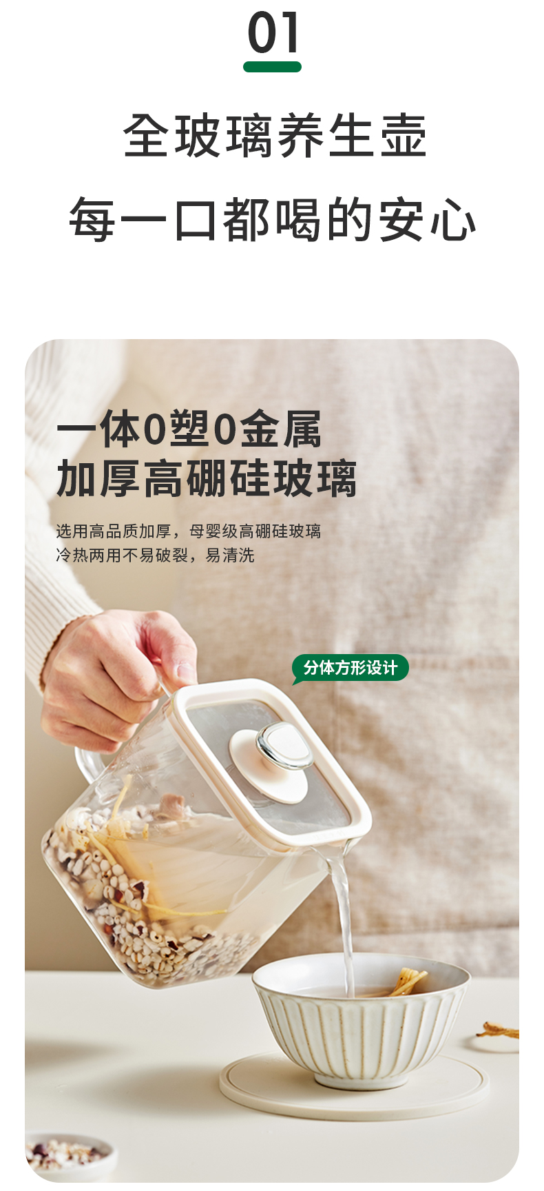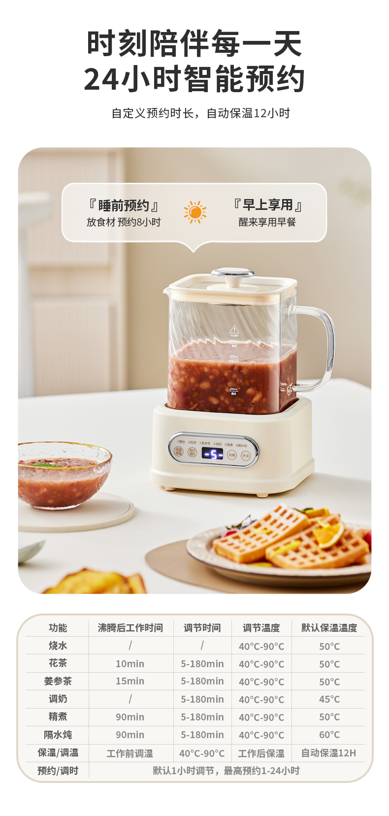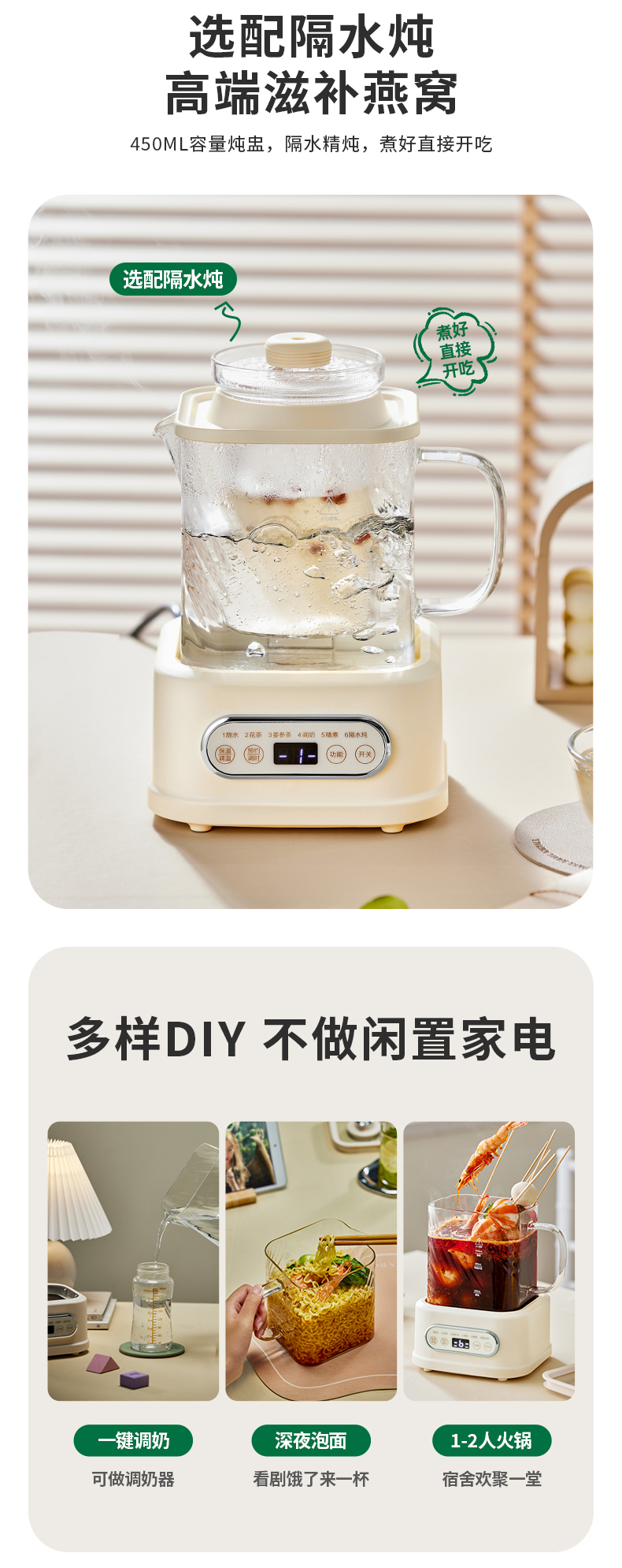 巴森 小方炖 养生壶 1L 低音烹煮 办公/居家不扰他人 精准温控 提杯记忆,中途倒茶无需重新设置