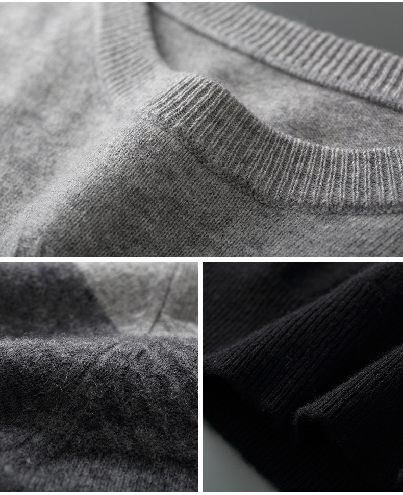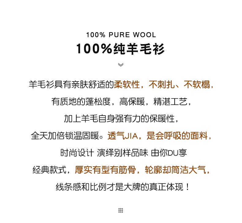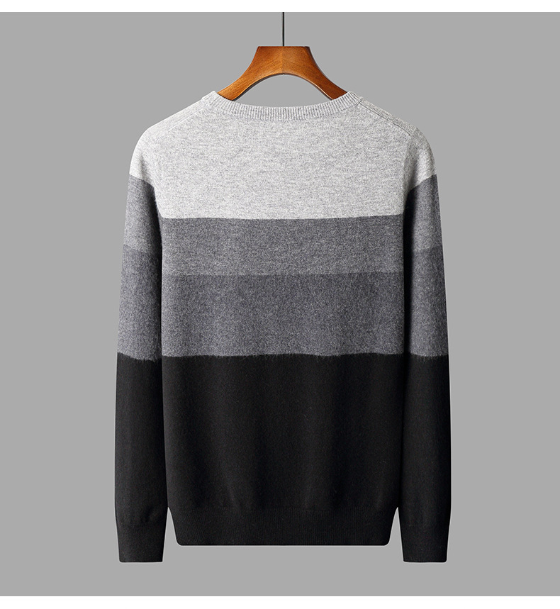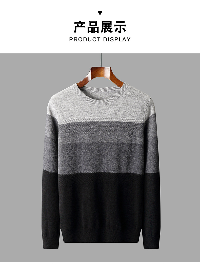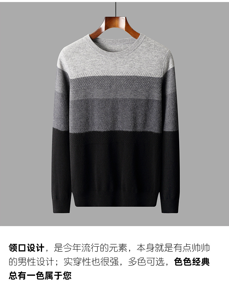 红览 100%纯羊毛衫男圆领拼色加厚提花毛衣宽松休闲针织打底衫2039