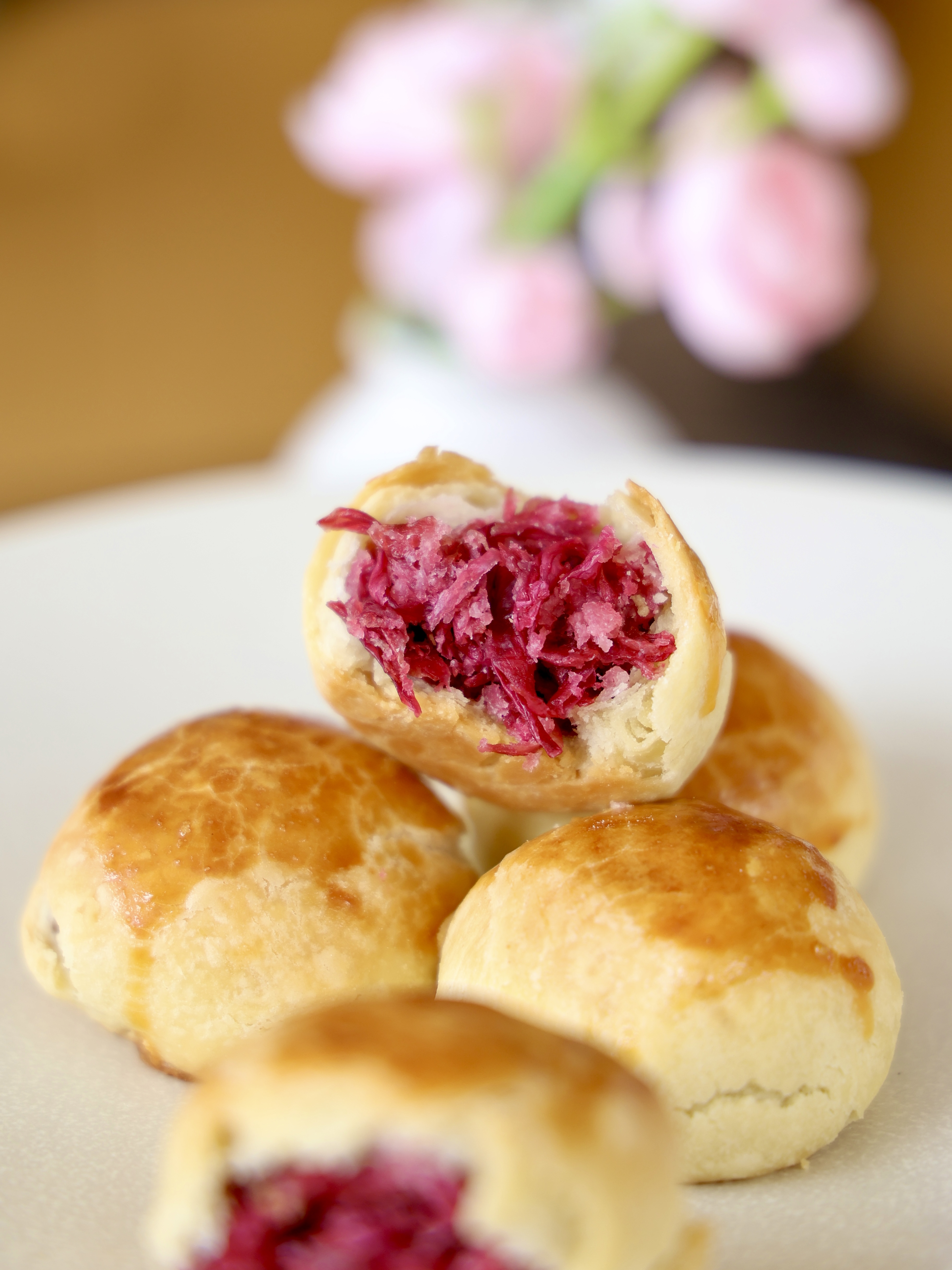 油皮在外,包入玫瑰馅,