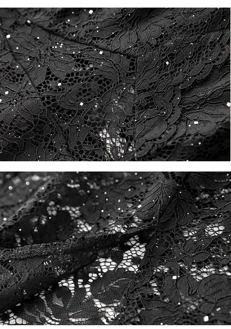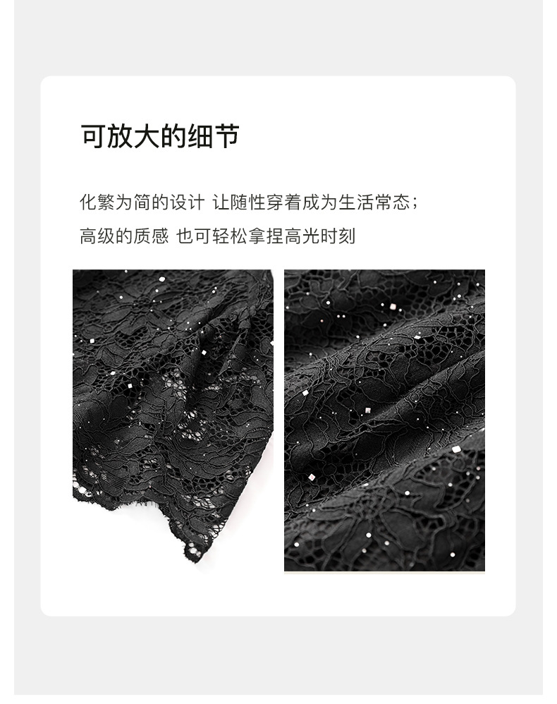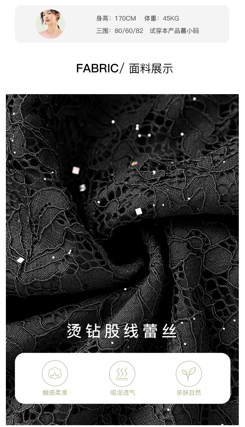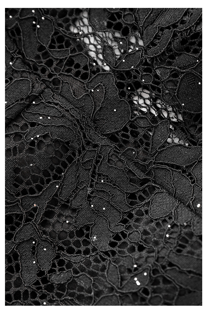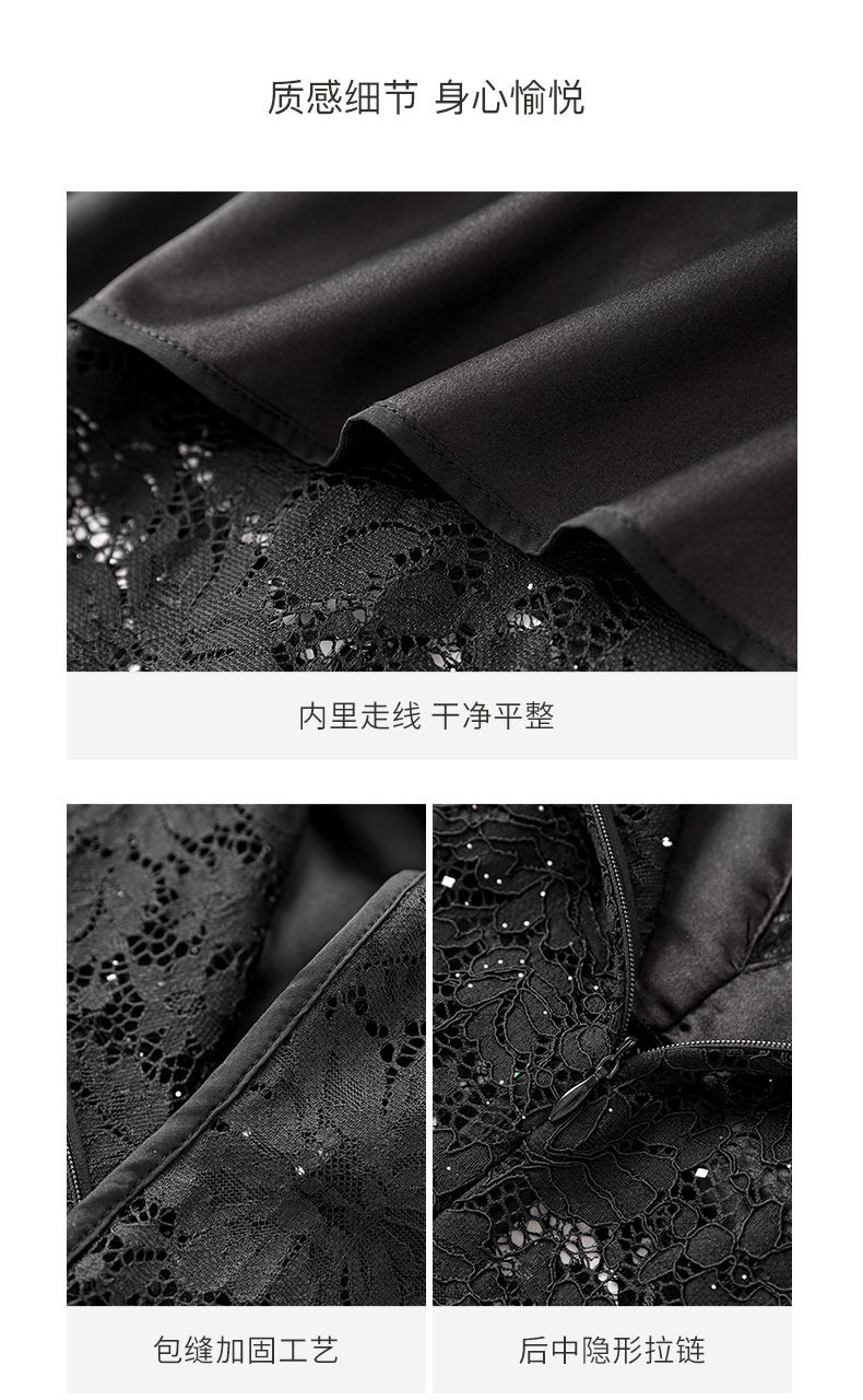 名媛气质感,V领烫钻股线蕾丝微透视小性感包臀连衣裙WLZD-2312303