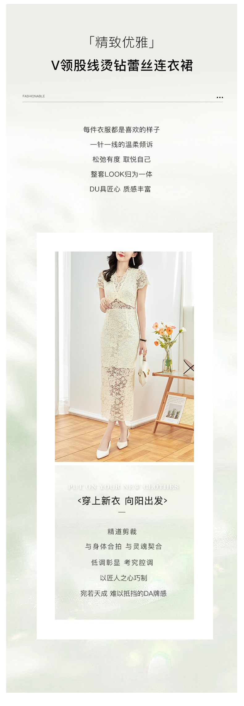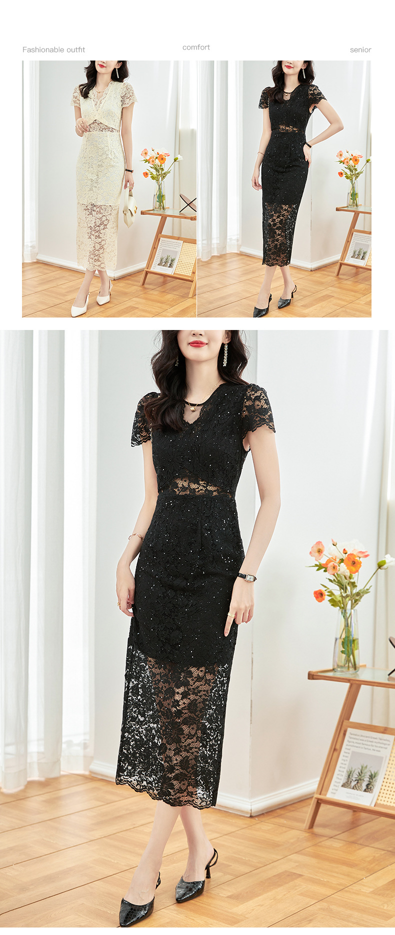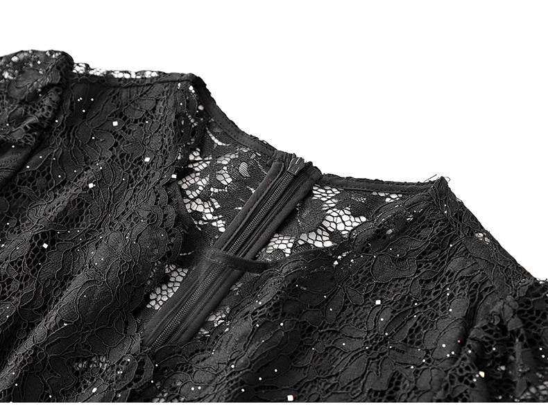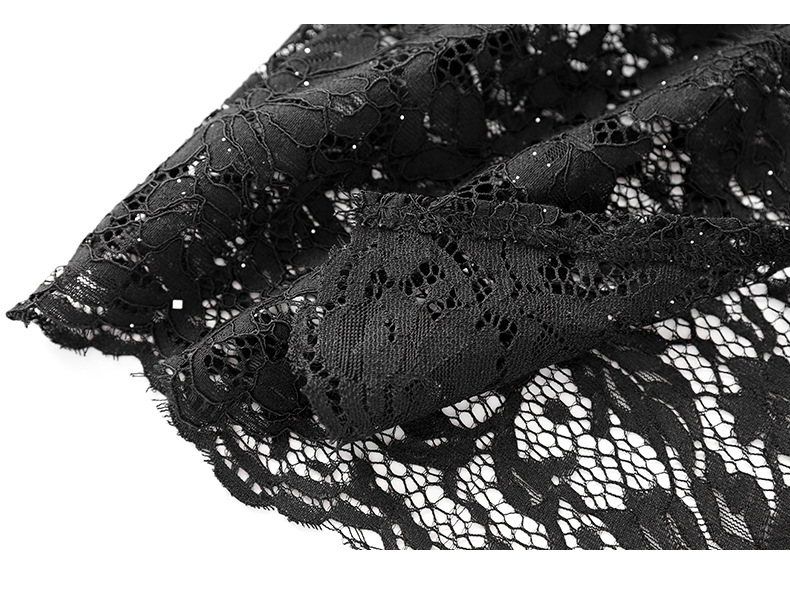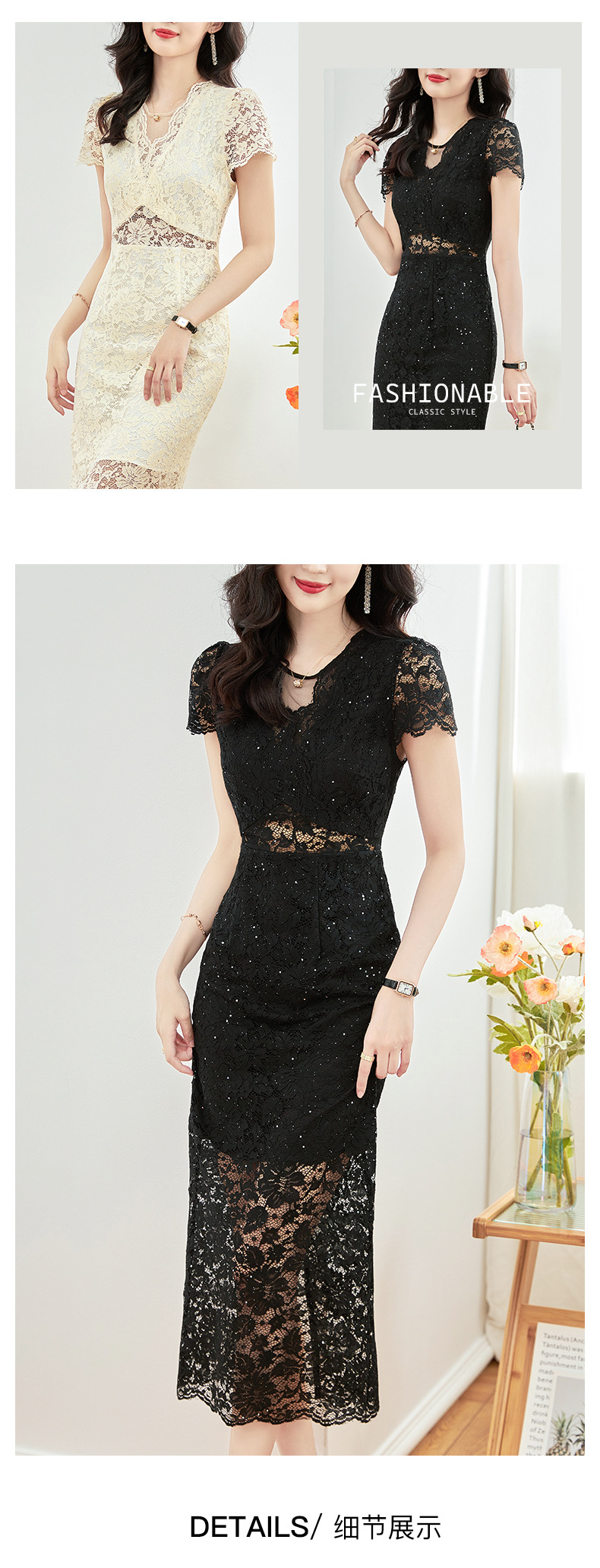 名媛气质感,V领烫钻股线蕾丝微透视小性感包臀连衣裙WLZD-2312303
