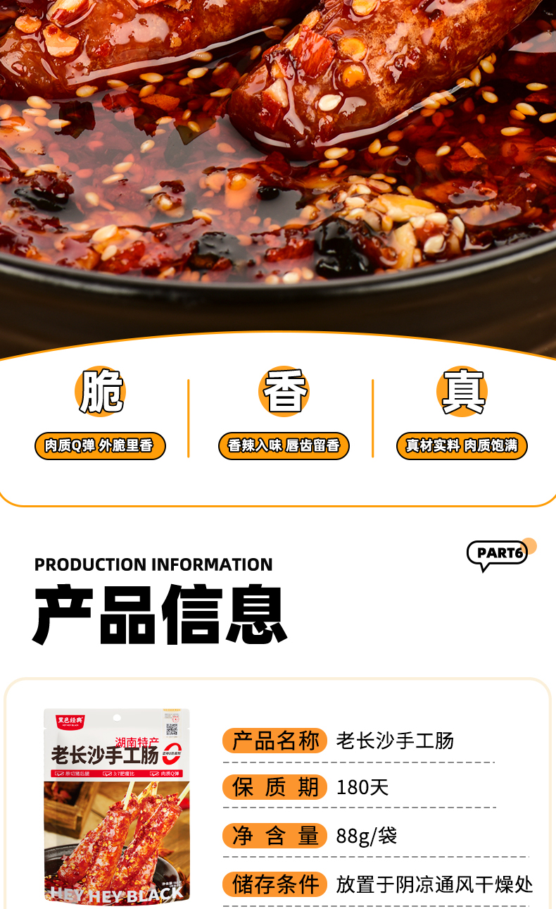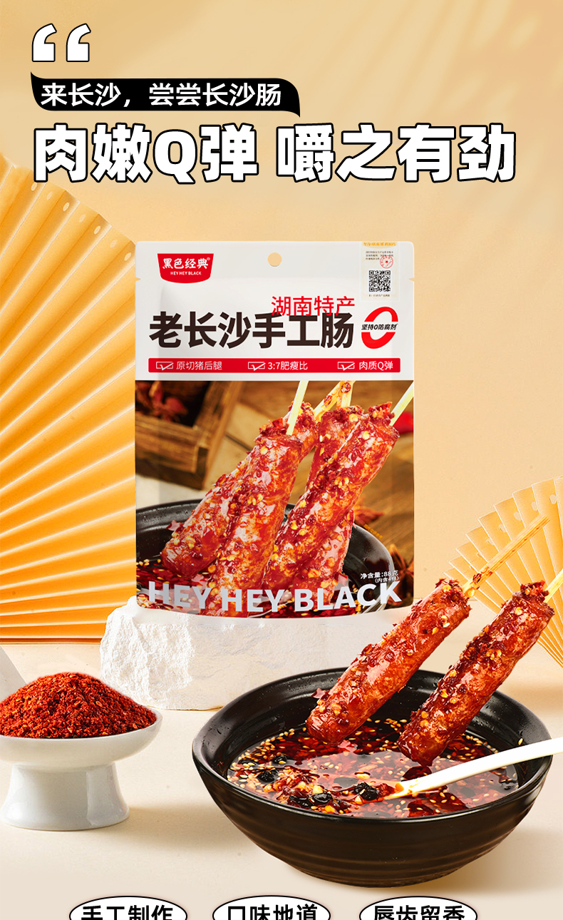 【香肠新品】黑色经典老长沙手工肠香辣味 22g*4