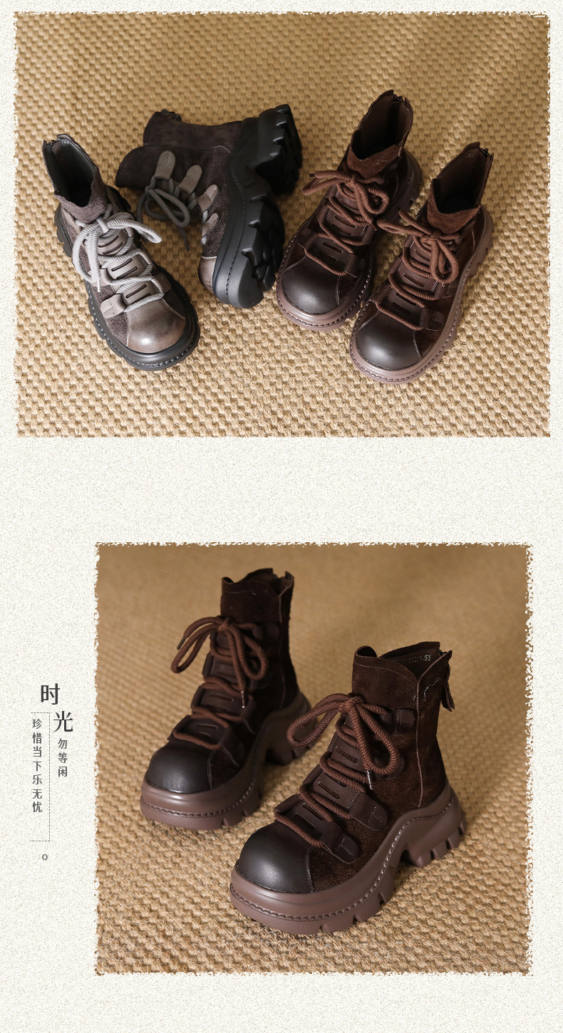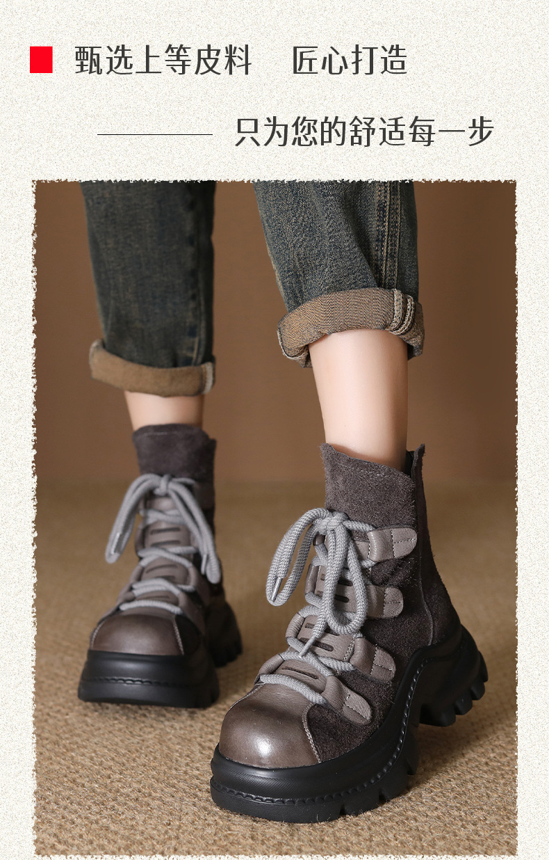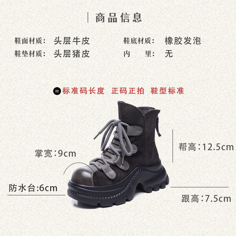 FR 85015工装靴防滑耐磨真皮厚底马丁复古休闲短靴