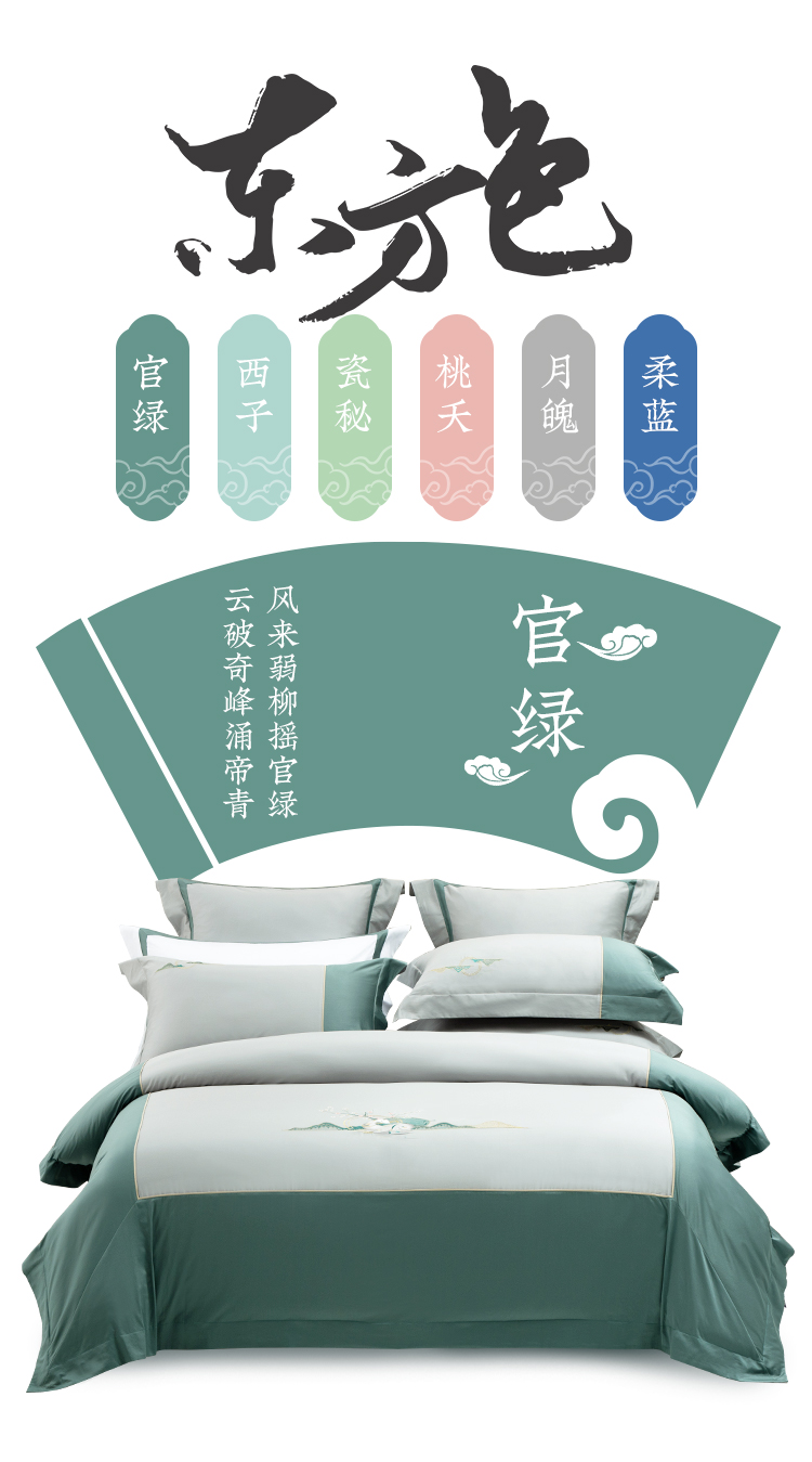 多喜爱山海经 60S新绒棉刺绣四件套 山川意境 cs