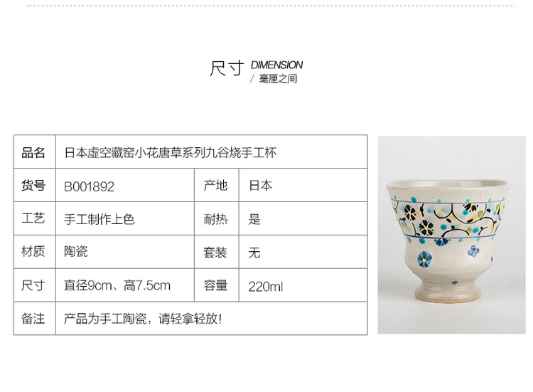 【虚空藏窑】日本原产虚空藏窑小花唐草系列手工杯