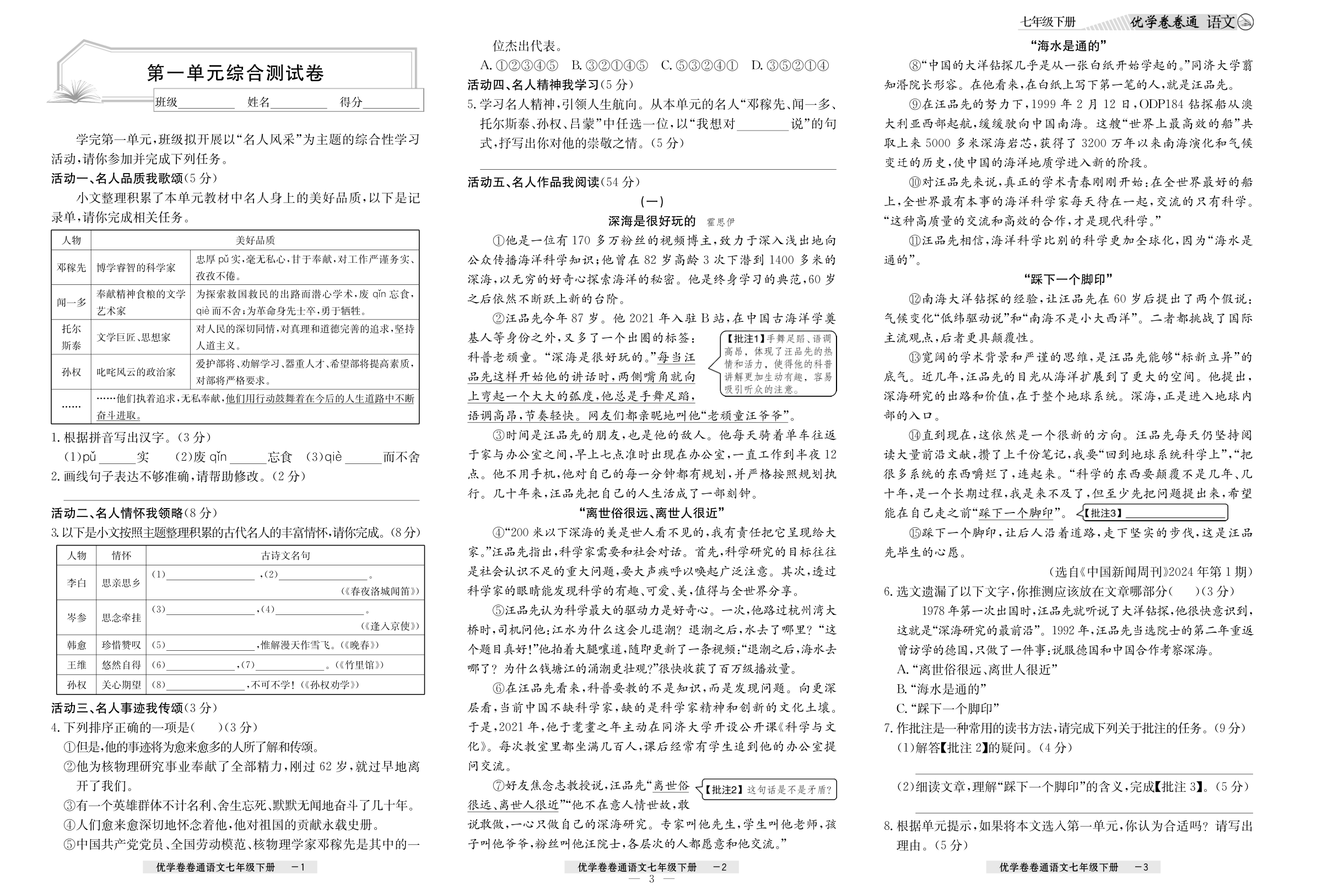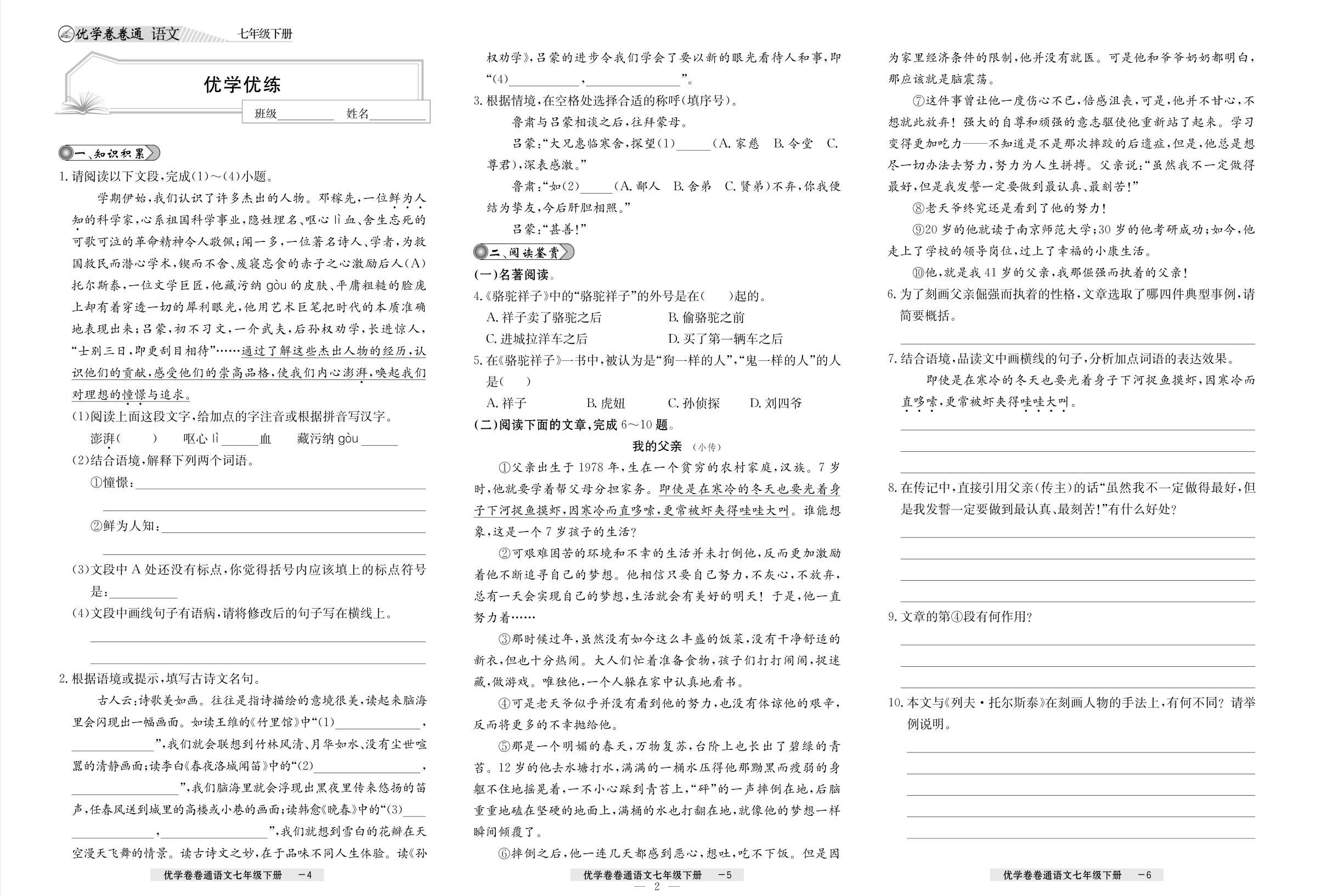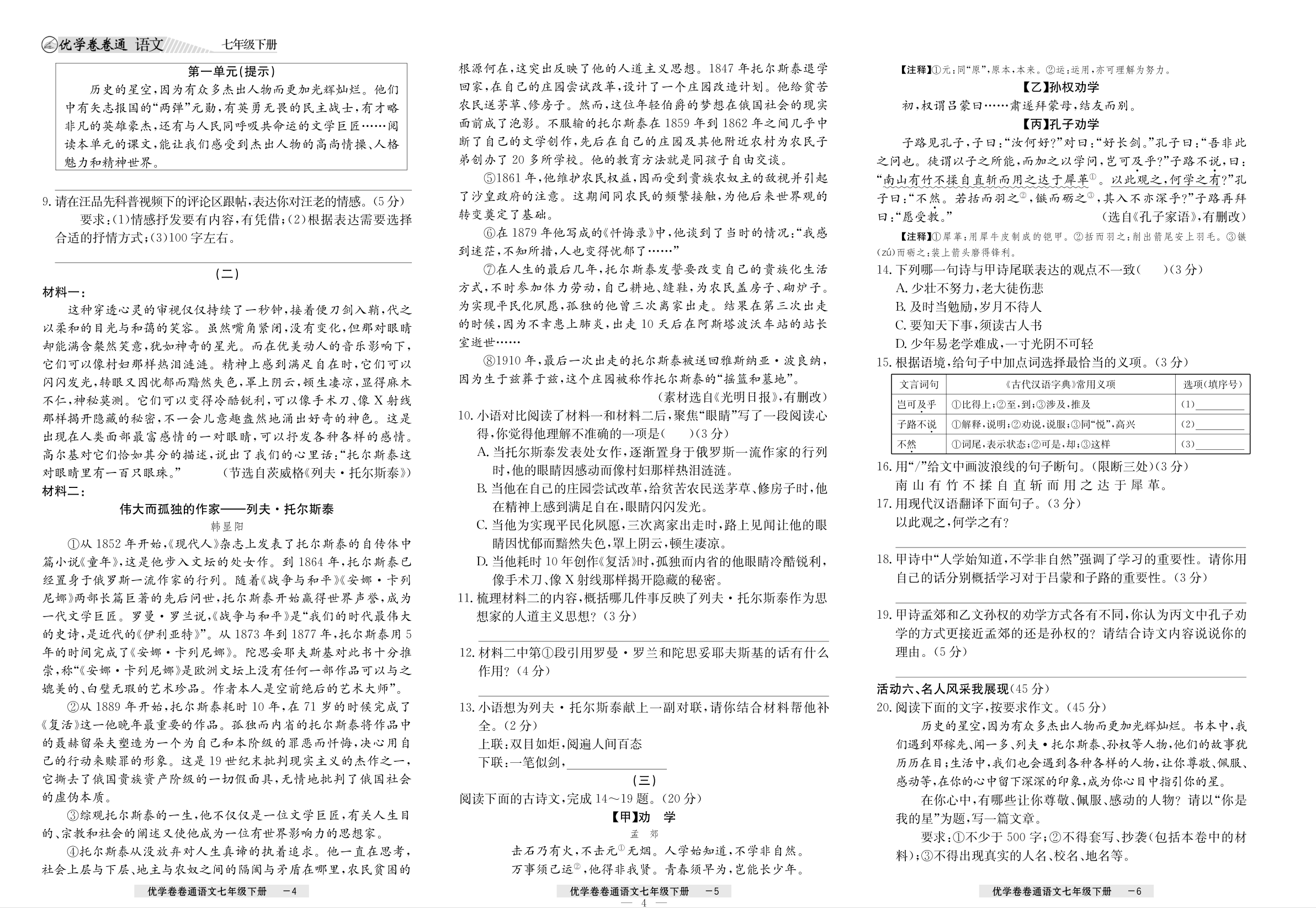 2026优学卷卷通下册初中单元卷语文高分拔尖训练