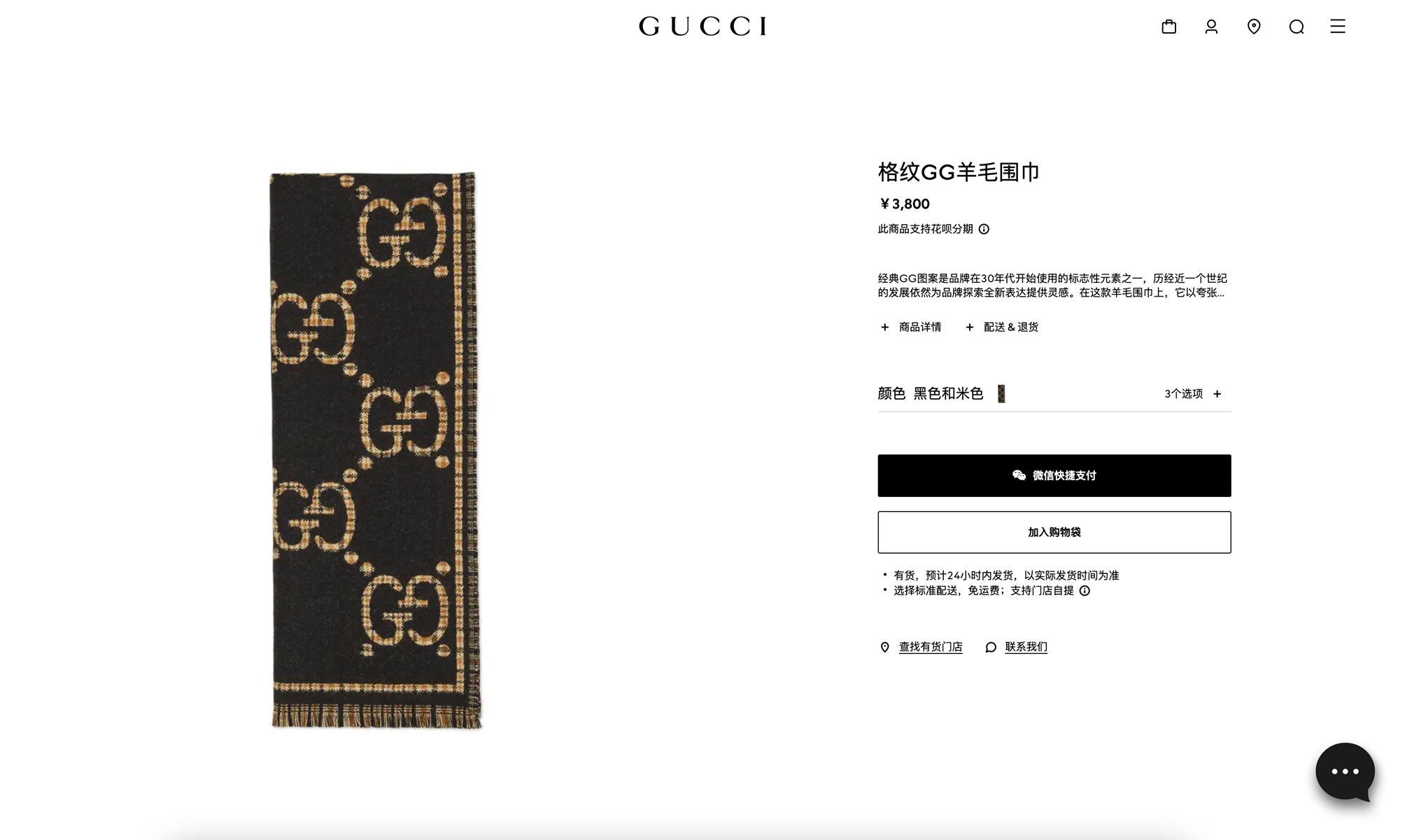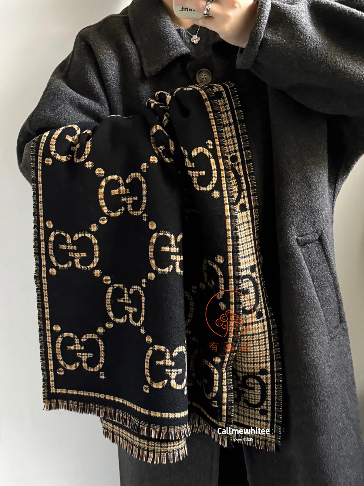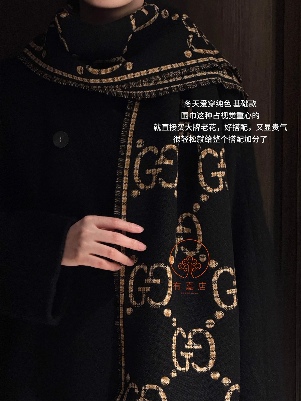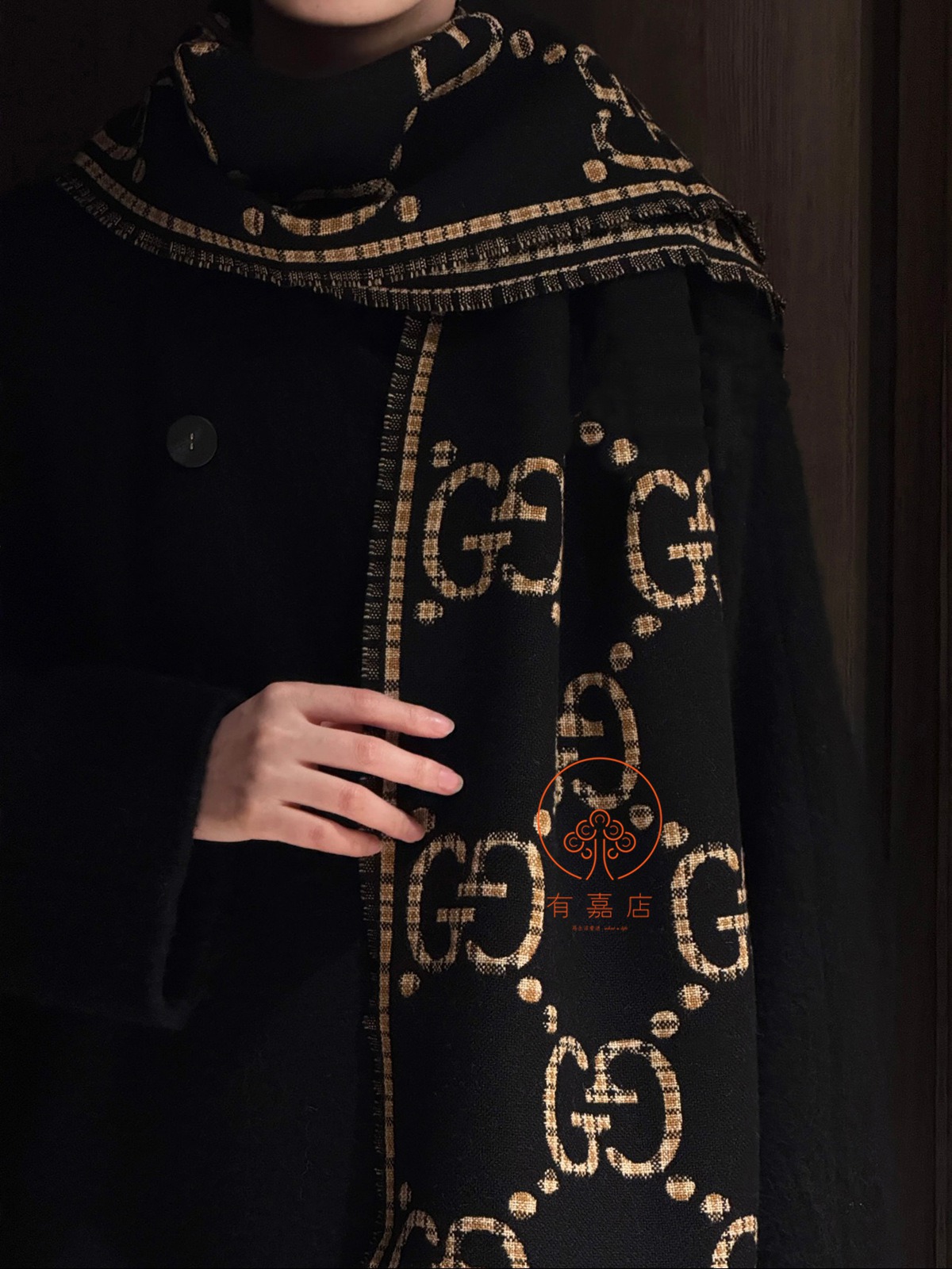 gucci黑金双面提花围巾。全原,专柜360度细细对比即可。