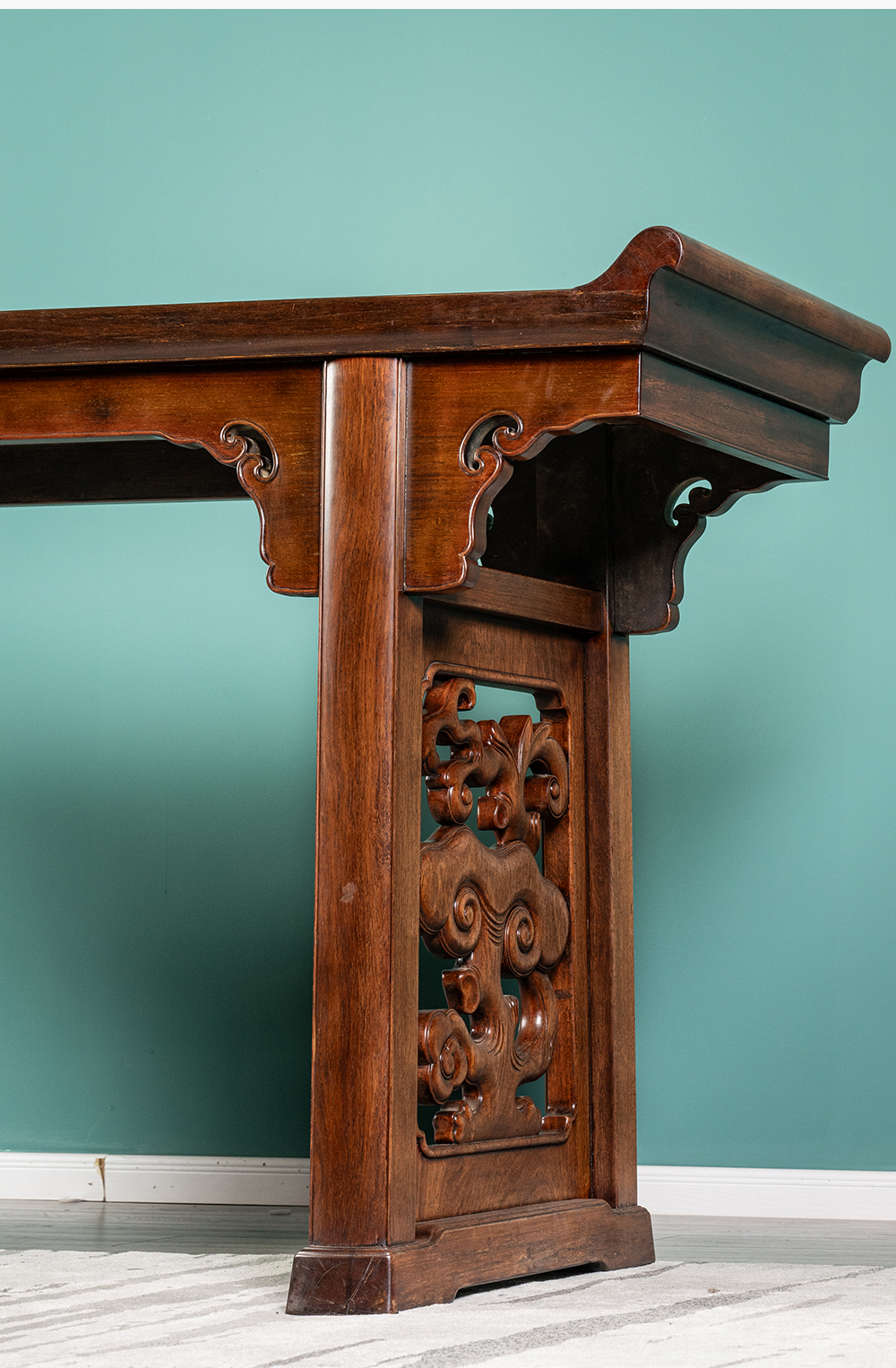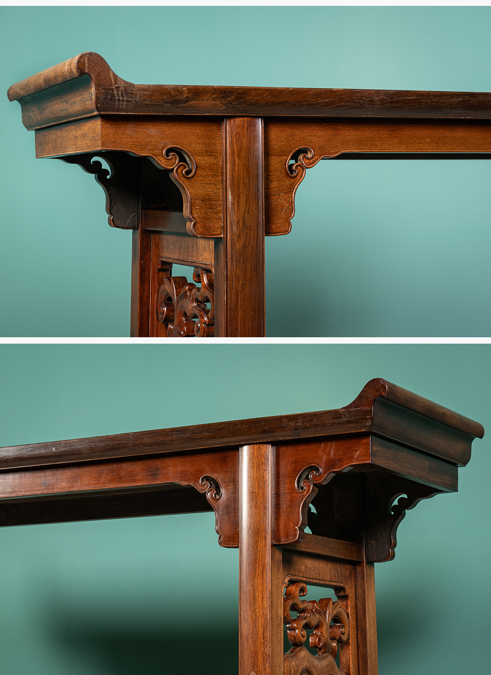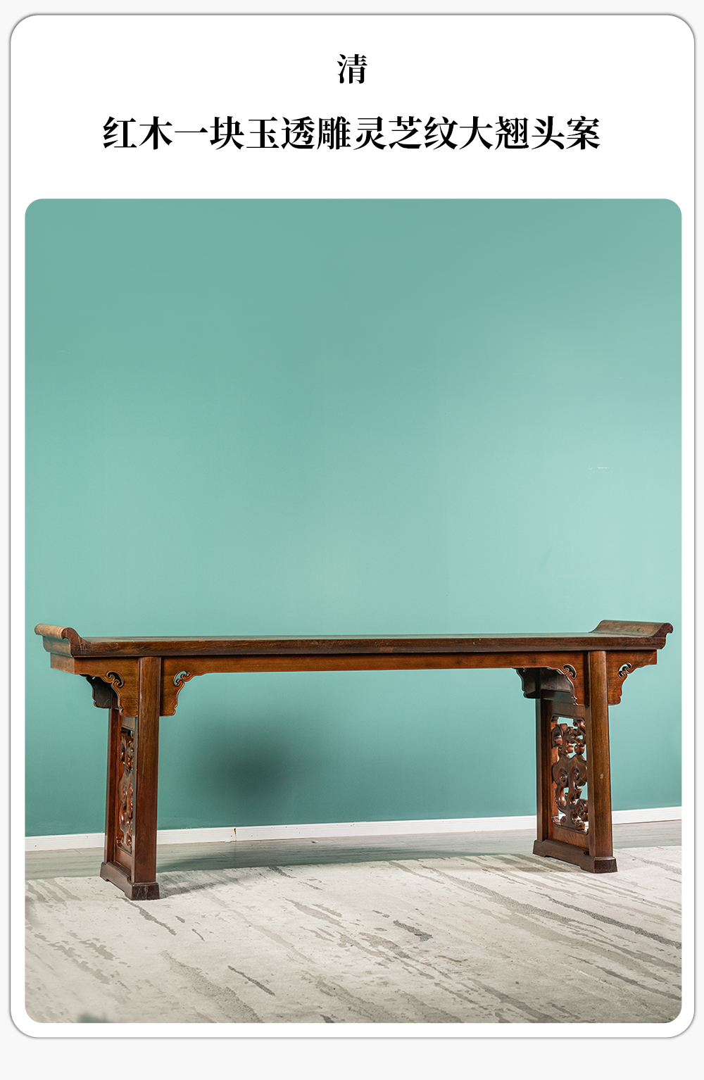 清 红木一块玉透雕灵芝纹大翘头案