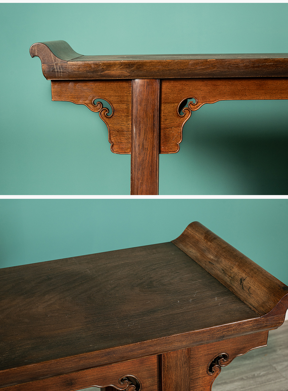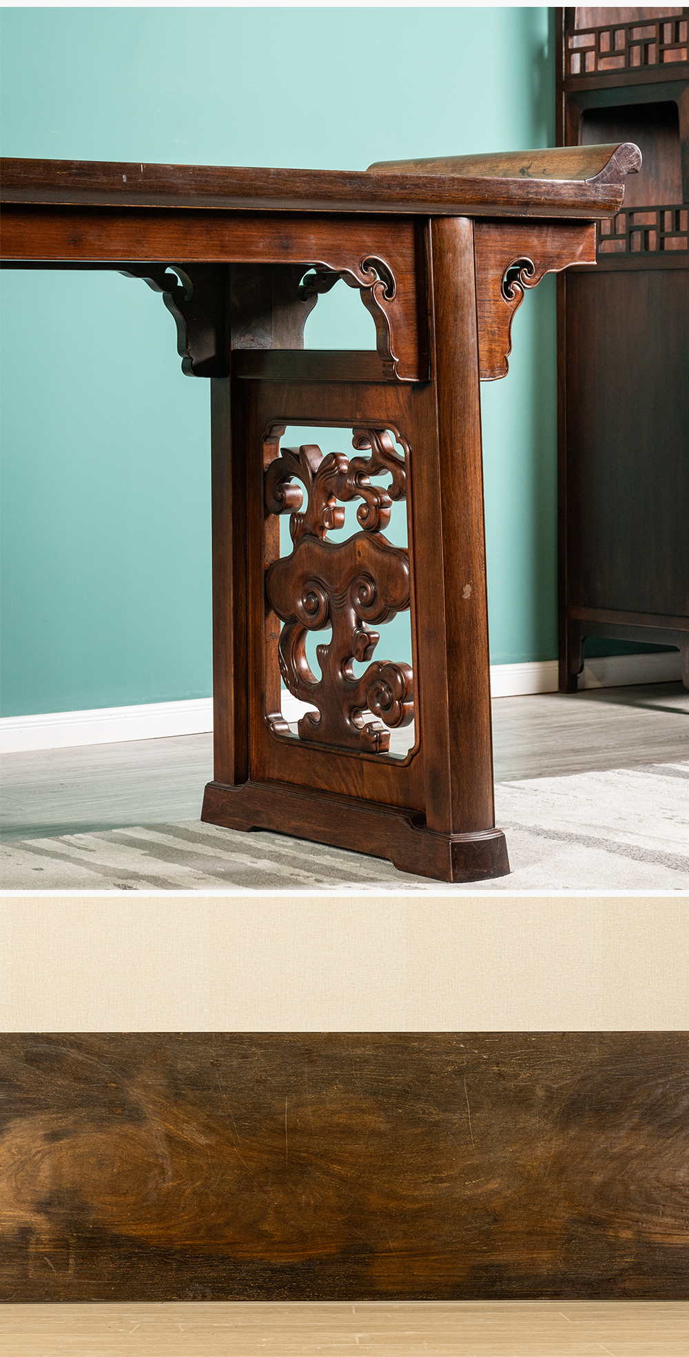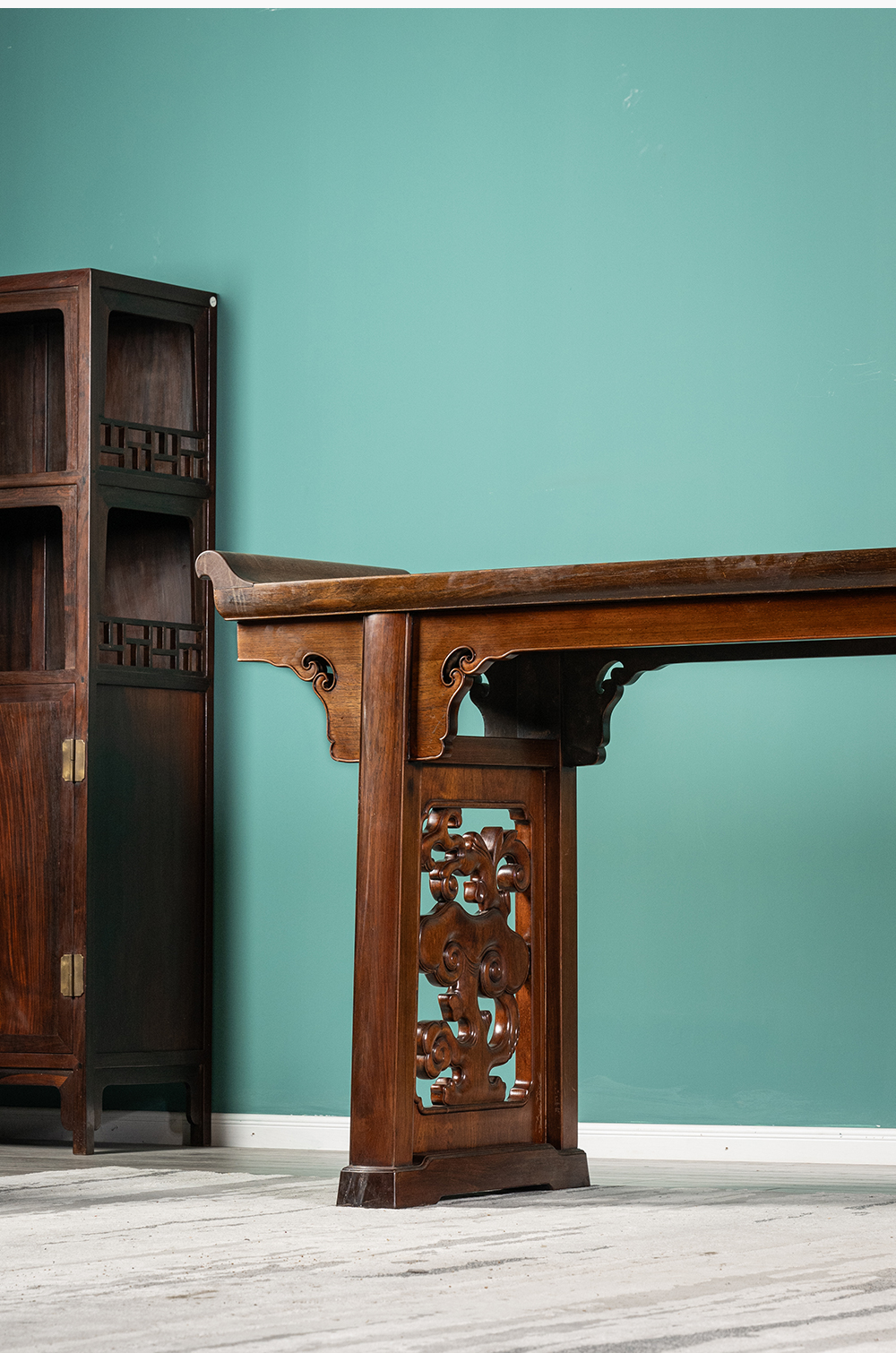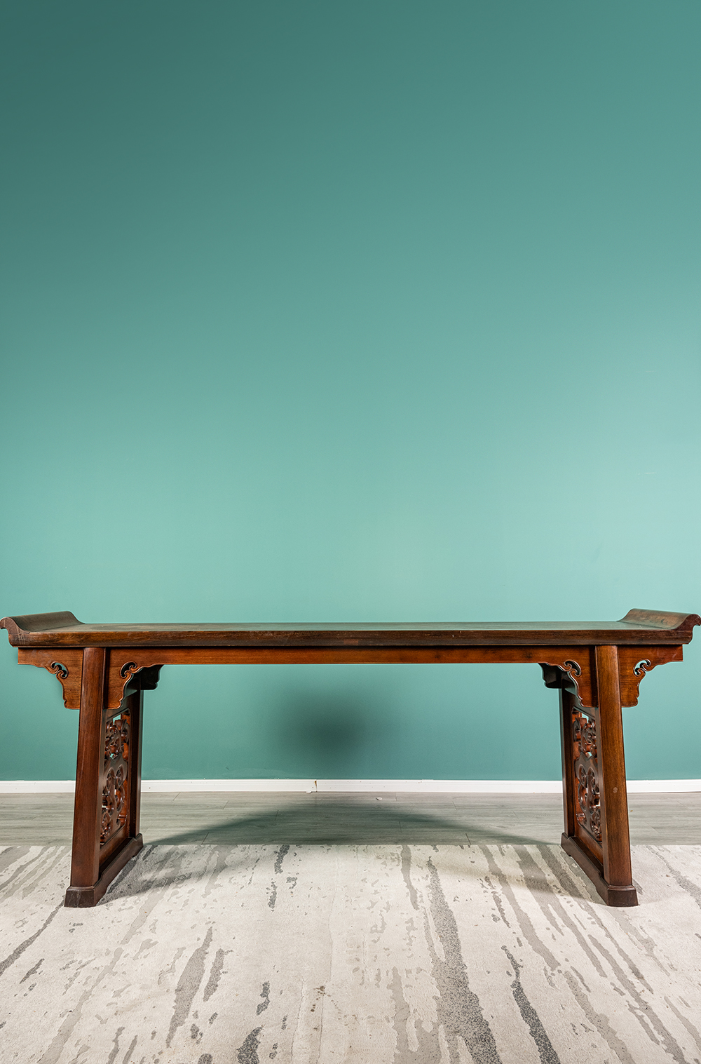 清 红木一块玉透雕灵芝纹大翘头案