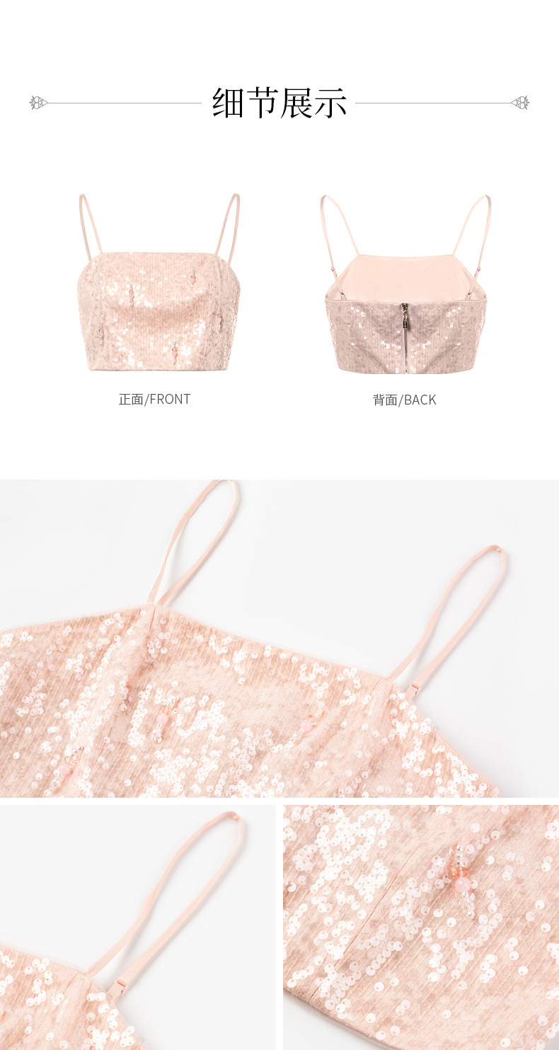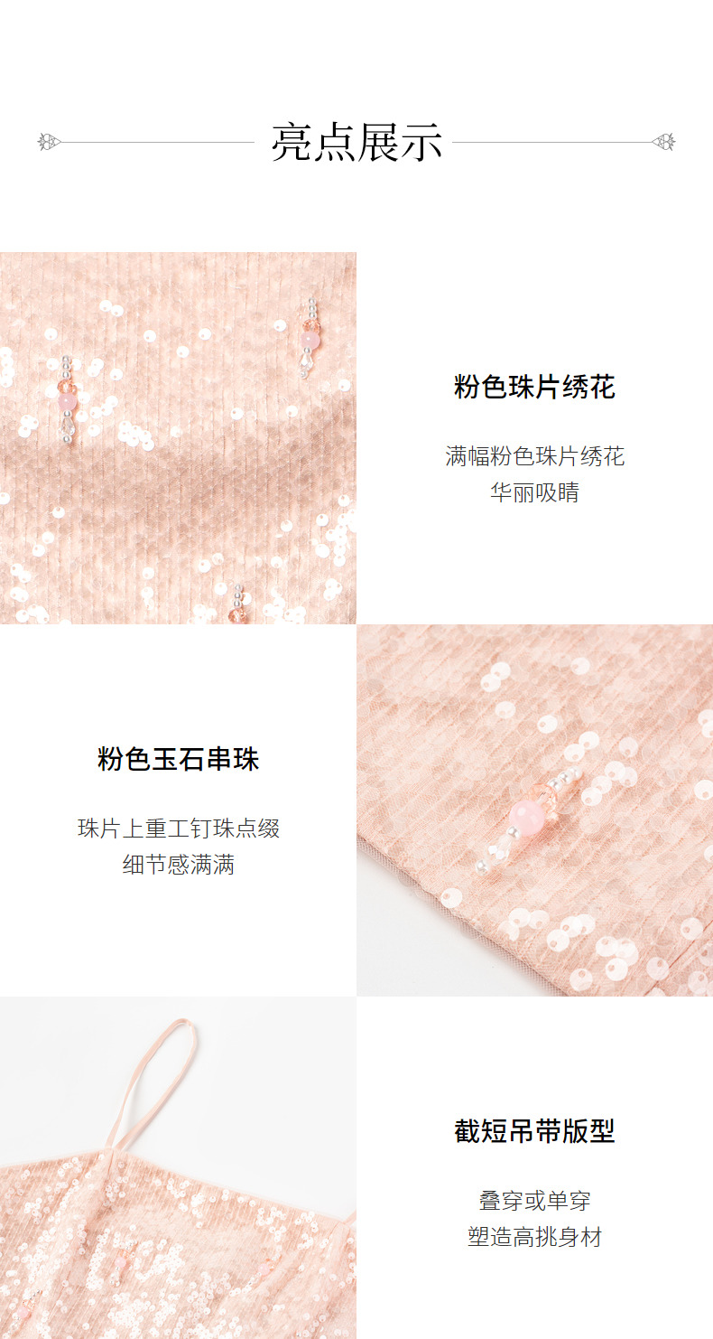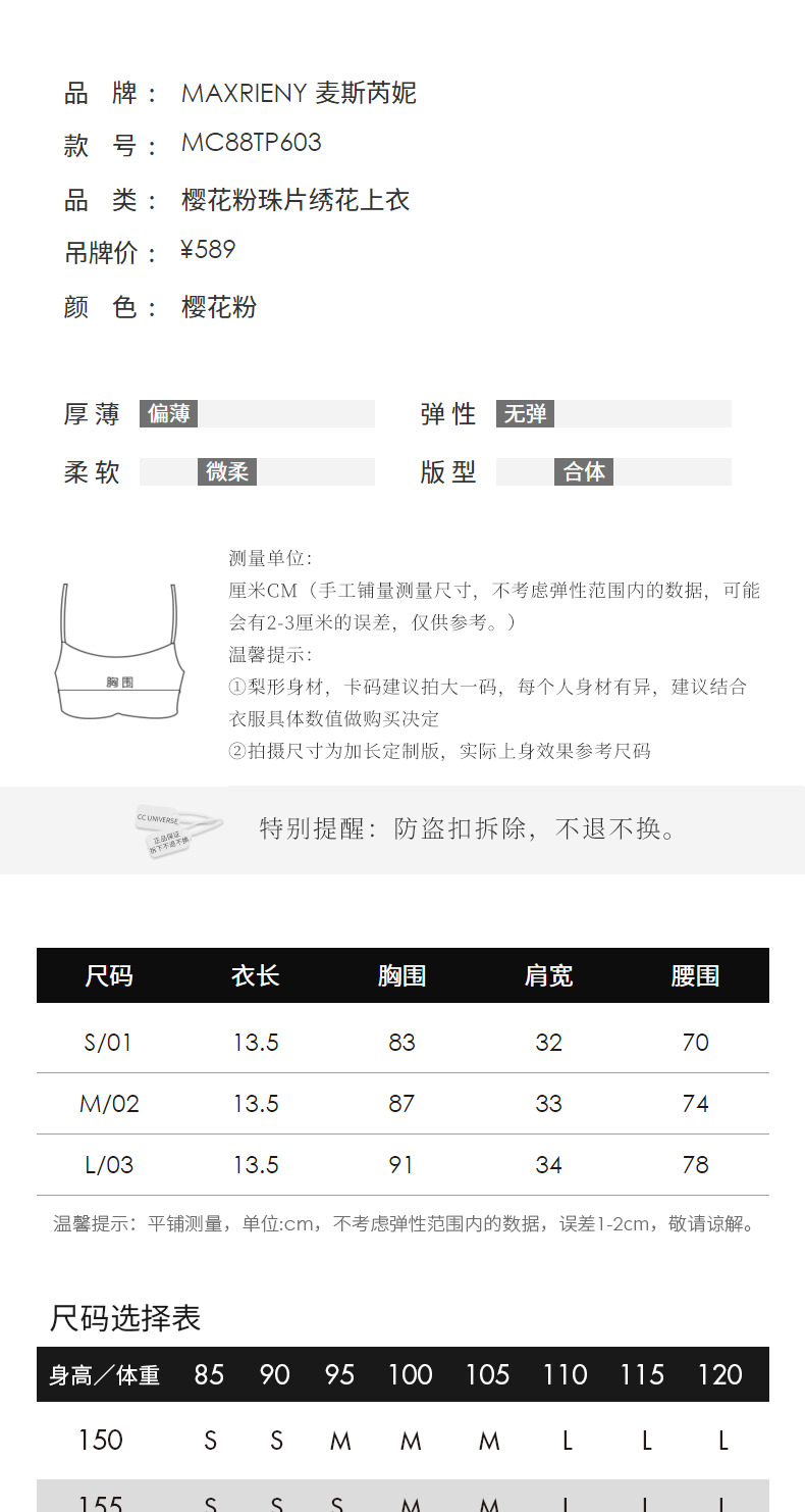 【商场同款】MAXRIENY奢华樱花粉珠片绣花吊带blingbling小背心(货号:MC88TP603)