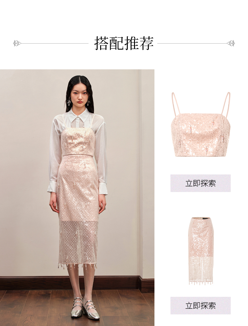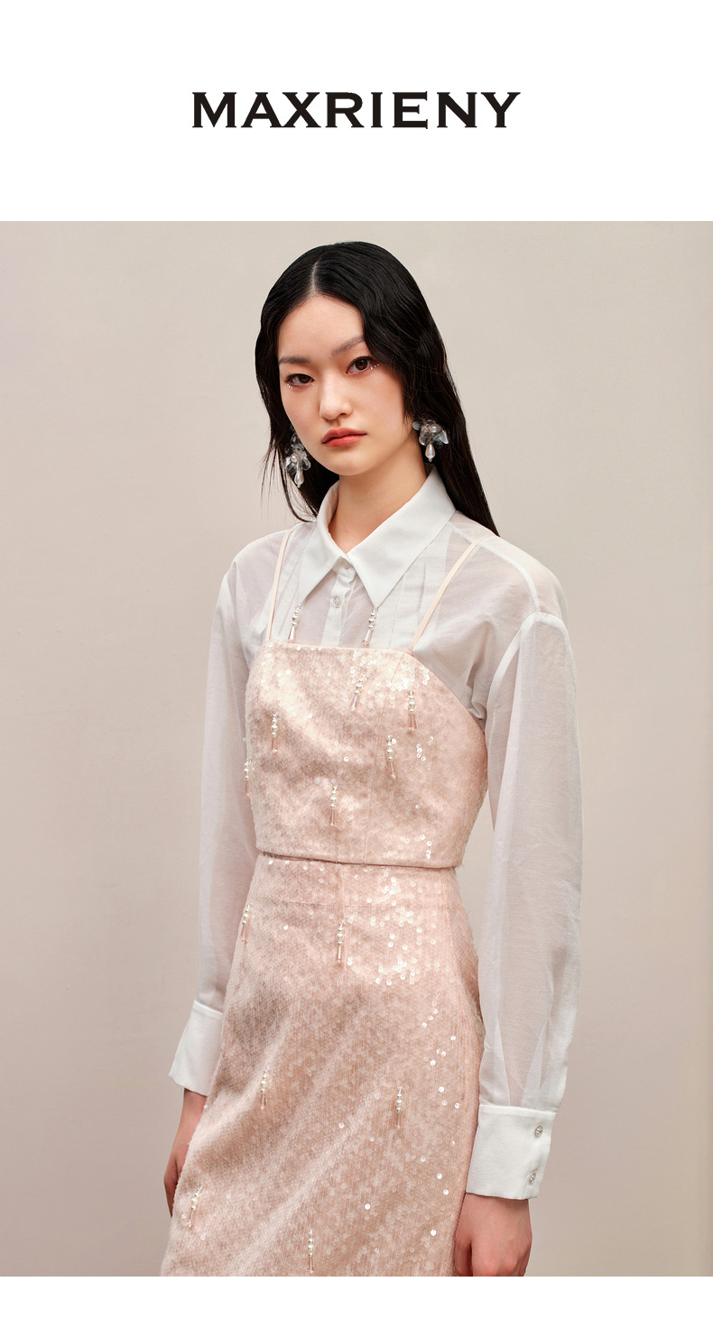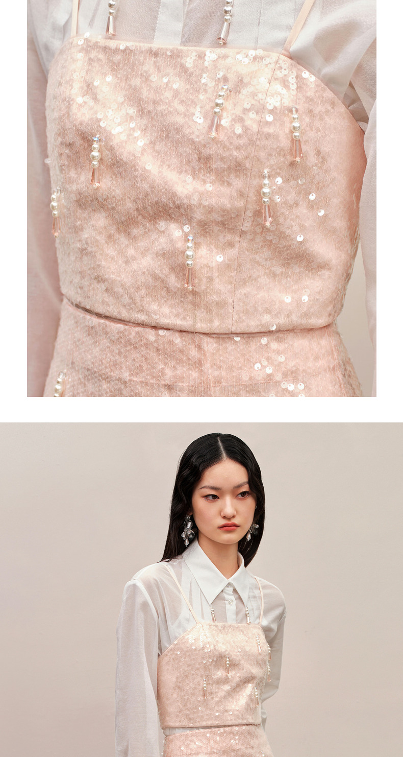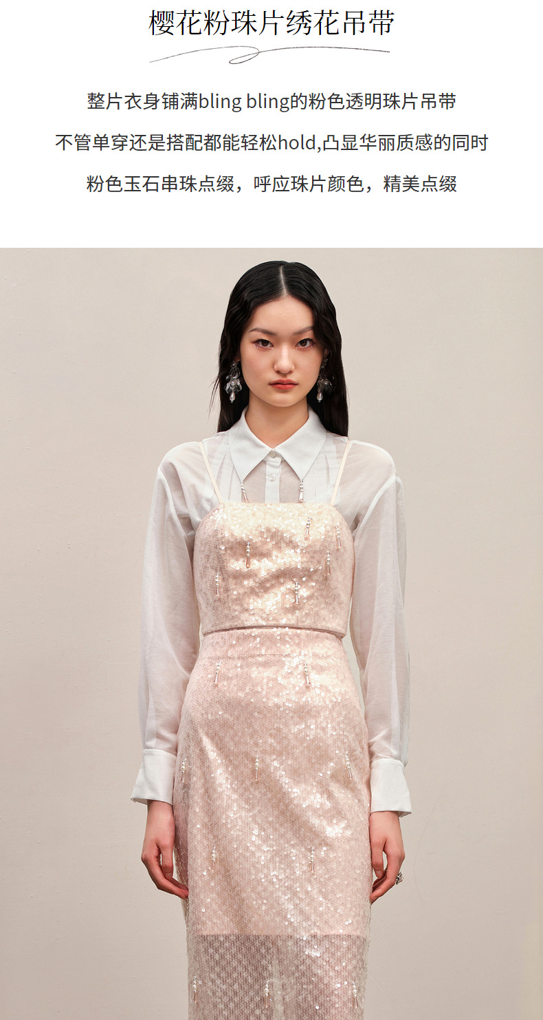 【商场同款】MAXRIENY奢华樱花粉珠片绣花吊带blingbling小背心(货号:MC88TP603)