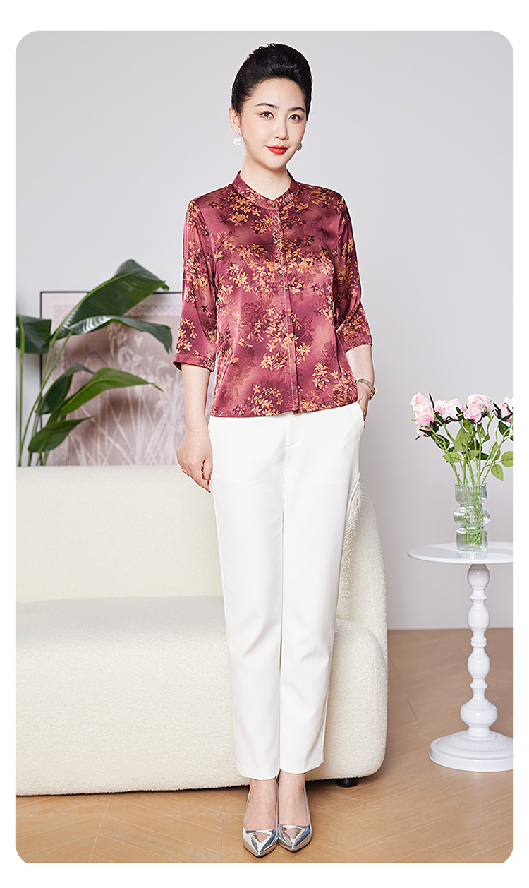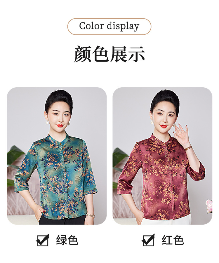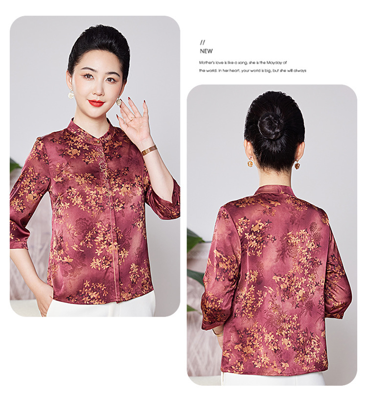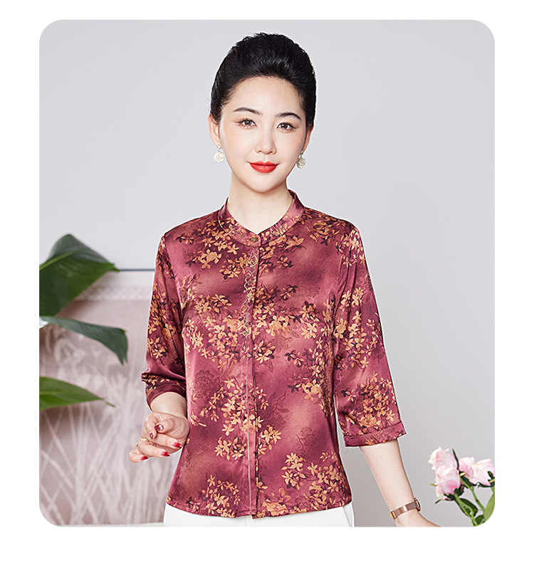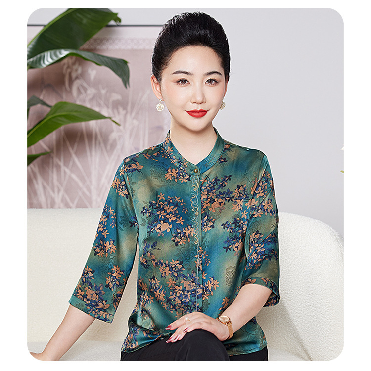 中老年人真丝上衣女洋气妈妈夏装时尚桑蚕丝衬衫喜婆婆婚宴