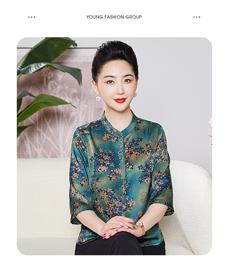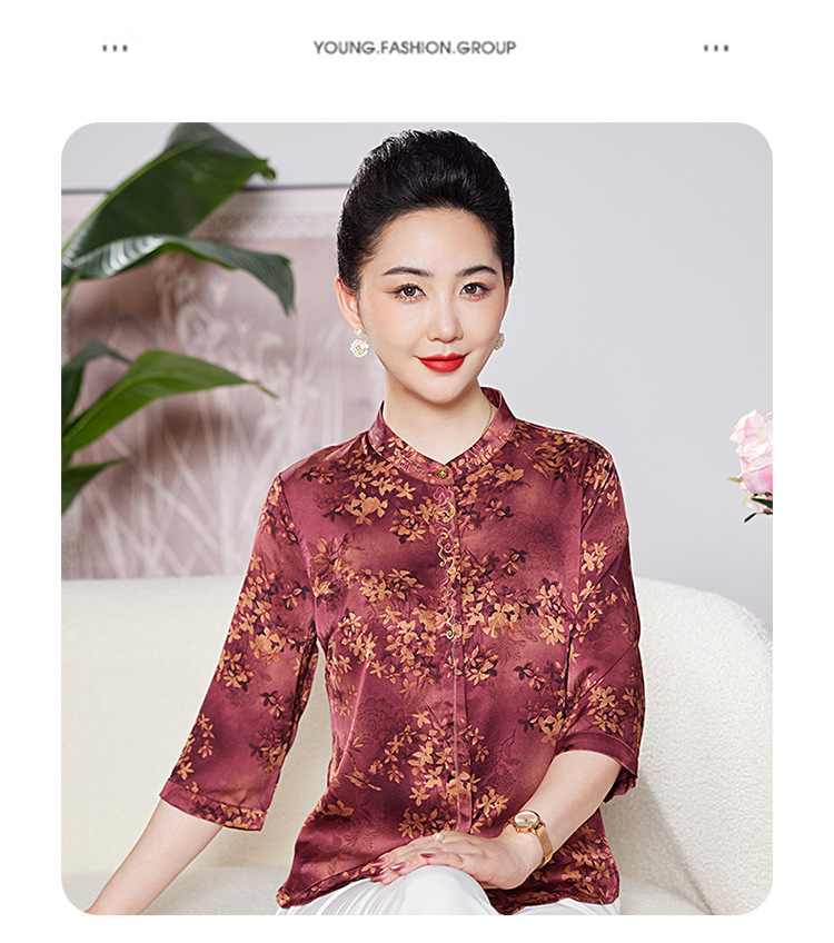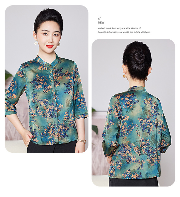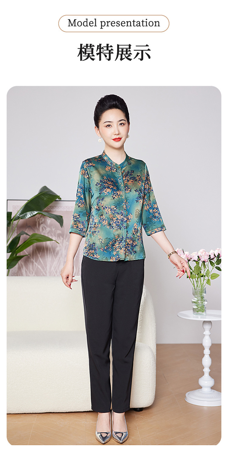 中老年人真丝上衣女洋气妈妈夏装时尚桑蚕丝衬衫喜婆婆婚宴