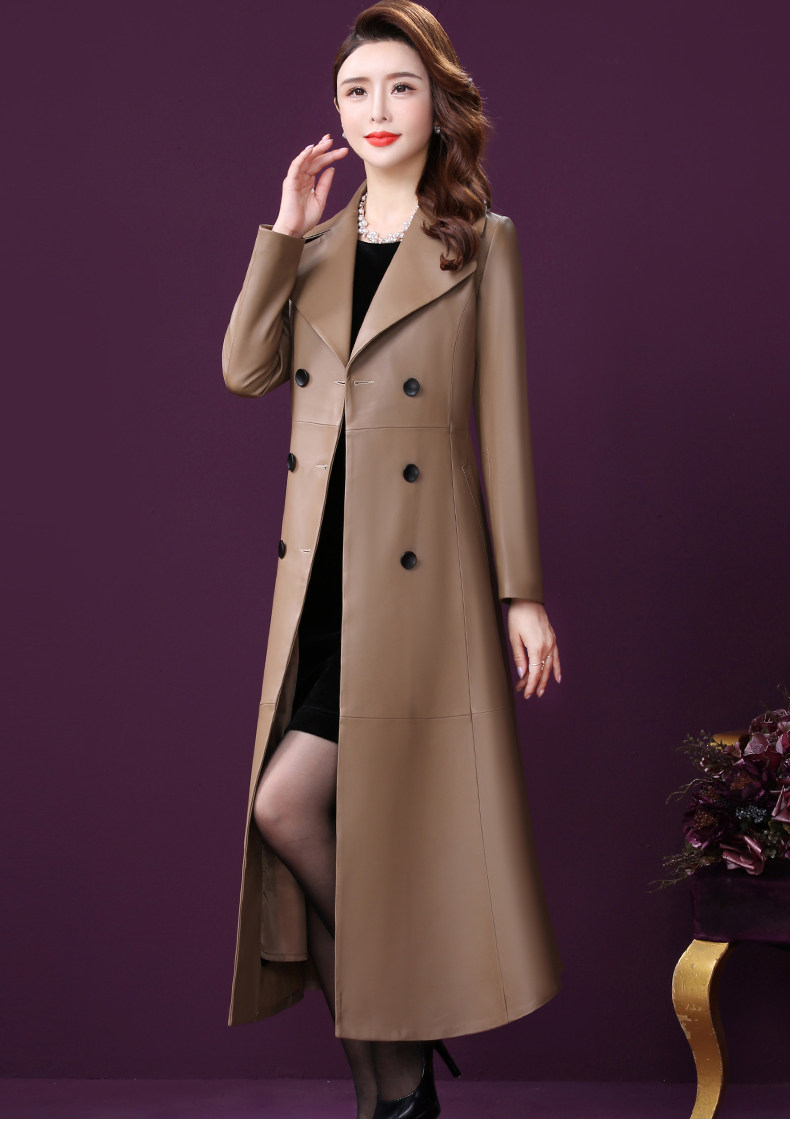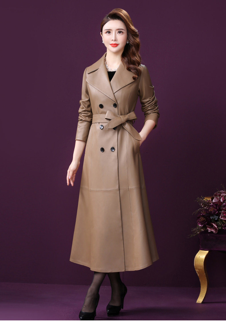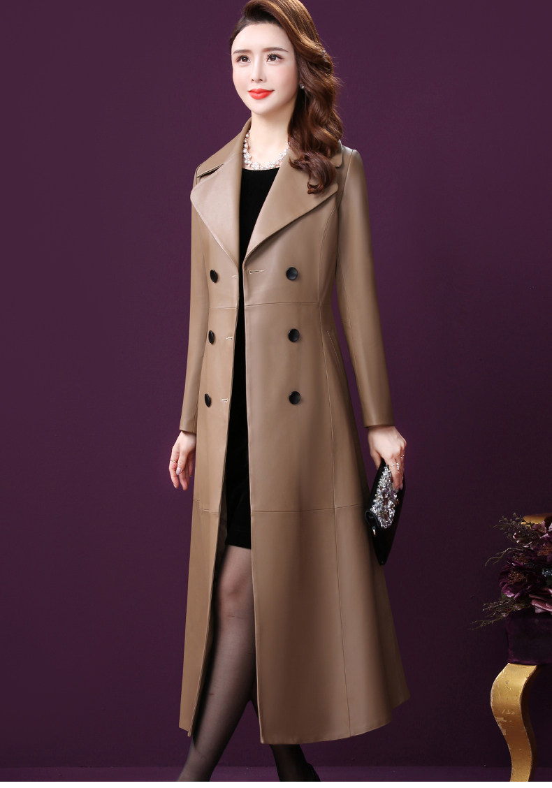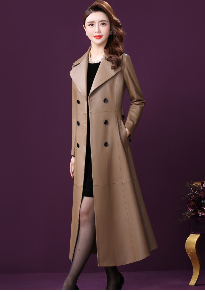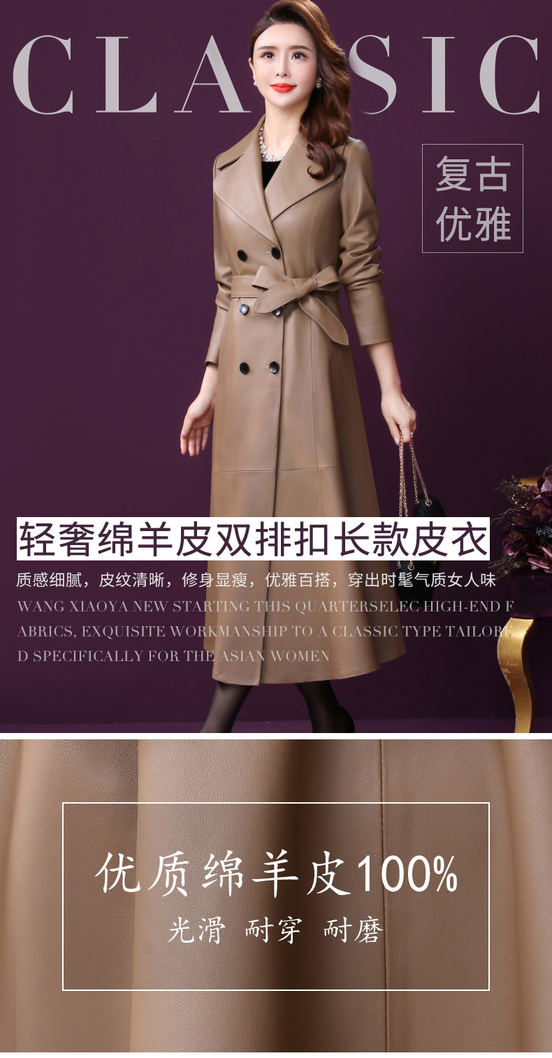 WXY-W-CT-2092-2X海宁真皮外套秋冬女2020新款绵羊皮气质修身英伦风长款大衣