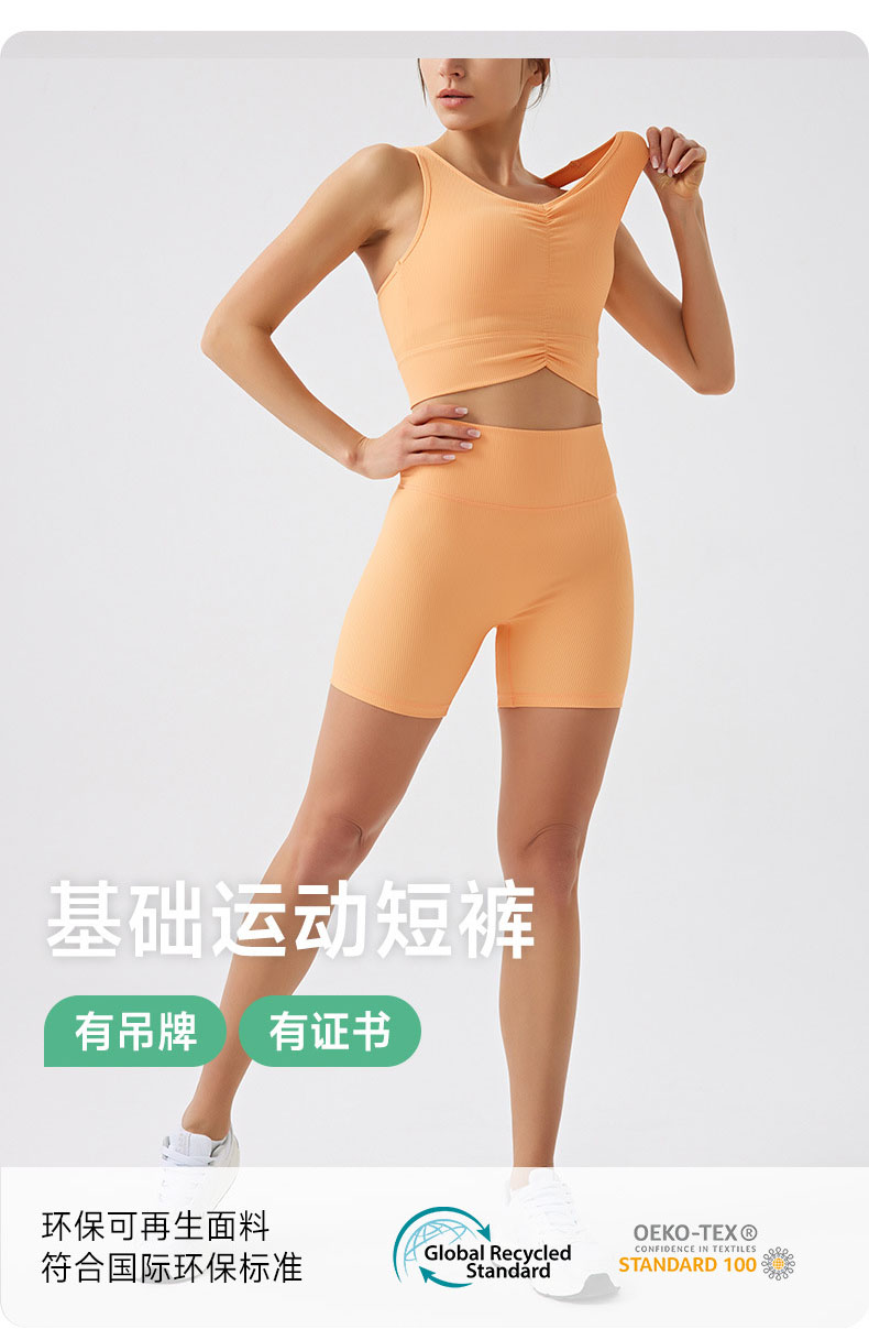 跃牌【Hingdo星道】系列 环保罗纹四分瑜伽短裤高腰提臀无缝健身裤JK2511S01