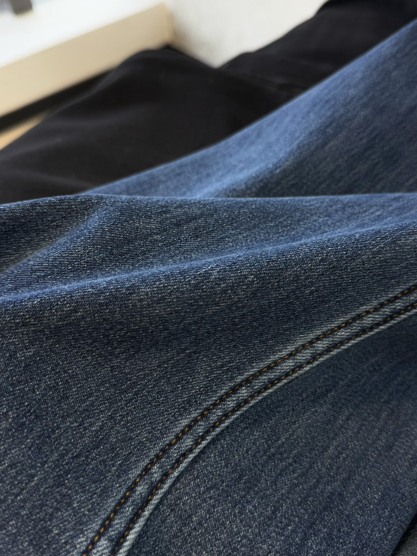 后腰的双口袋立体剪裁设计,不仅视觉上有修饰臀型的效果,让臀部线条更显挺翘,缝线也十分工整,针脚细密均匀,边缘没有毛躁感,实用性与美观性兼具