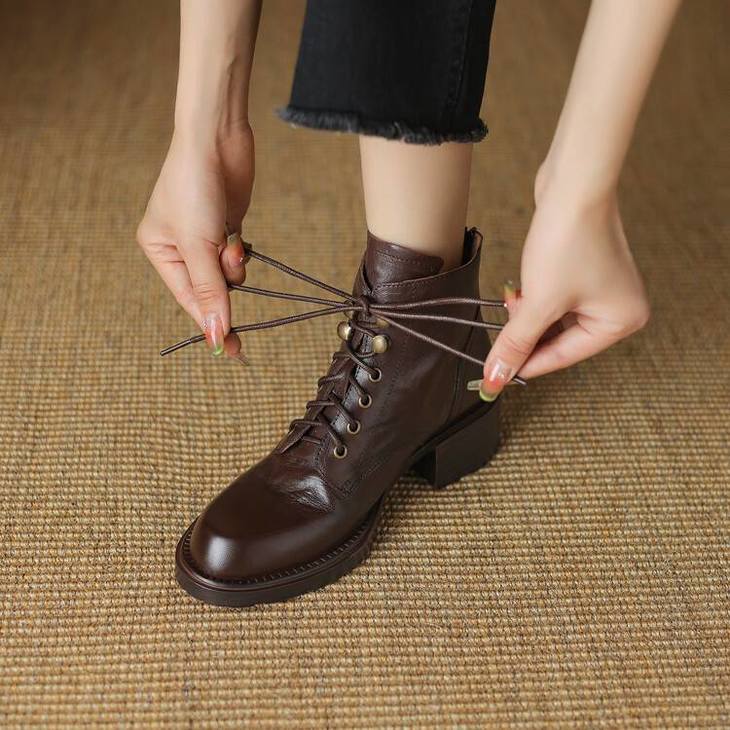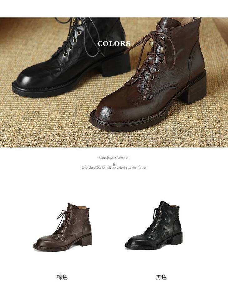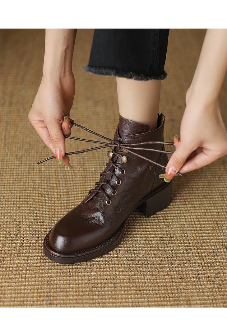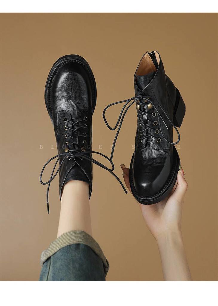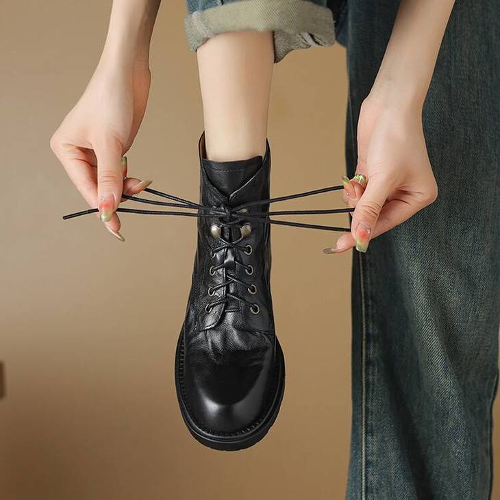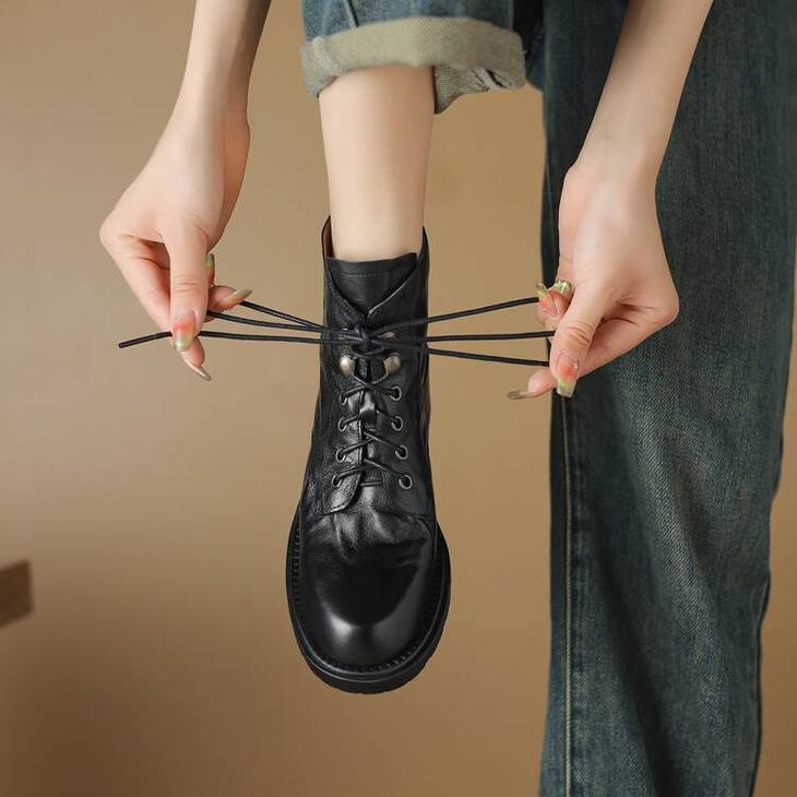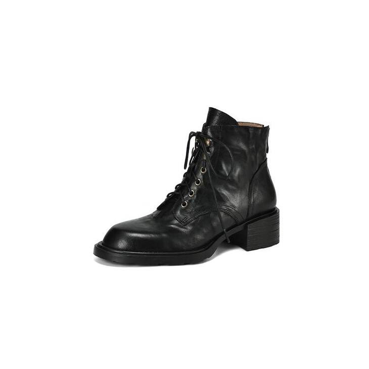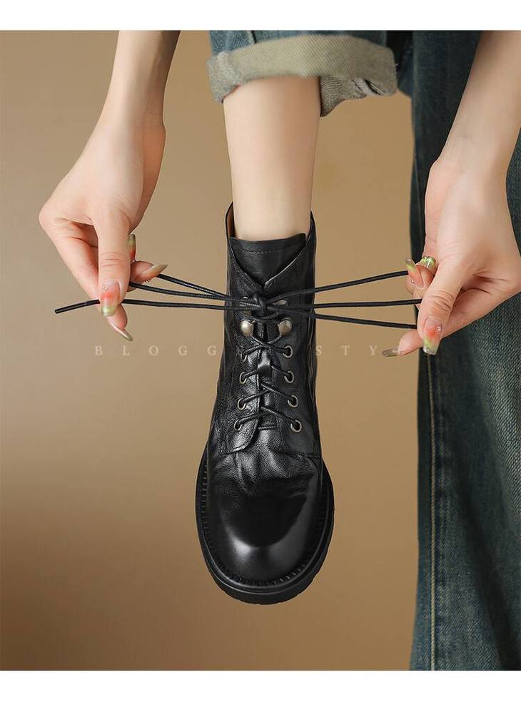 【预售5天】手抓纹羊皮褶皱质感系带休闲风马丁靴秋冬季新款学院风时尚短筒靴XS&AC9553