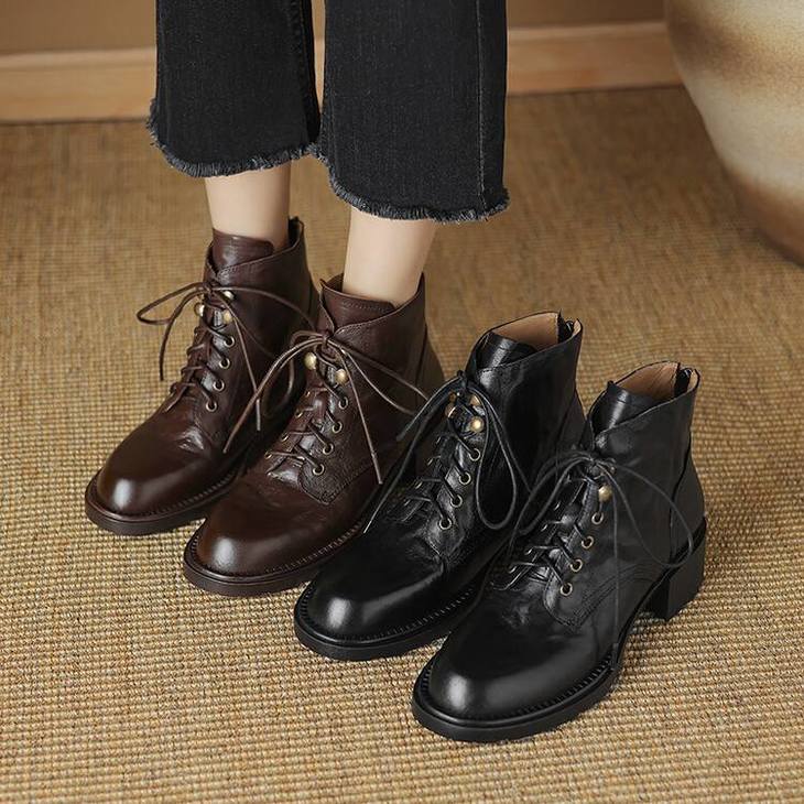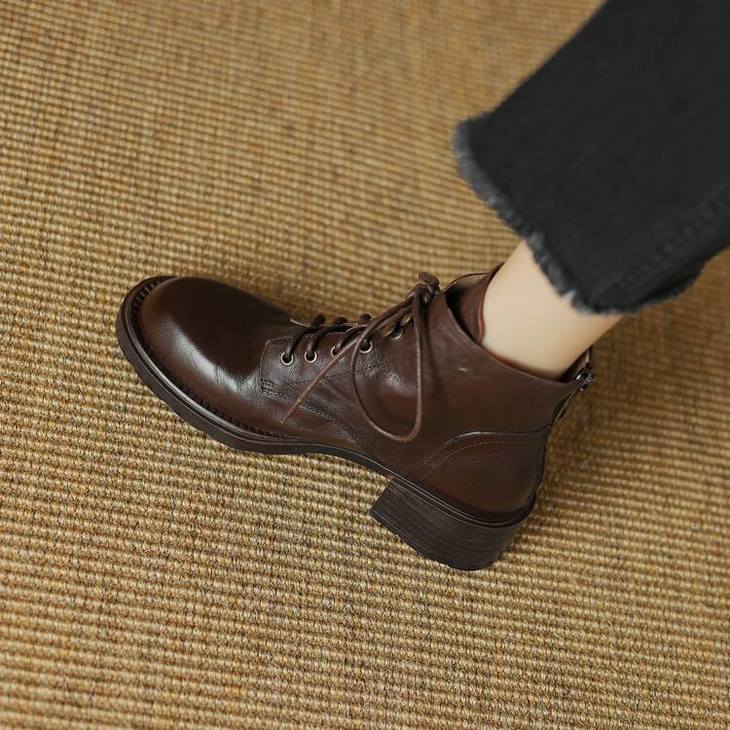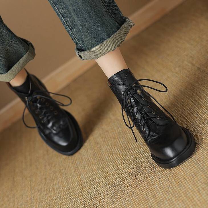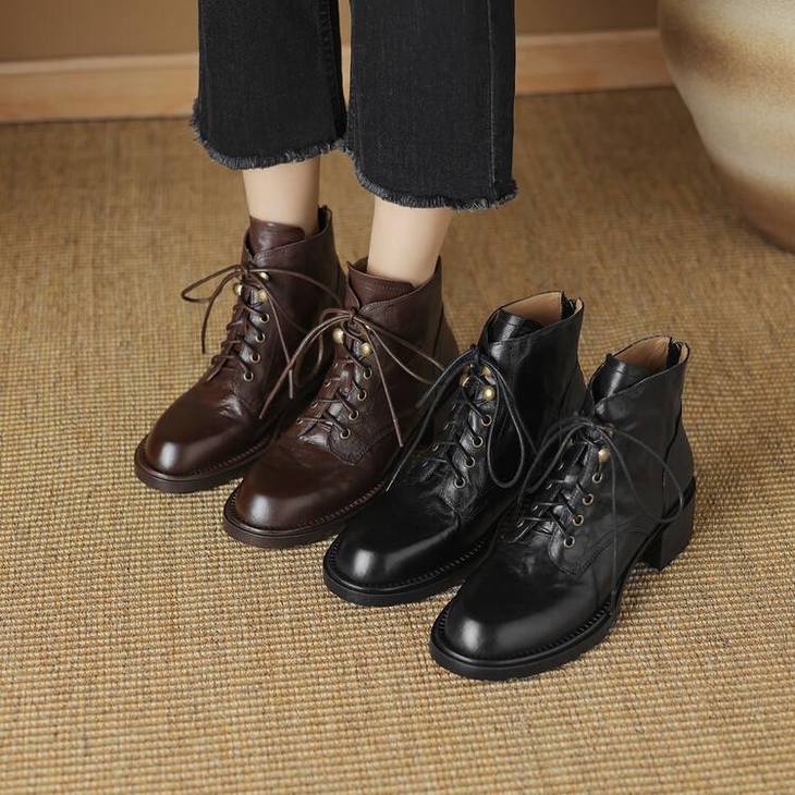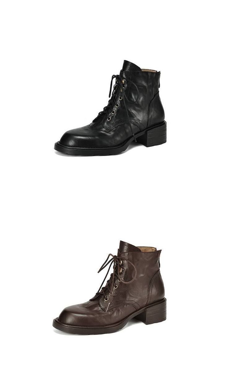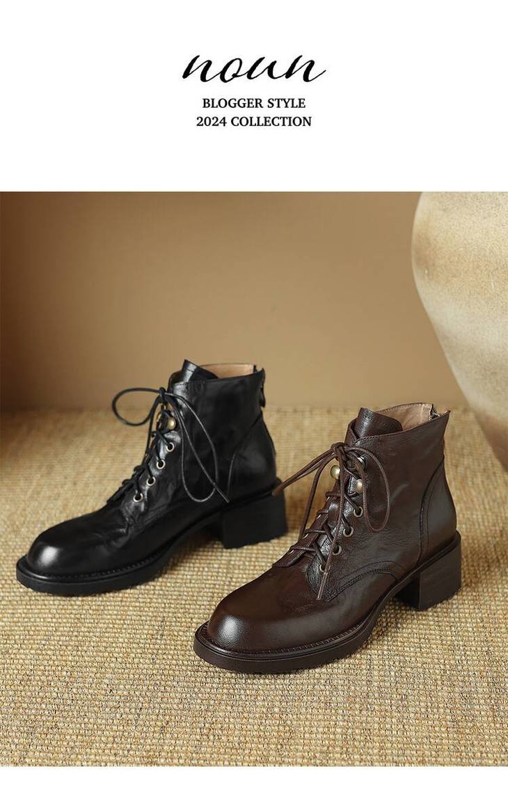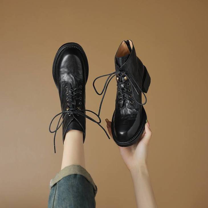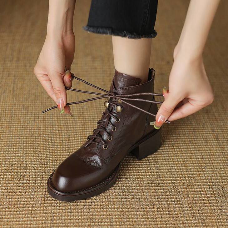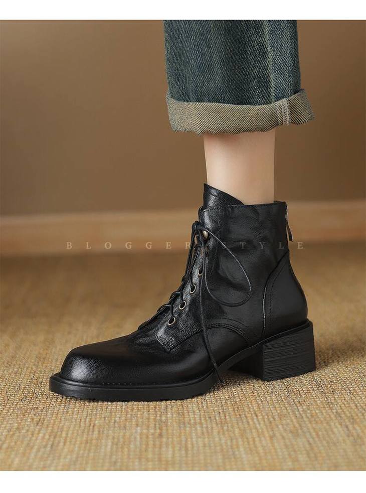 【预售5天】手抓纹羊皮褶皱质感系带休闲风马丁靴秋冬季新款学院风时尚短筒靴XS&AC9553