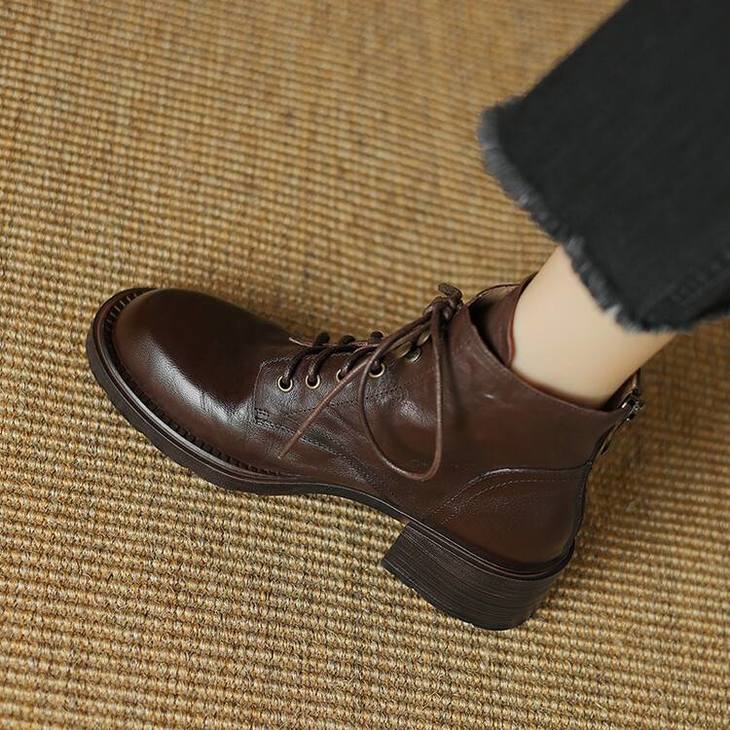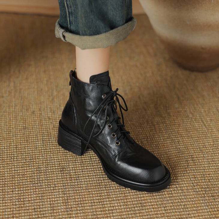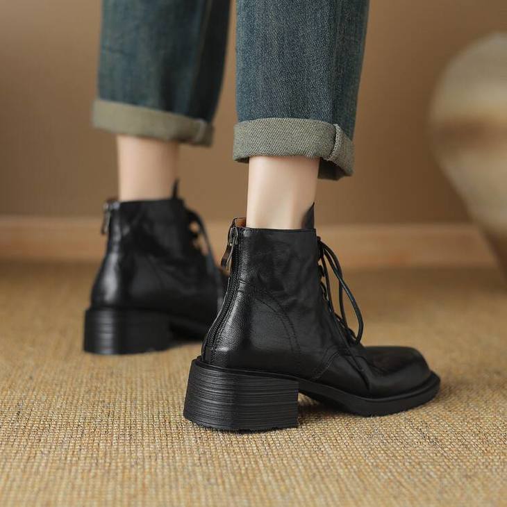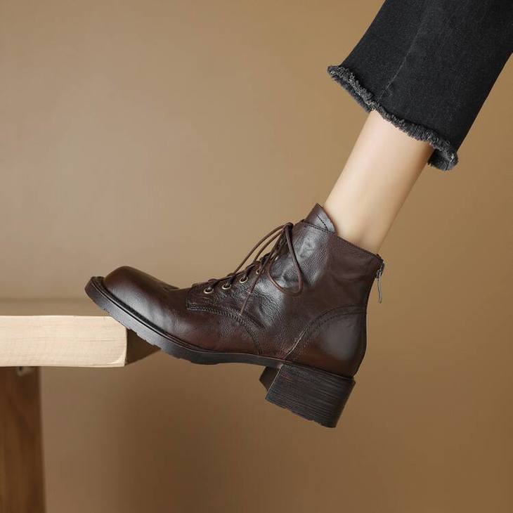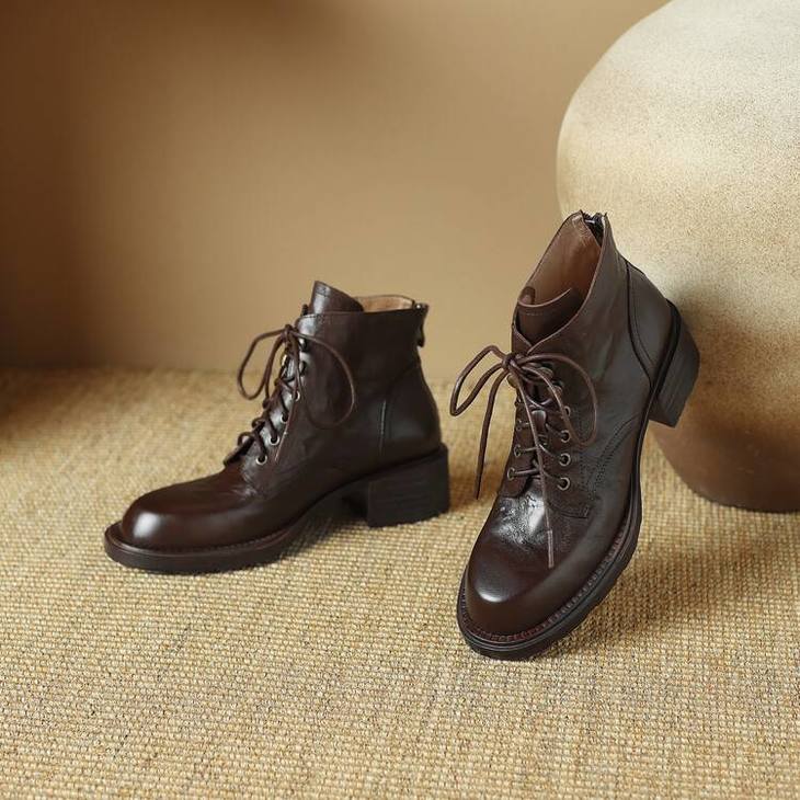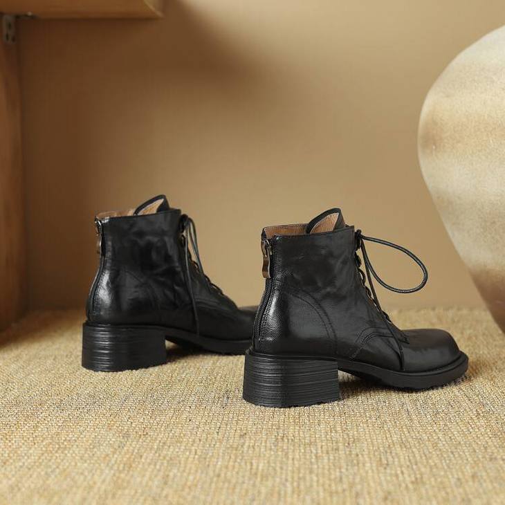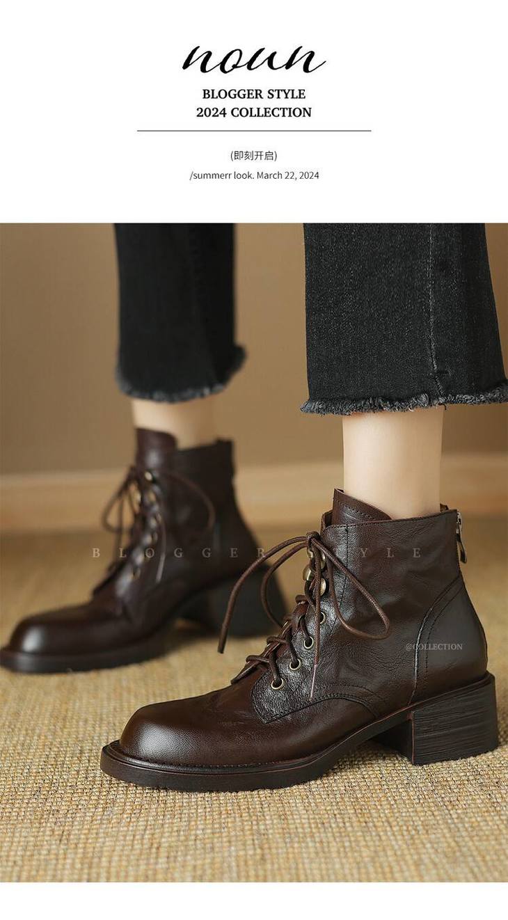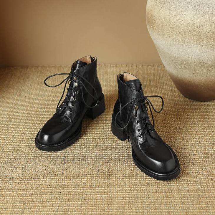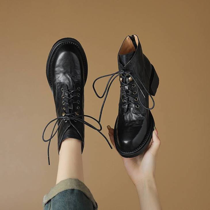 【预售5天】手抓纹羊皮褶皱质感系带休闲风马丁靴秋冬季新款学院风时尚短筒靴XS&AC9553