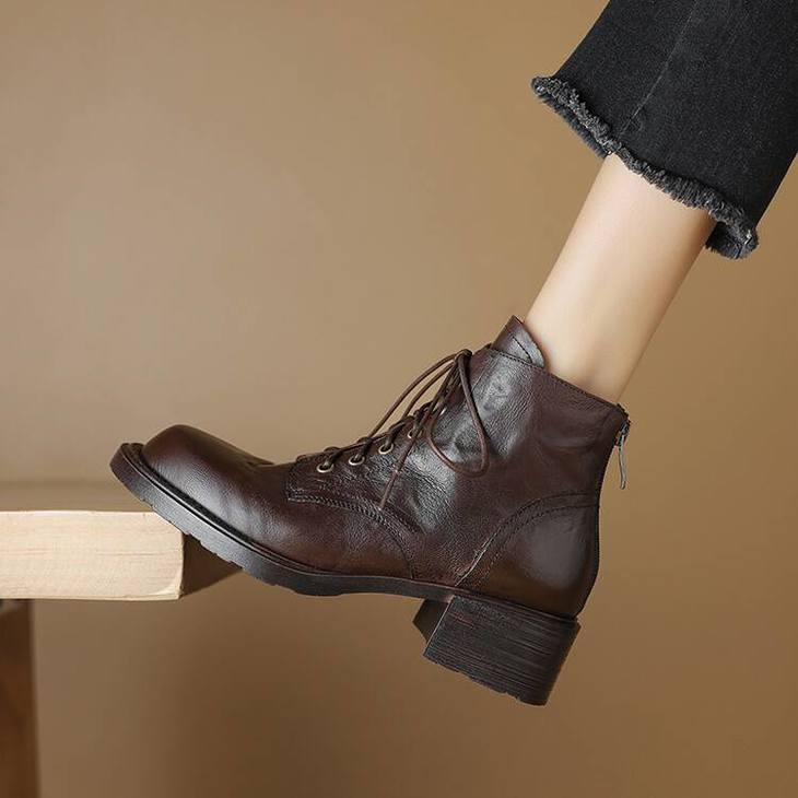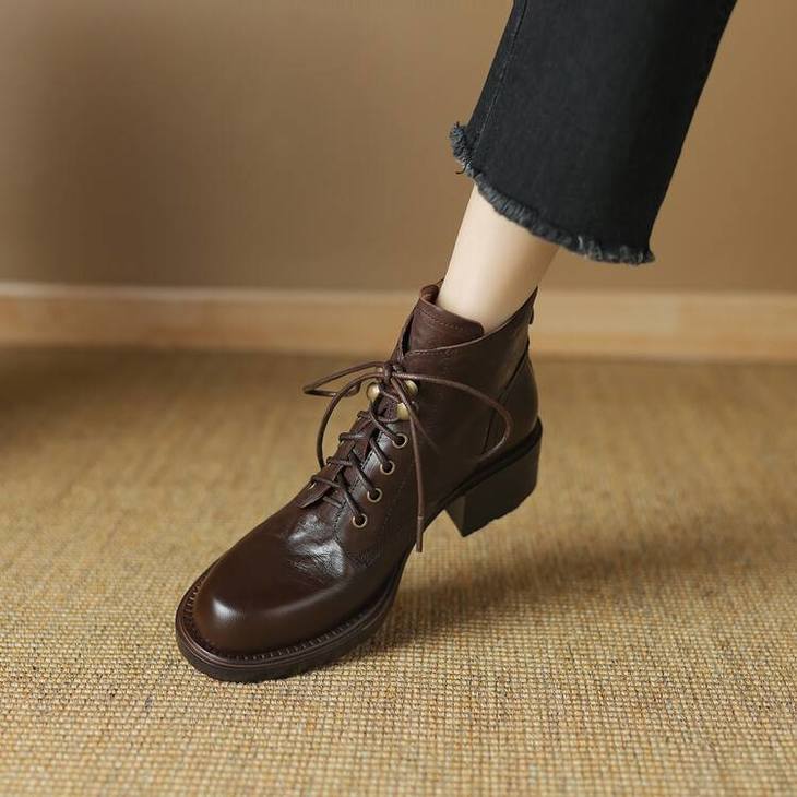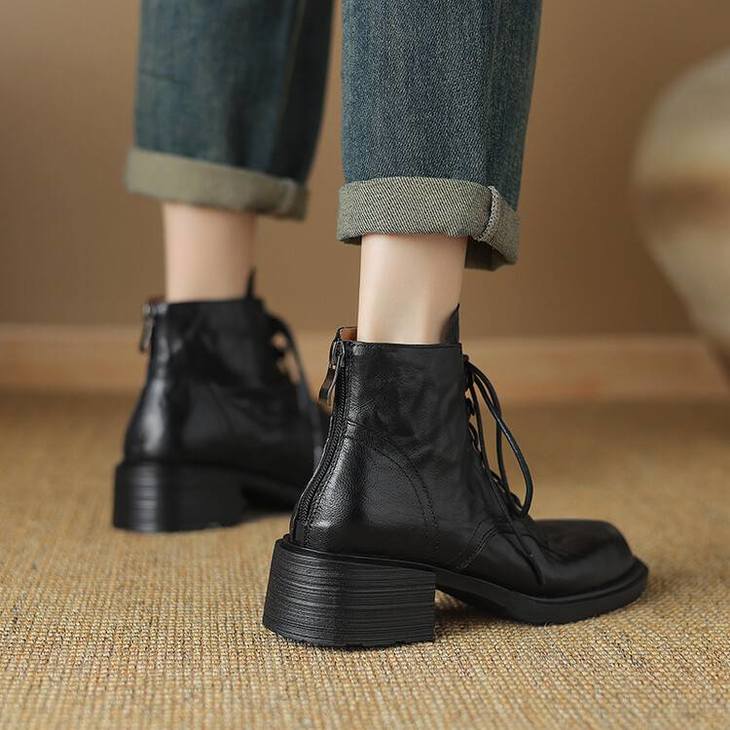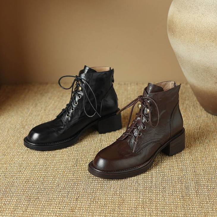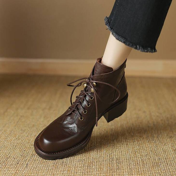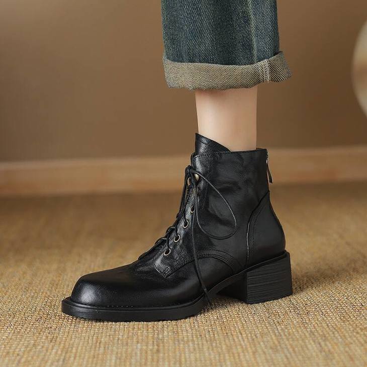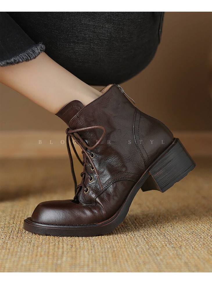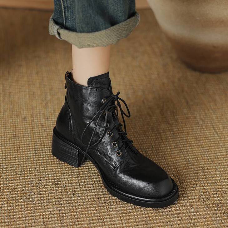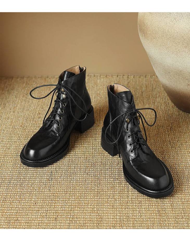 【预售5天】手抓纹羊皮褶皱质感系带休闲风马丁靴秋冬季新款学院风时尚短筒靴XS&AC9553