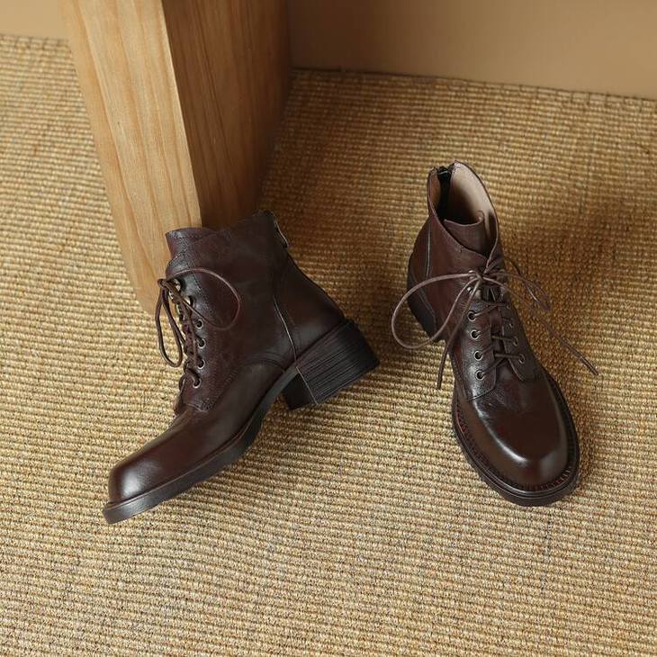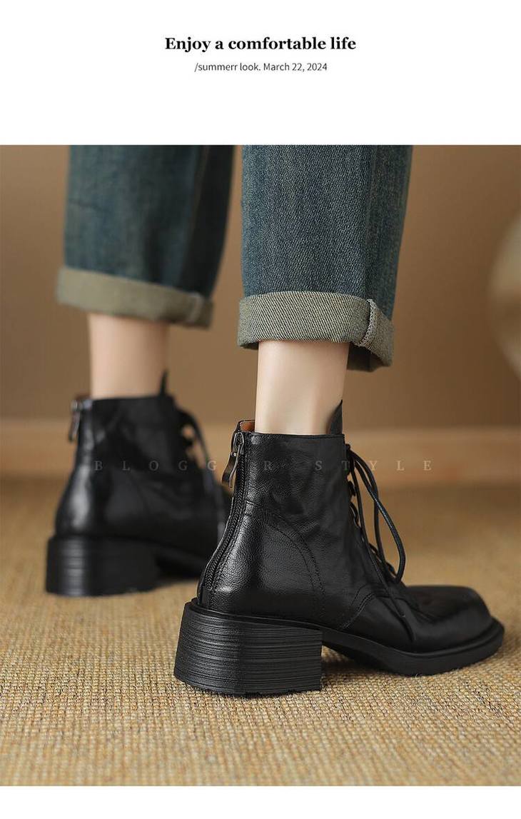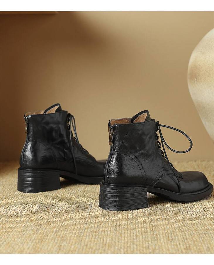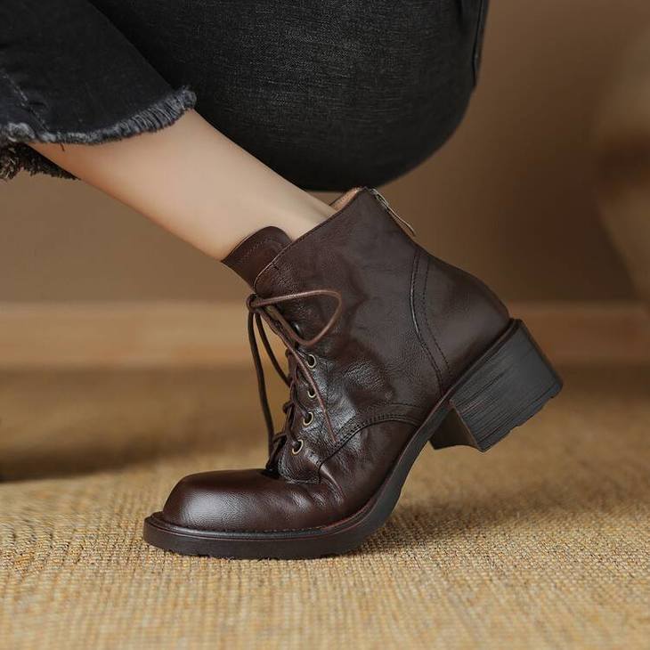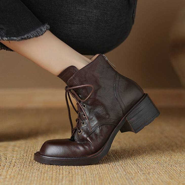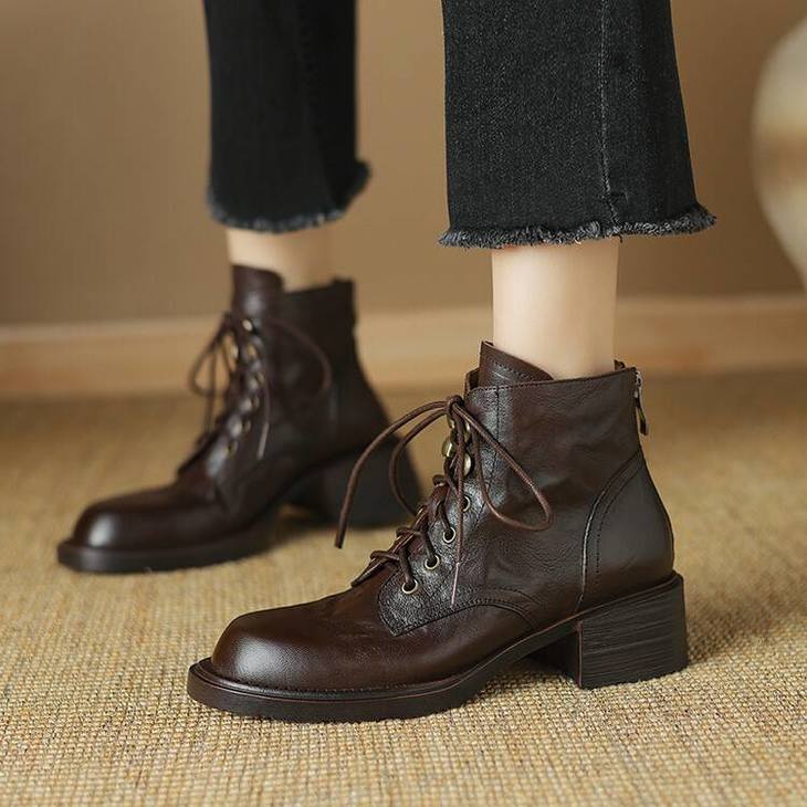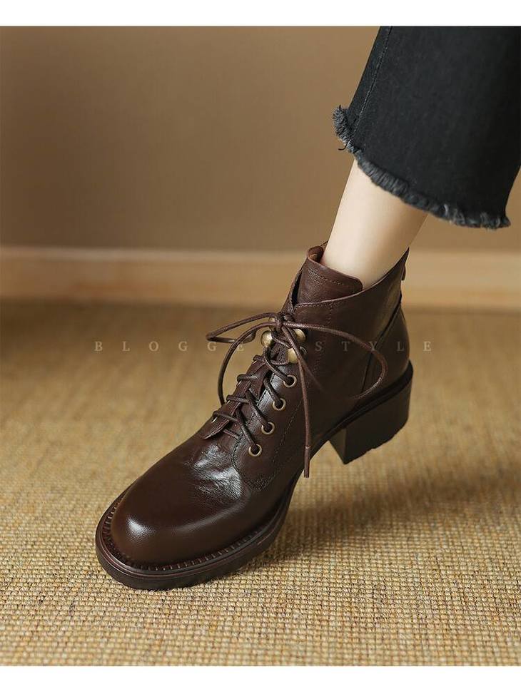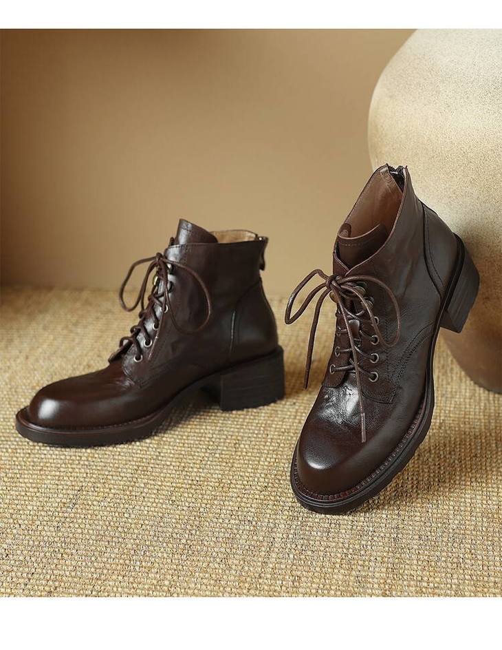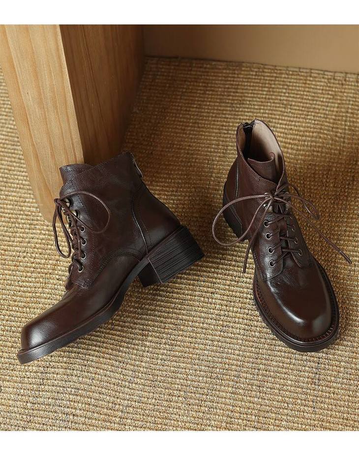 【预售5天】手抓纹羊皮褶皱质感系带休闲风马丁靴秋冬季新款学院风时尚短筒靴XS&AC9553