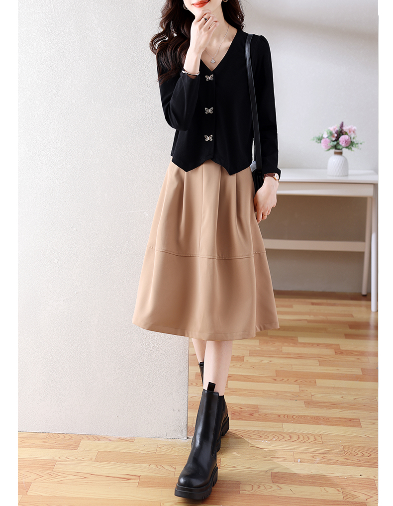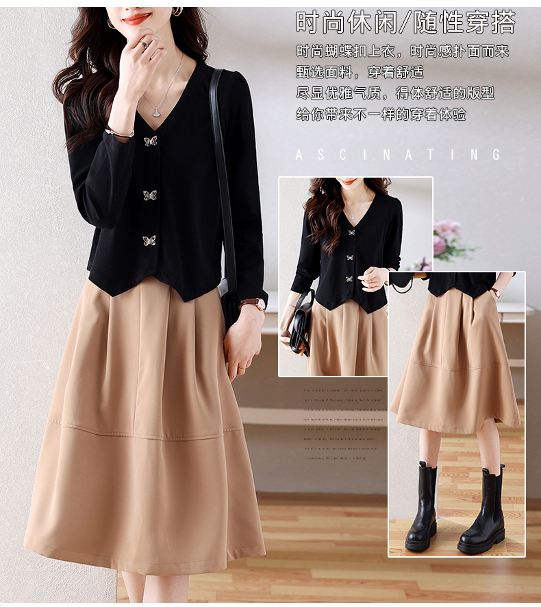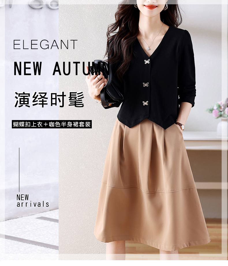 新款别致时尚,设计感通勤两件套装裙 HR-QIANBH628-1