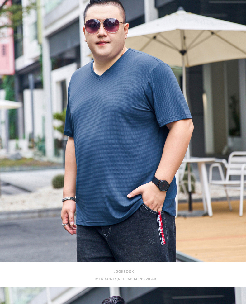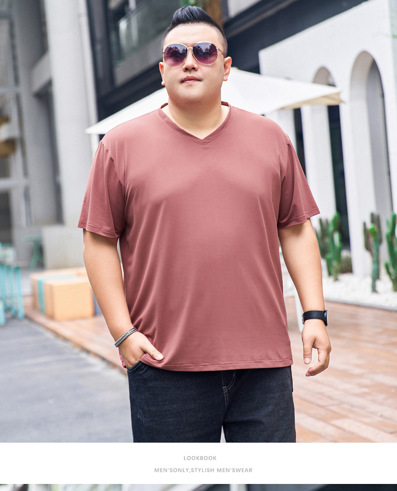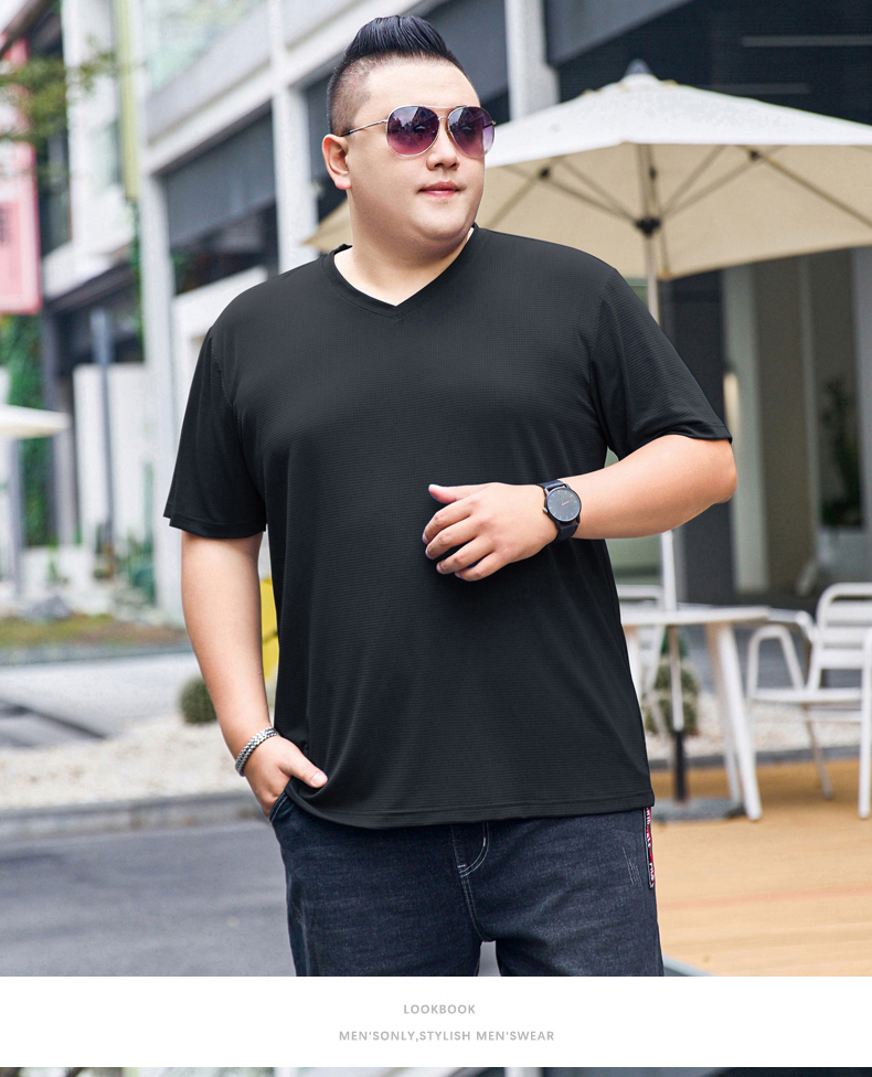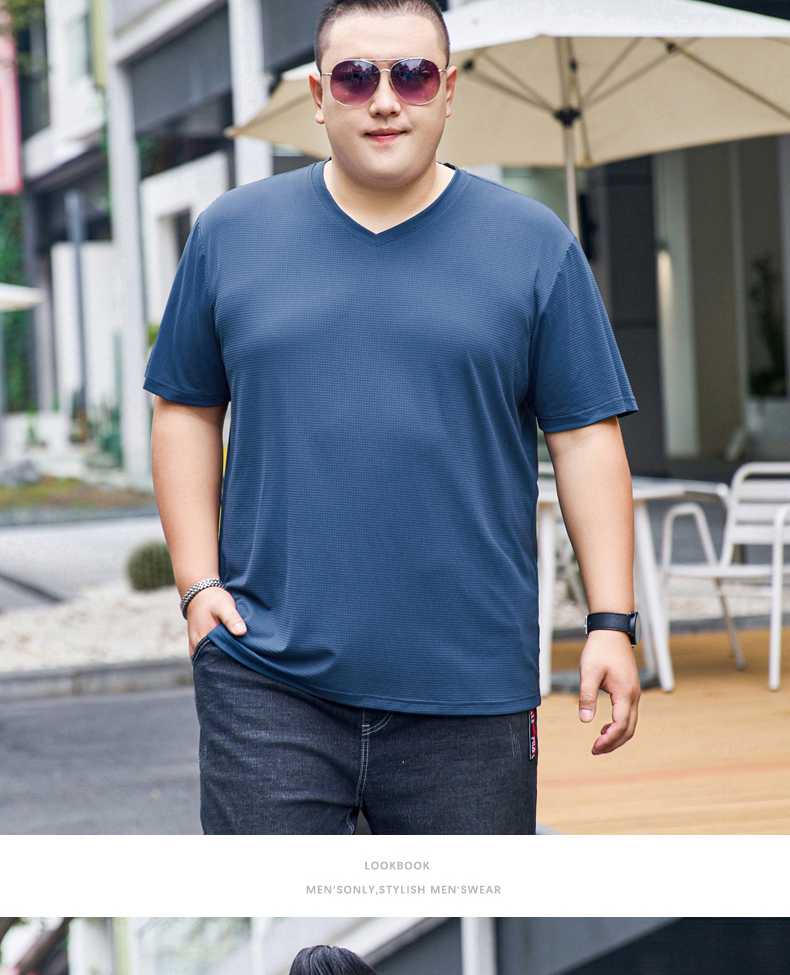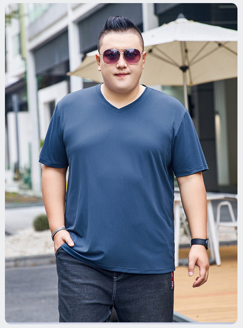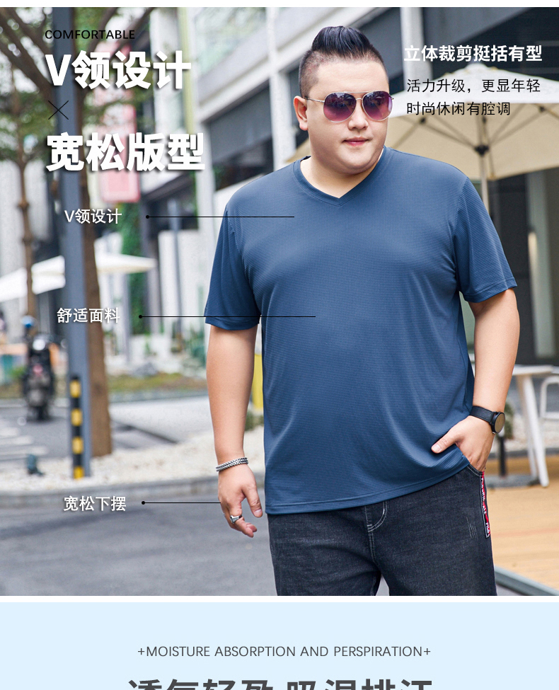 【V领】【冰丝速干】【DCS】大依优型大码V领短袖T恤加肥加大弹力透气宽松休闲男装半袖上衣