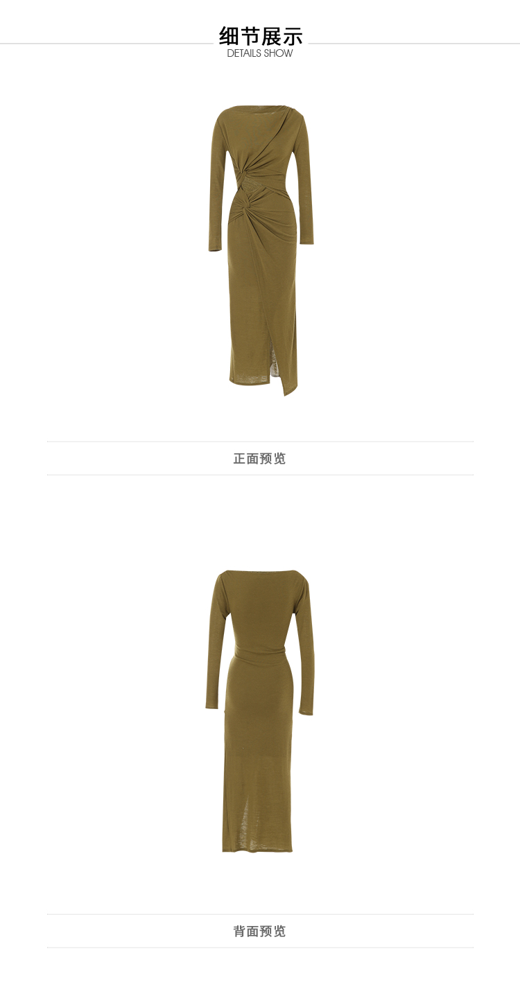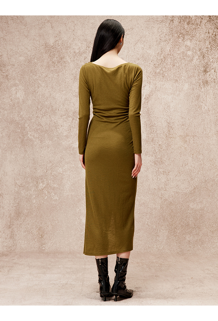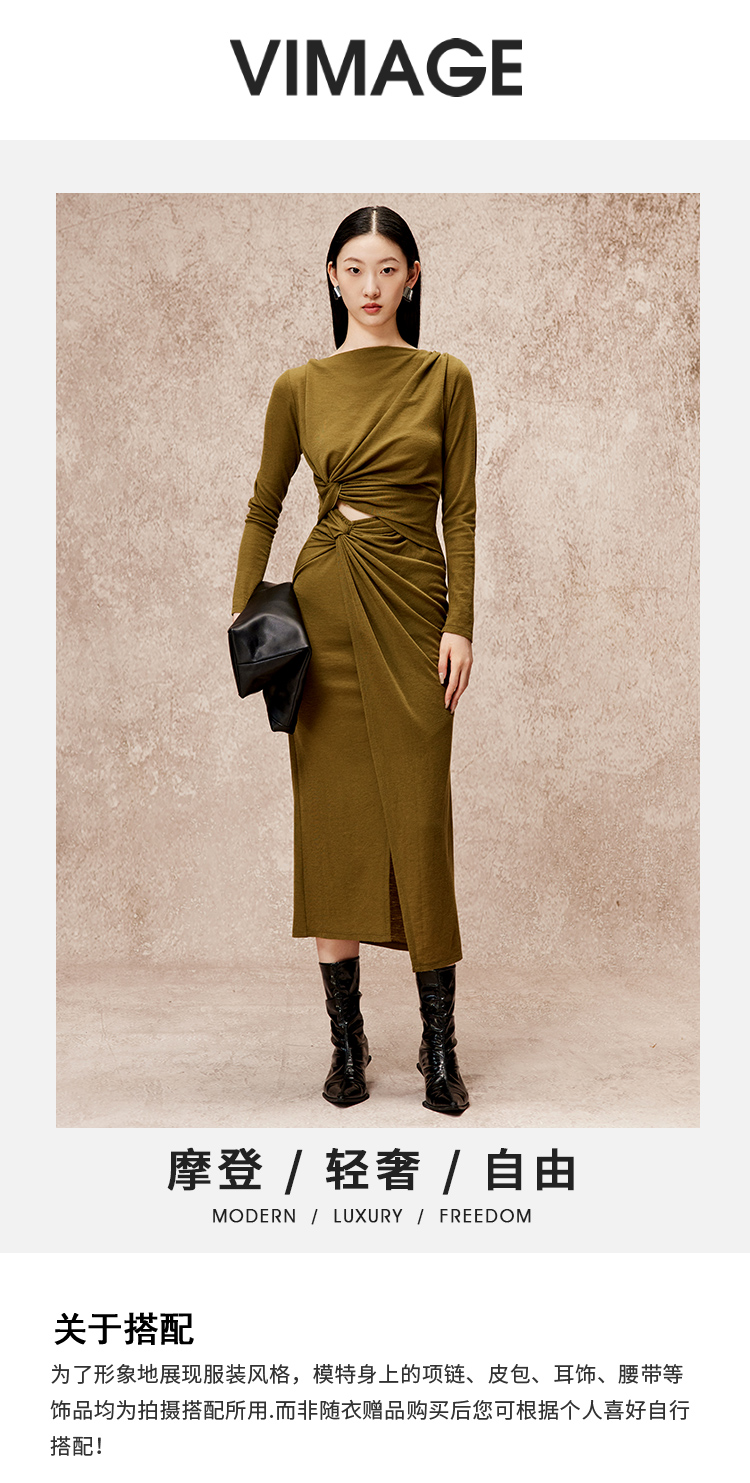 VIMAGE纬漫纪冬季新款高级扭结露腰显瘦100%绵羊毛连衣裙V2207826