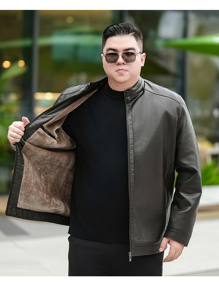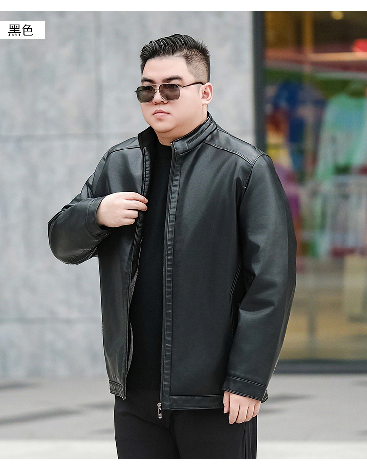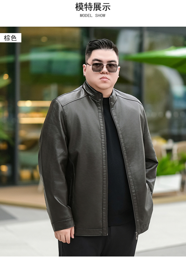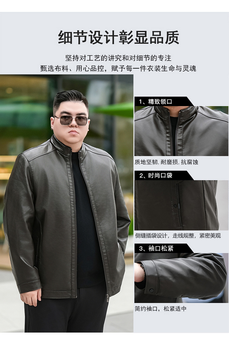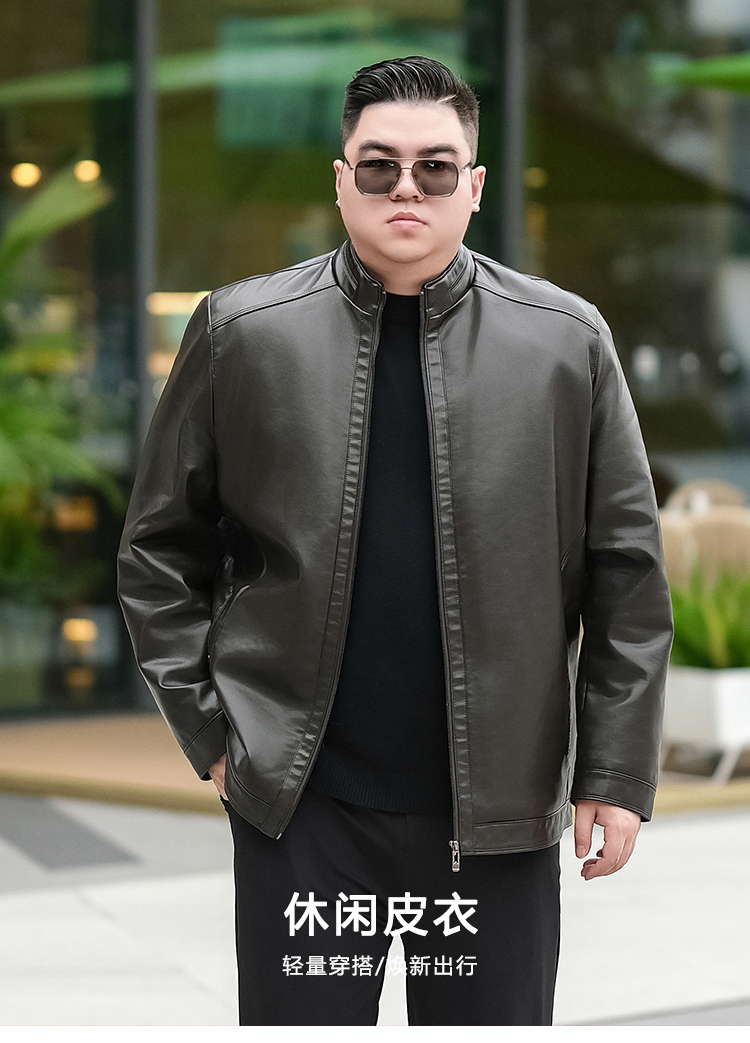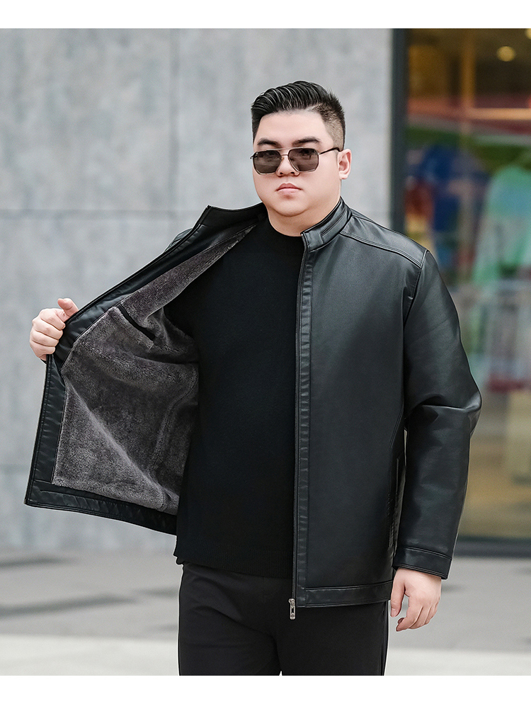 【加绒】【新款DTX】大依优型大码立领皮夹克PU加绒棉衣外套加肥加大肥佬休闲上衣男士胖子秋冬