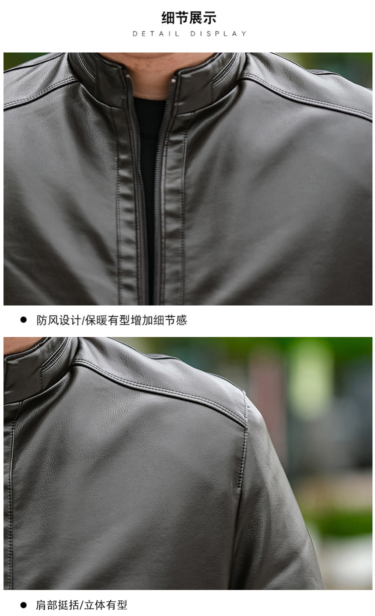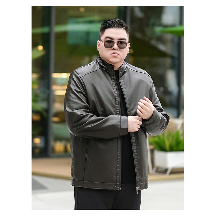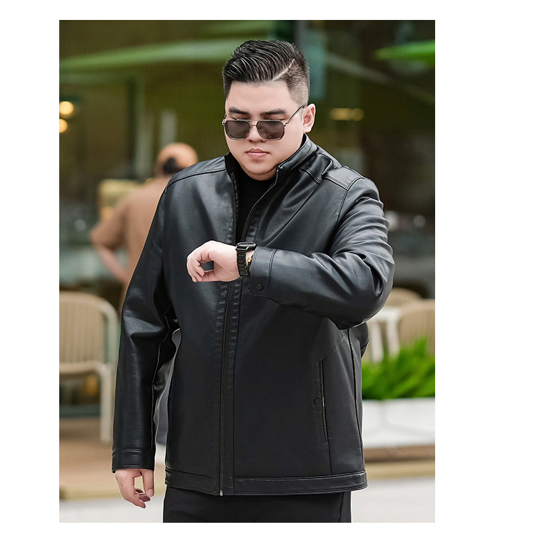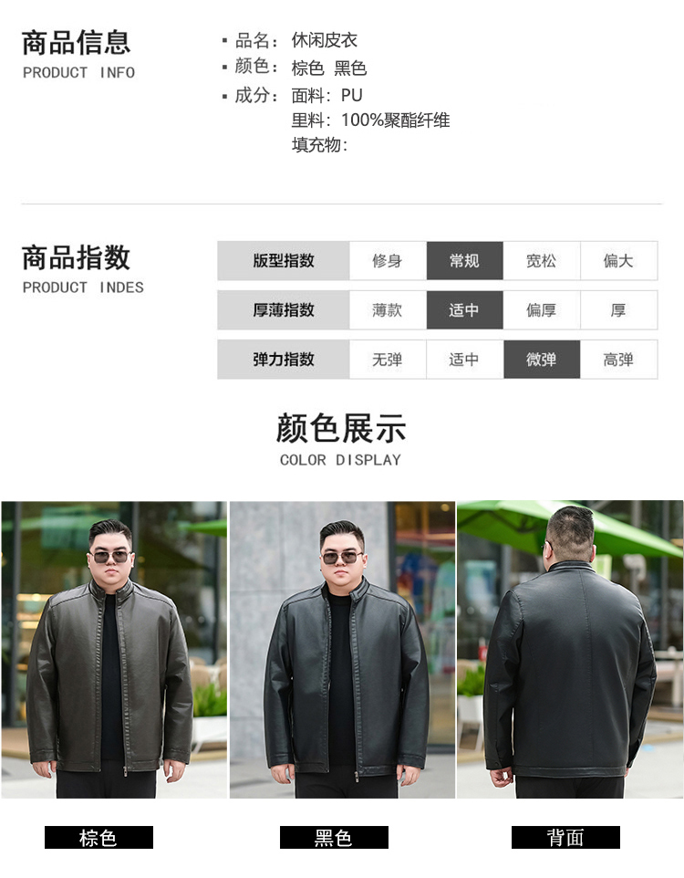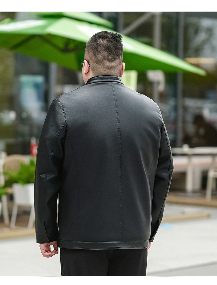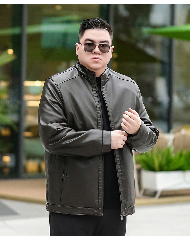 【加绒】【新款DTX】大依优型大码立领皮夹克PU加绒棉衣外套加肥加大肥佬休闲上衣男士胖子秋冬